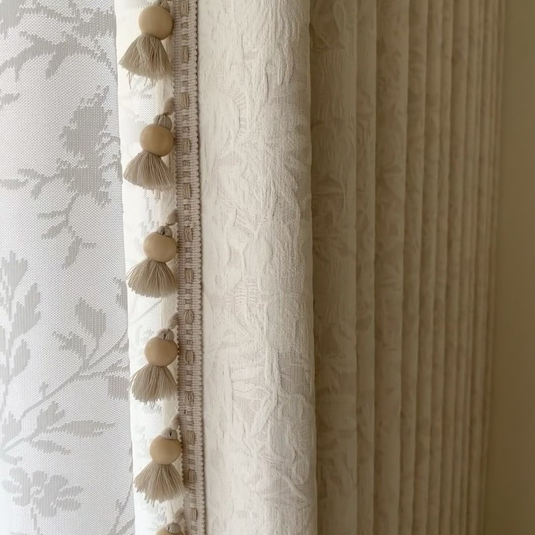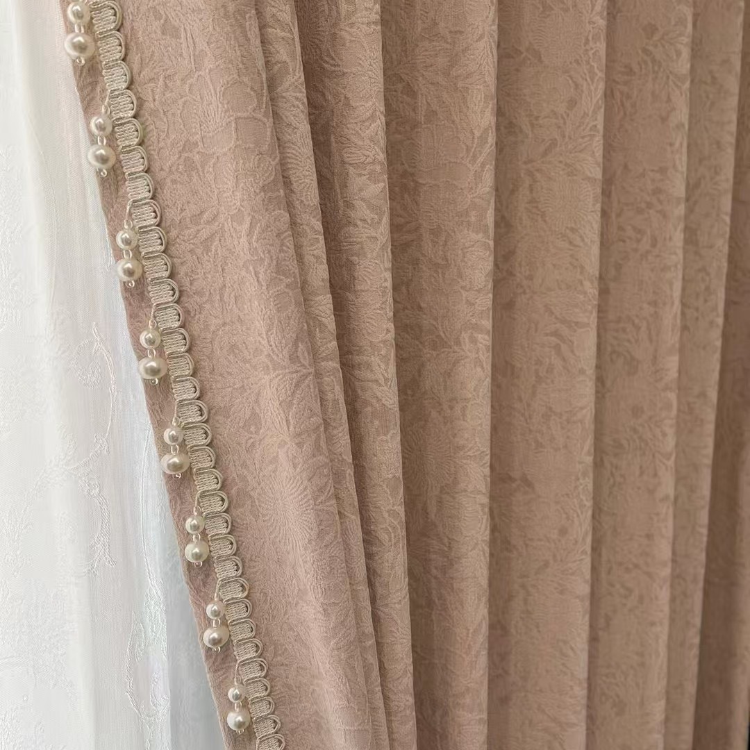 프랑스 레트로 Chenille 커튼 음영 침실 고급 센스 밀크 티 자카드 라이트 럭셔리 소흥 Keqiao 커튼 도매