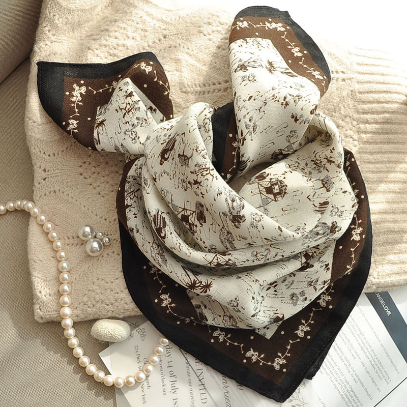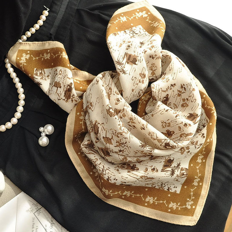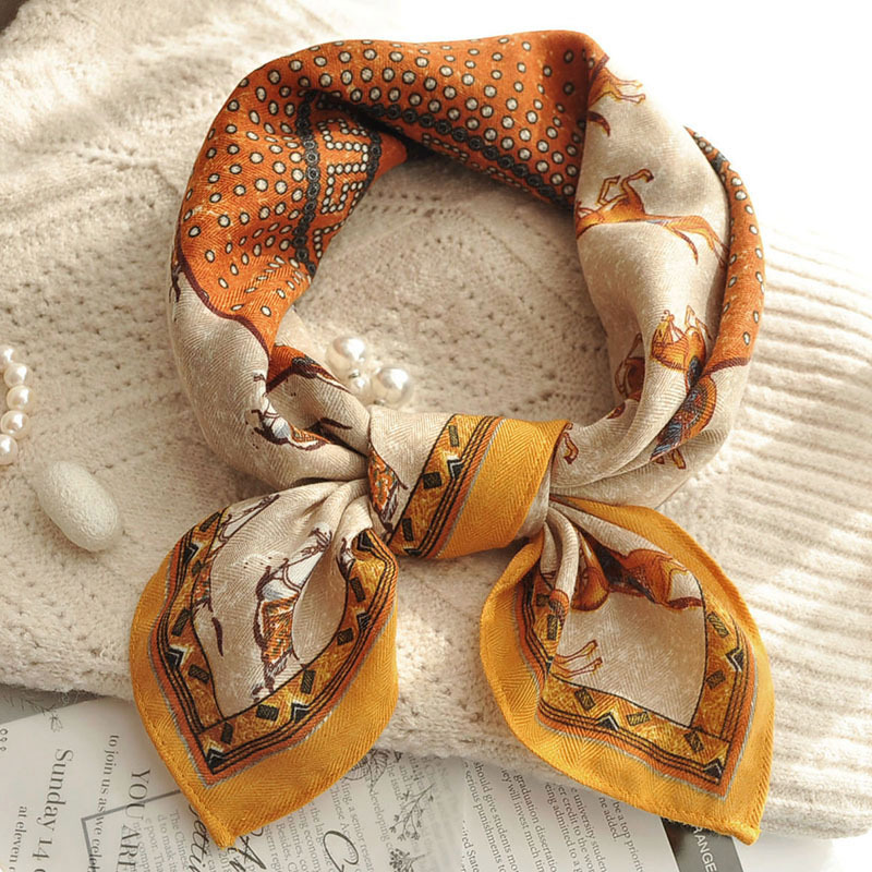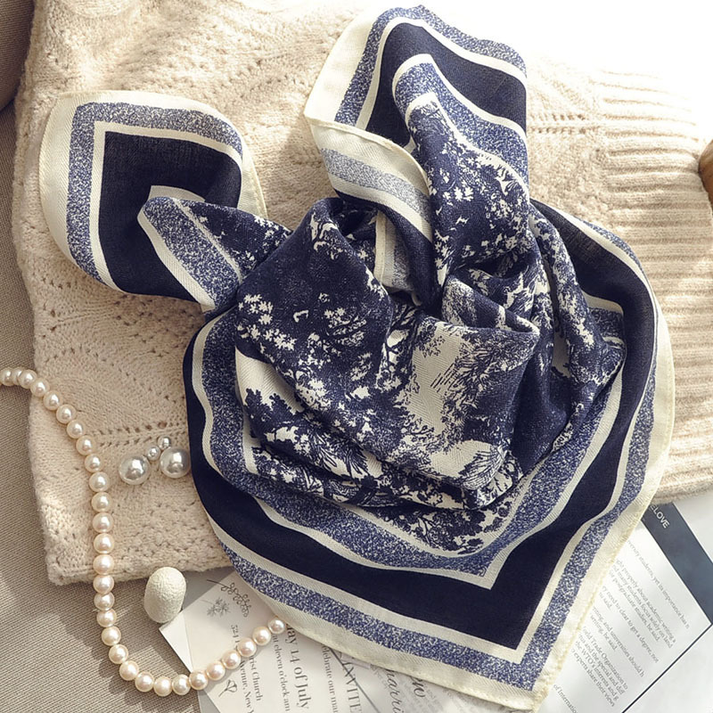 면 및 리넨 작은 광장 스카프 여성의 2024 새로운 여름 목 보호 스카프 얇은 면 및 리넨 목 보호