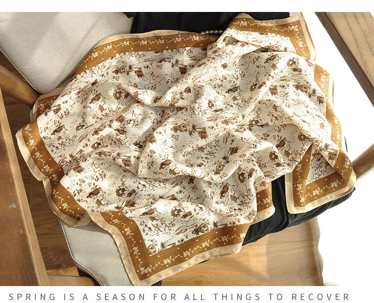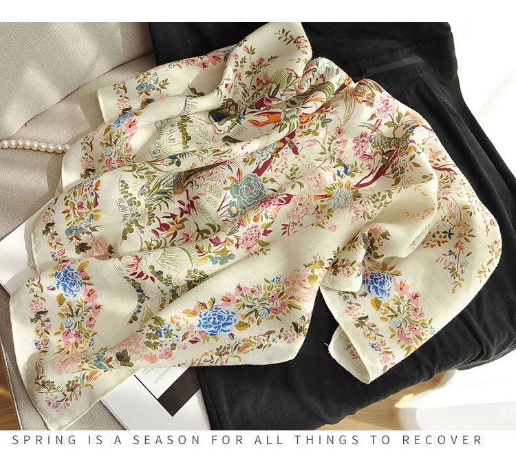 면 및 리넨 작은 광장 스카프 여성의 2024 새로운 여름 목 보호 스카프 얇은 면 및 리넨 목 보호스토어 가기