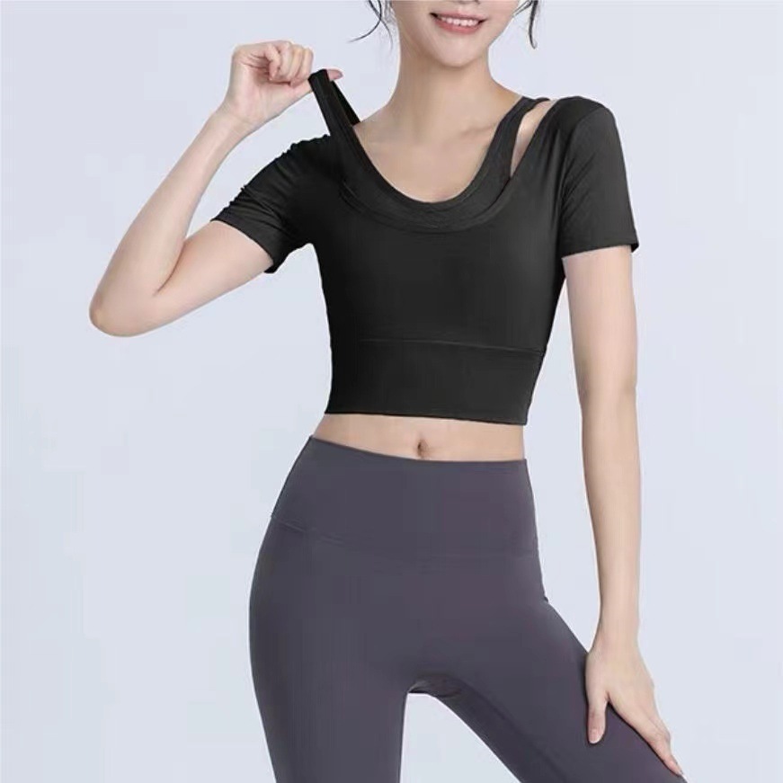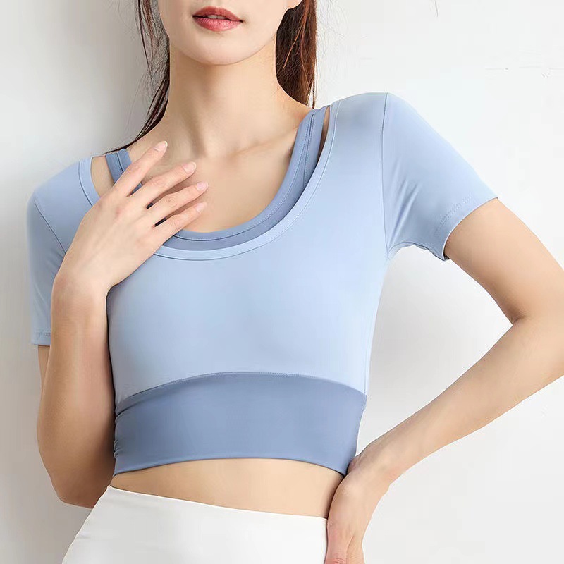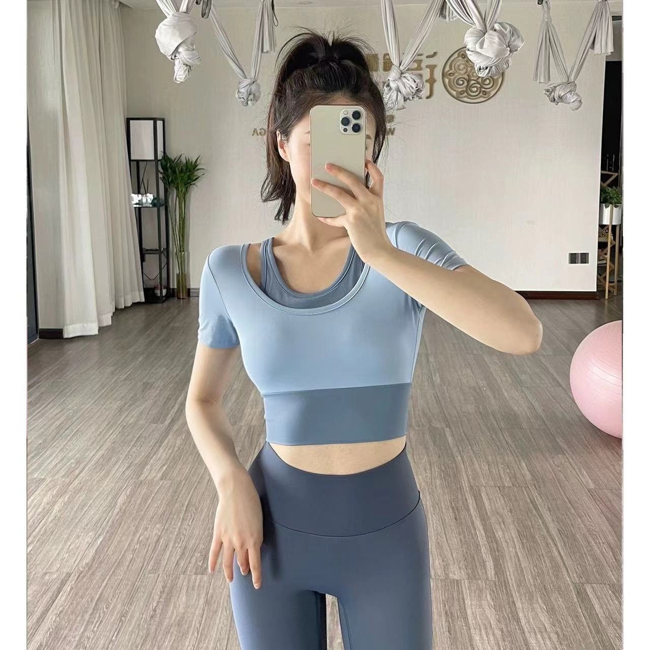 요가복 여성용 브라 패드 탄력 있는 타이트한 스포츠 탑 속건성 여성용 반팔 티셔츠 러닝 슬리밍 피트니스웨어 여름스토어 가기