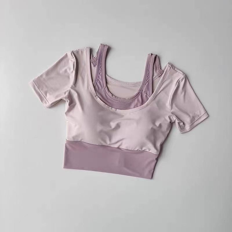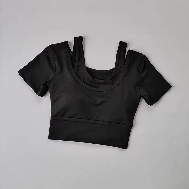 요가복 여성용 브라 패드 탄력 있는 타이트한 스포츠 탑 속건성 여성용 반팔 티셔츠 러닝 슬리밍 피트니스웨어 여름