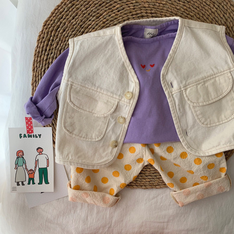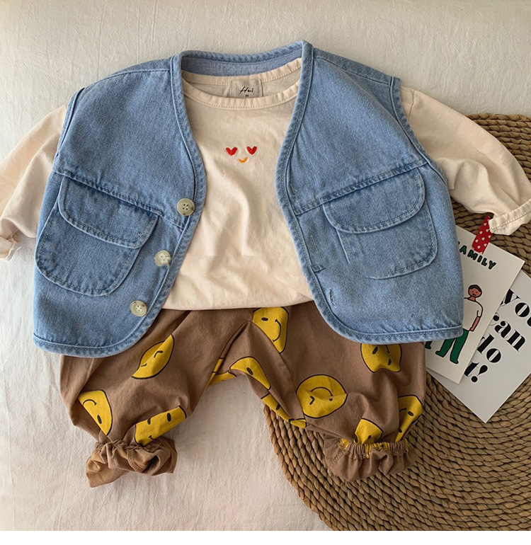 한국식 영유아 남녀 아기 조끼 아우터웨어 아동용 민소매 조끼 아동용 봄 스타일 포니 얇은 데님