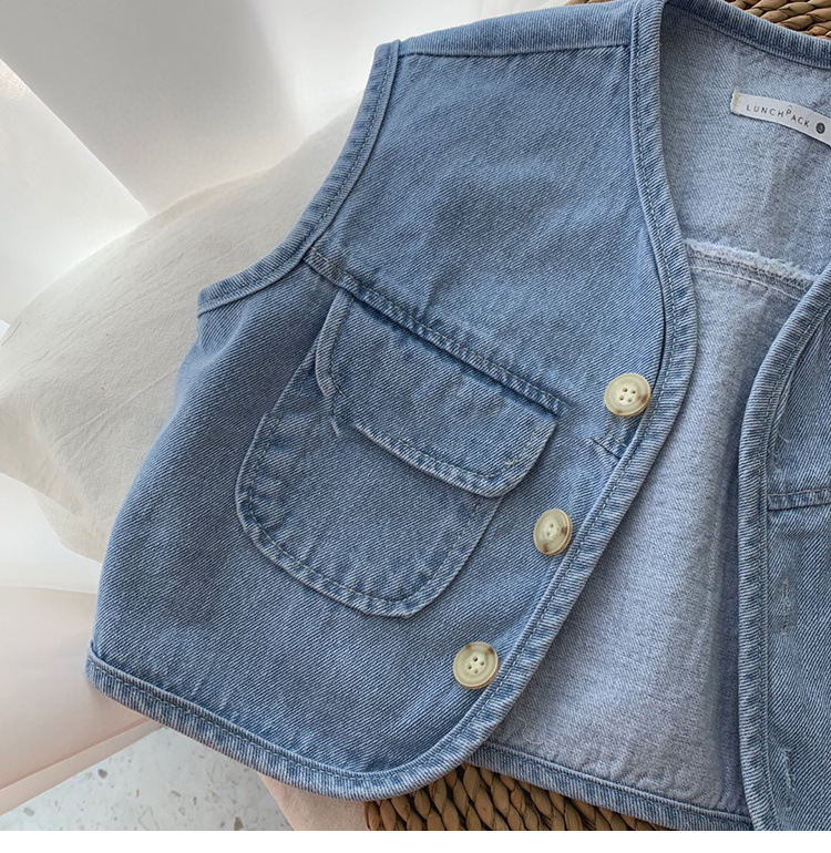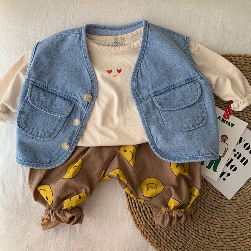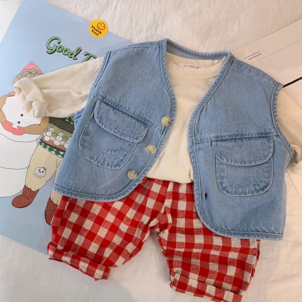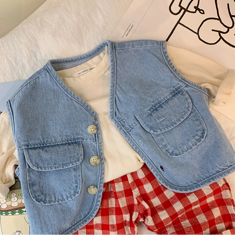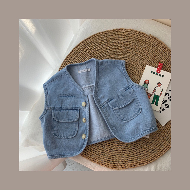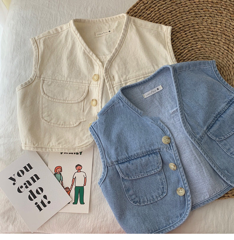 한국식 영유아 남녀 아기 조끼 아우터웨어 아동용 민소매 조끼 아동용 봄 스타일 포니 얇은 데님스토어 가기