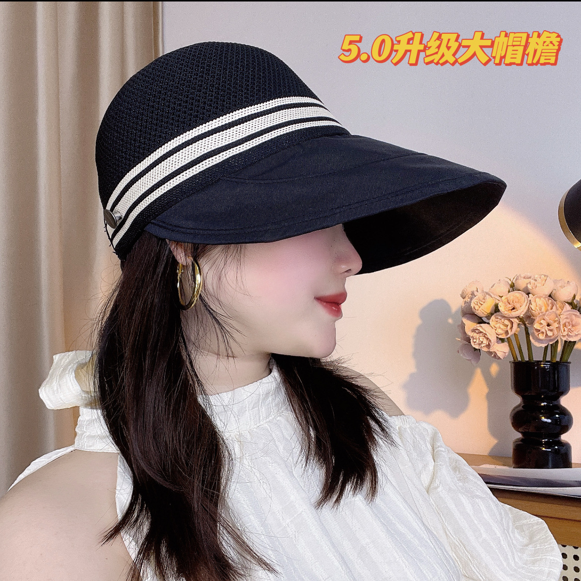 2025 새로운 할로우 통기성 선 스크린 모자 여성 여름 야외 큰 브림 태양 모자 패션 햇살 어부 모자