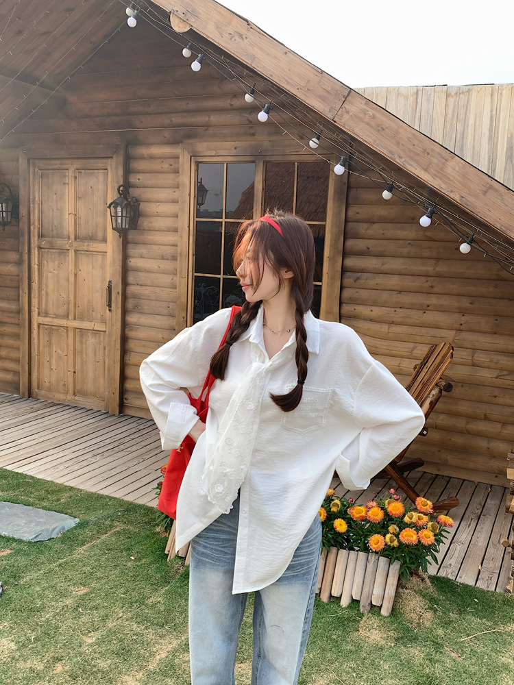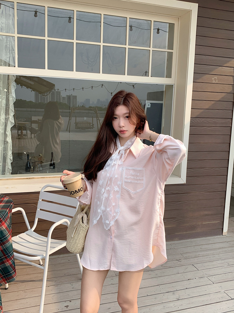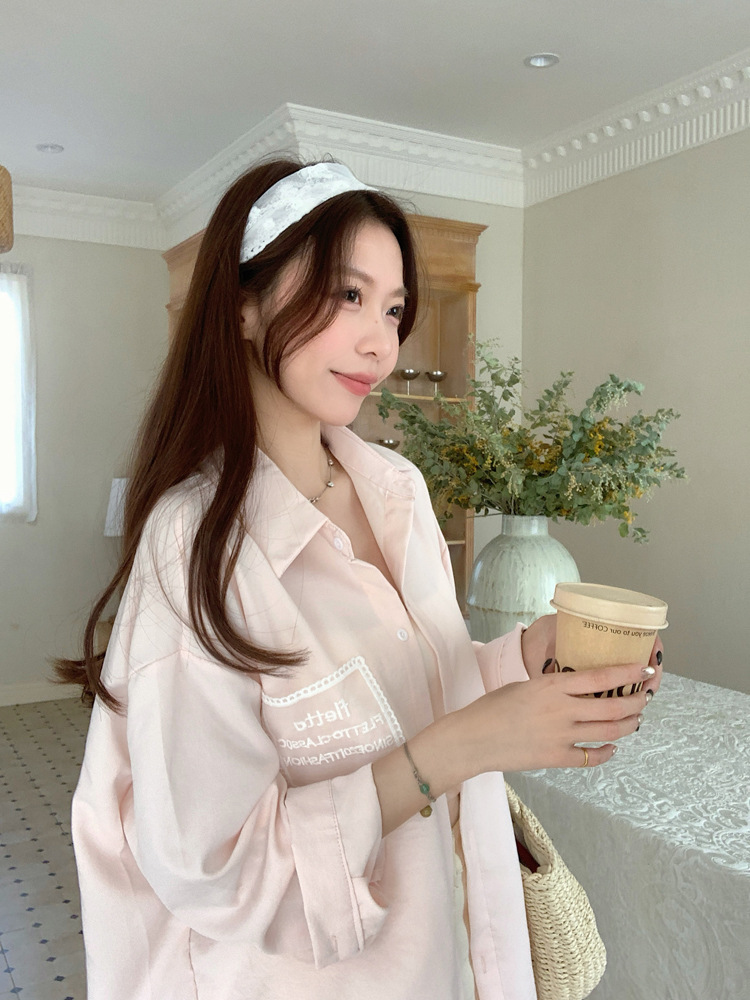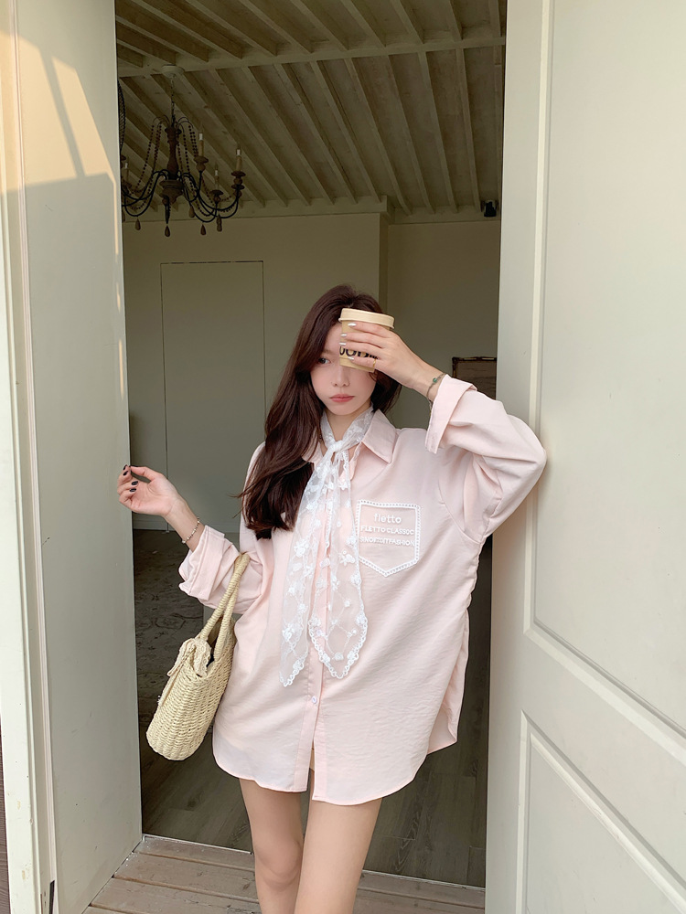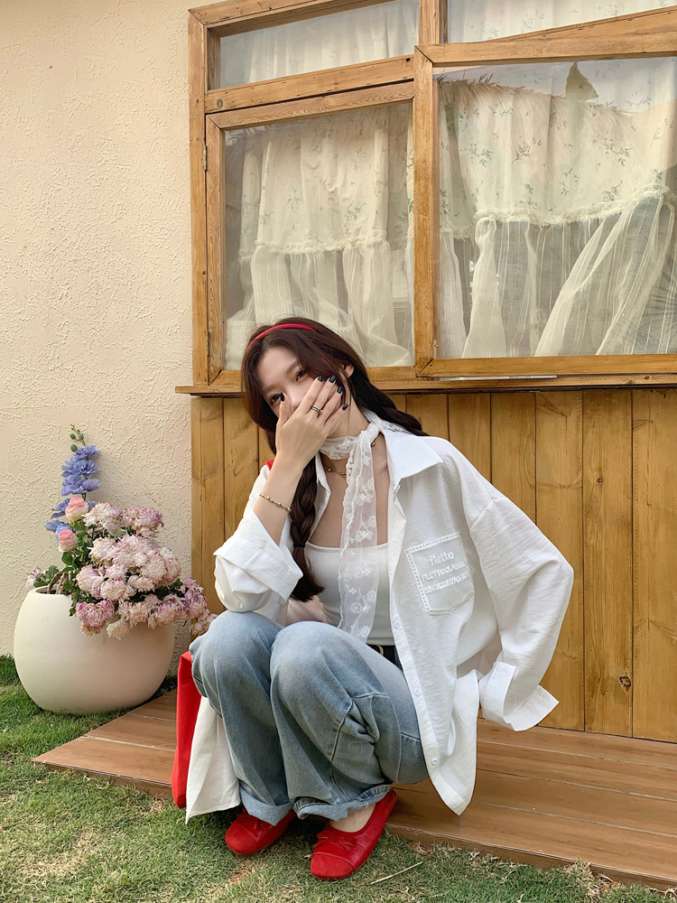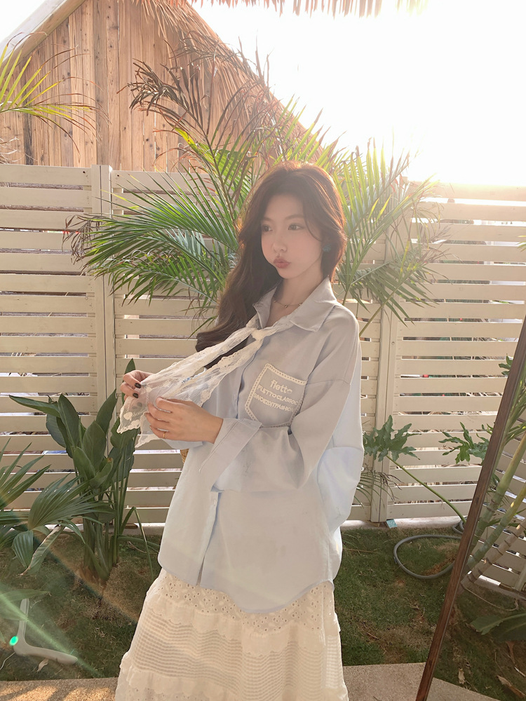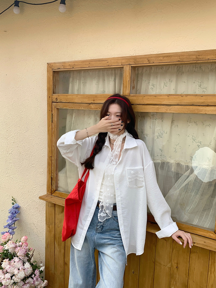 한국 스타일 레이스 타이 긴 소매 화이트 셔츠 여성의 봄 신선한 디자인 센스 캐주얼 올 매치 셔츠 카디건 탑스토어 가기