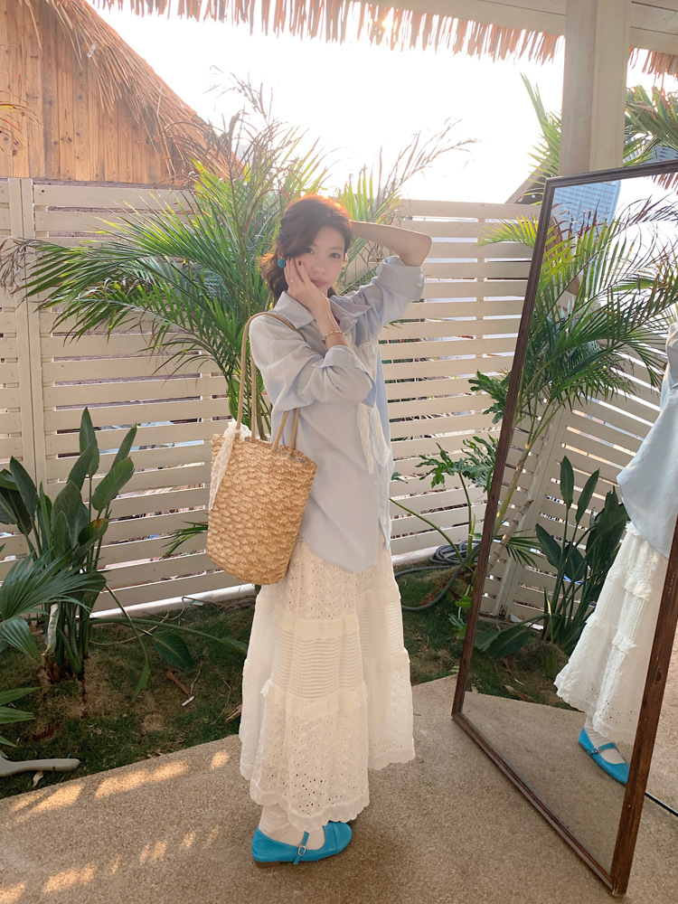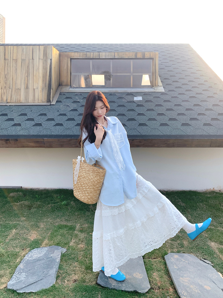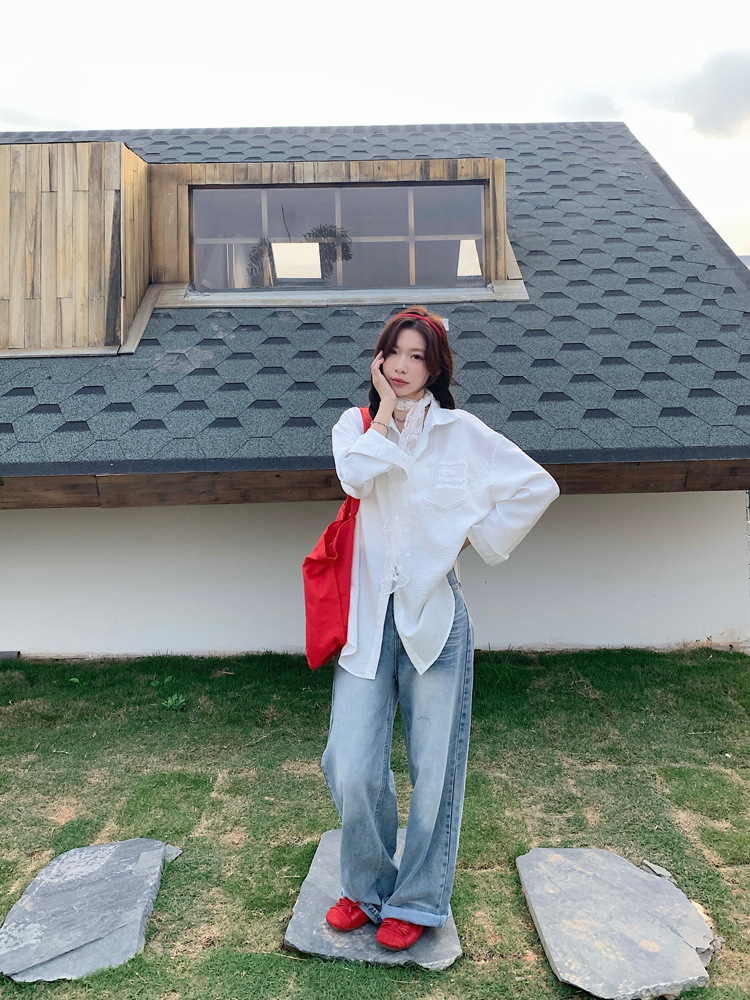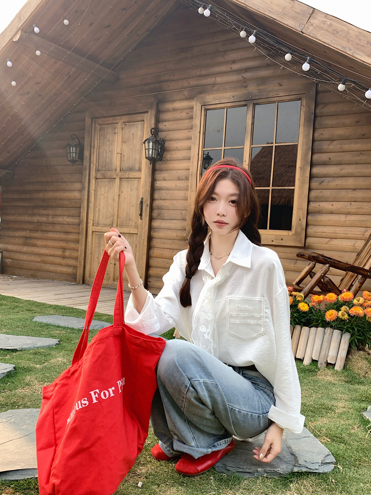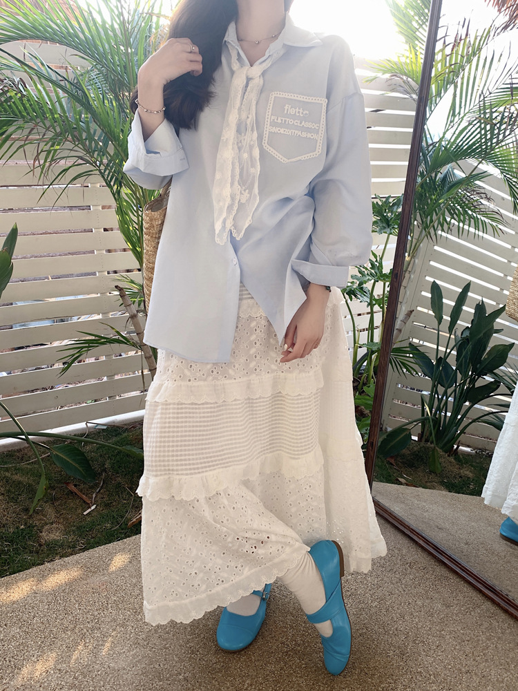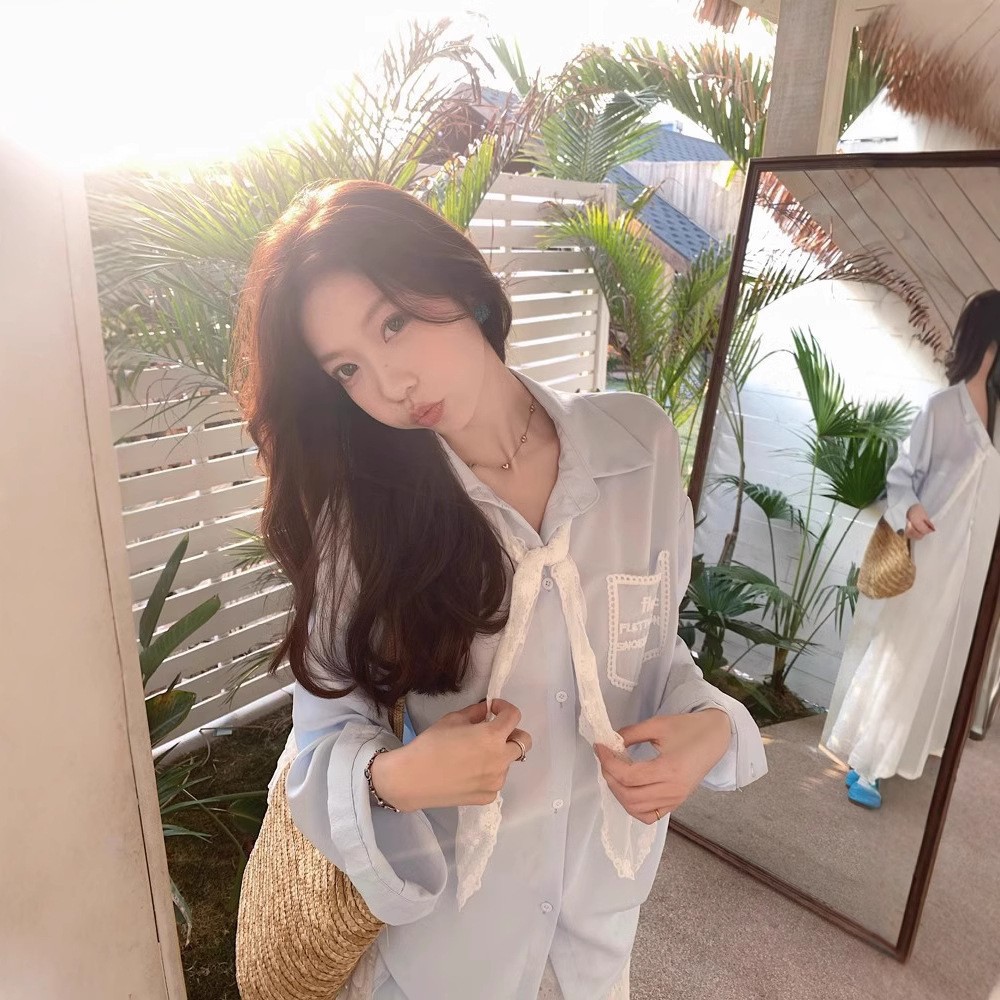 한국 스타일 레이스 타이 긴 소매 화이트 셔츠 여성의 봄 신선한 디자인 센스 캐주얼 올 매치 셔츠 카디건 탑스토어 가기