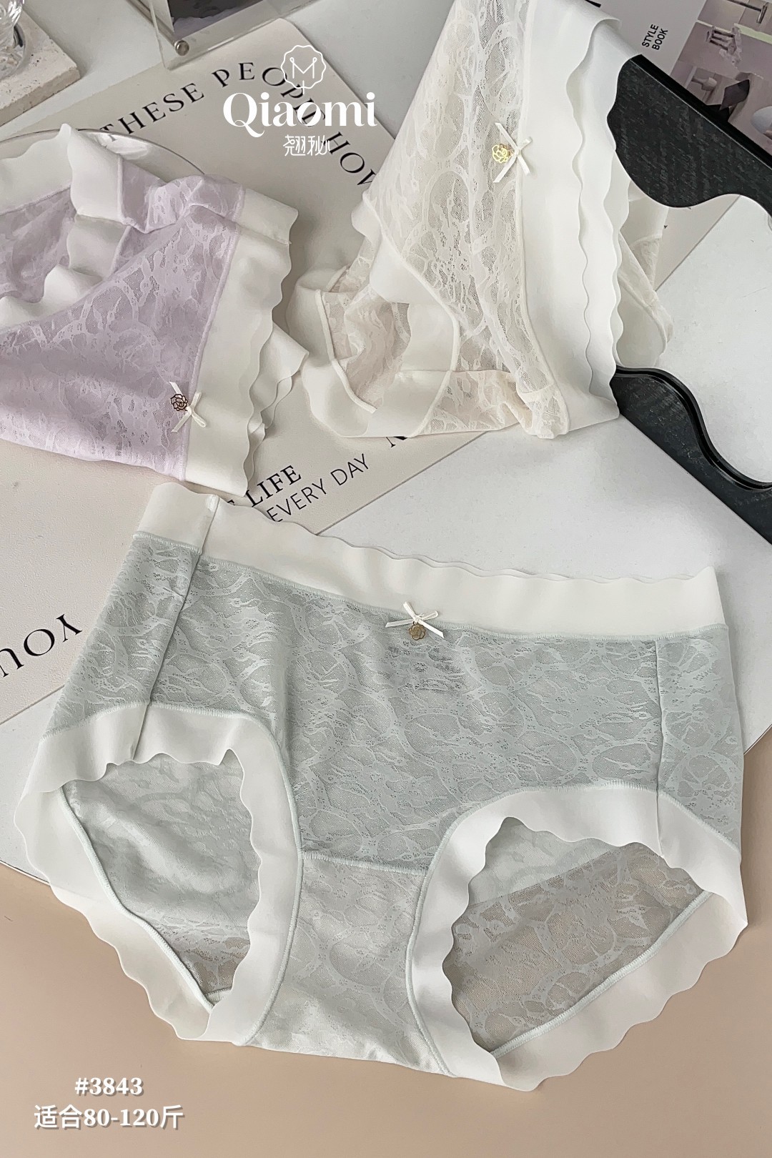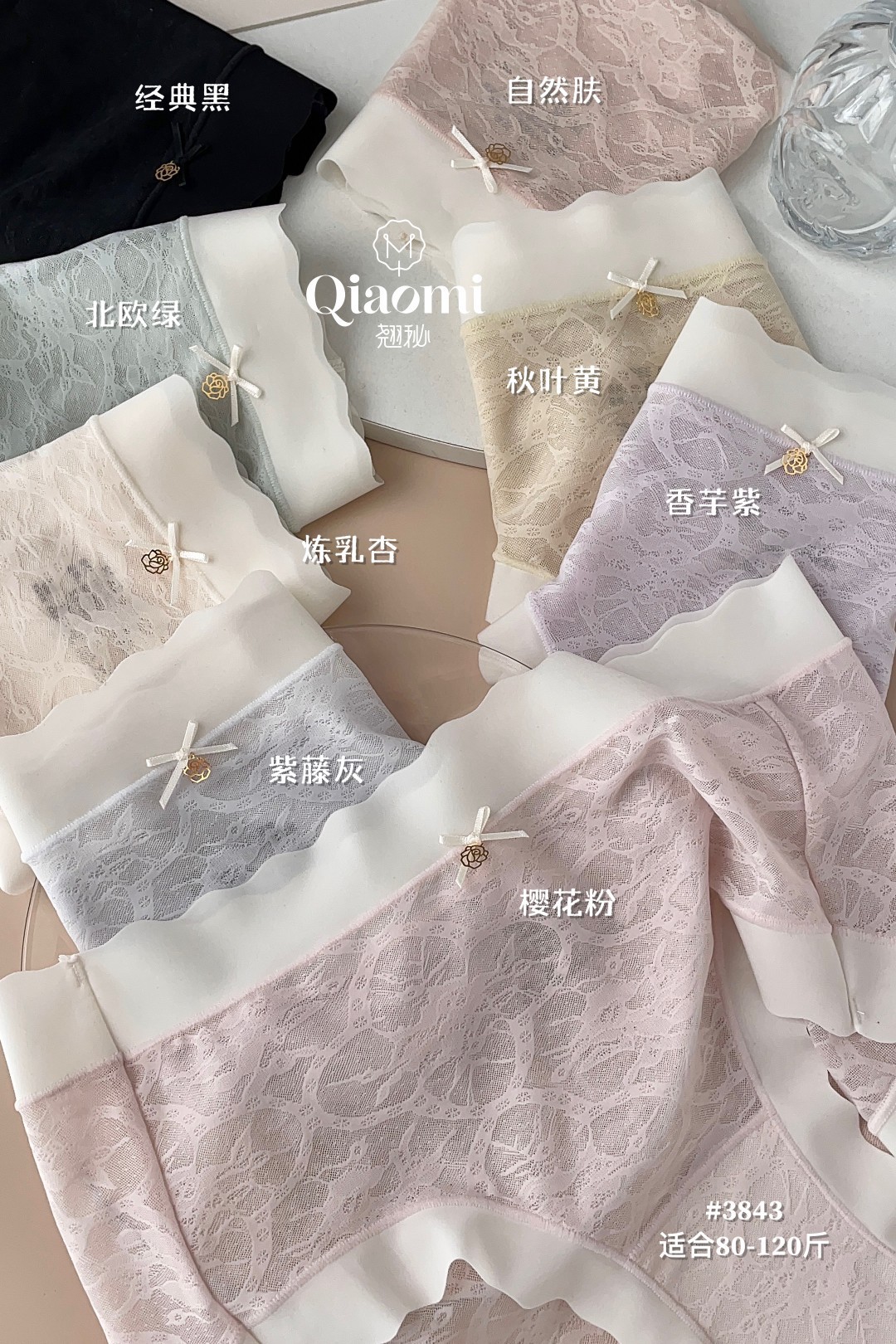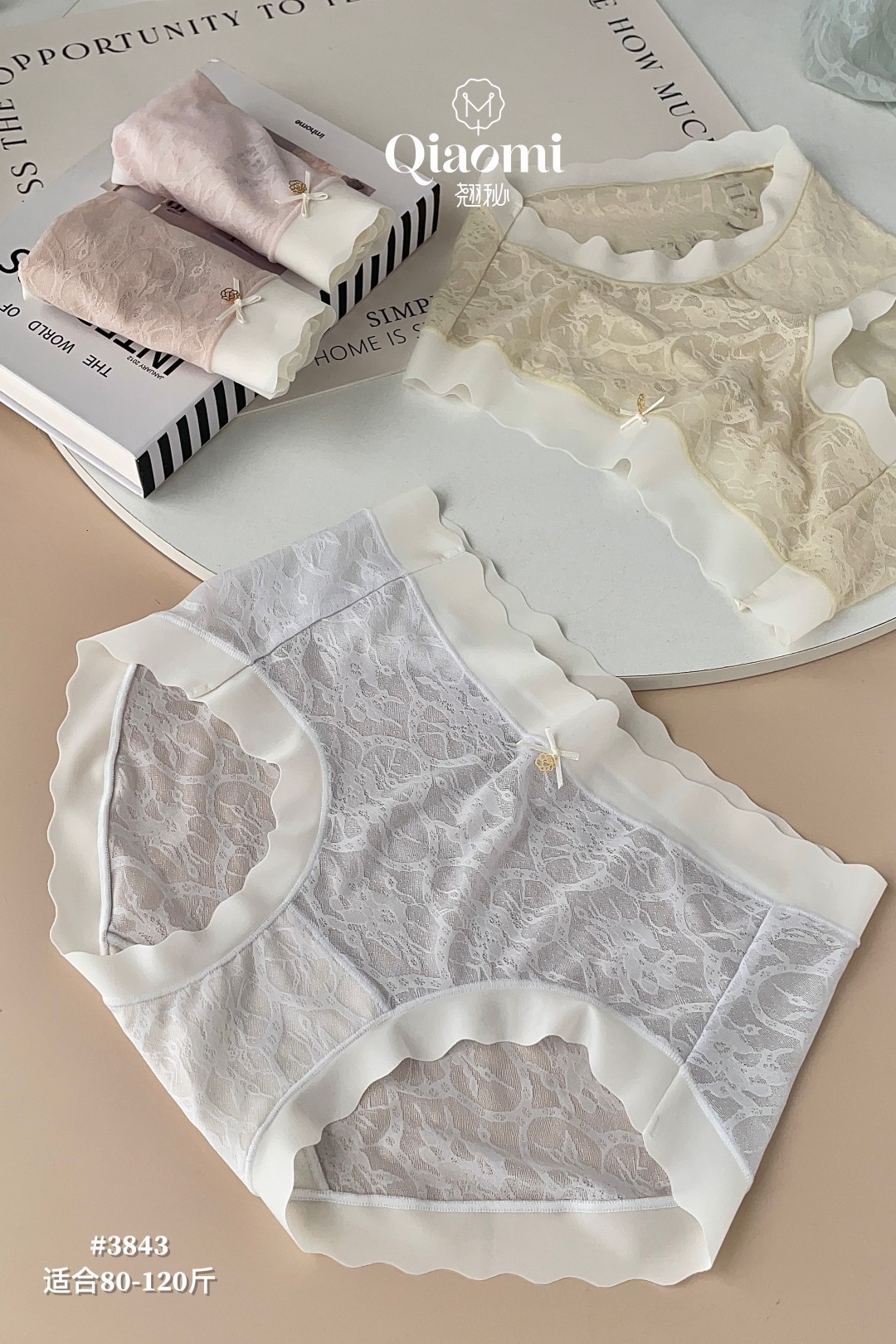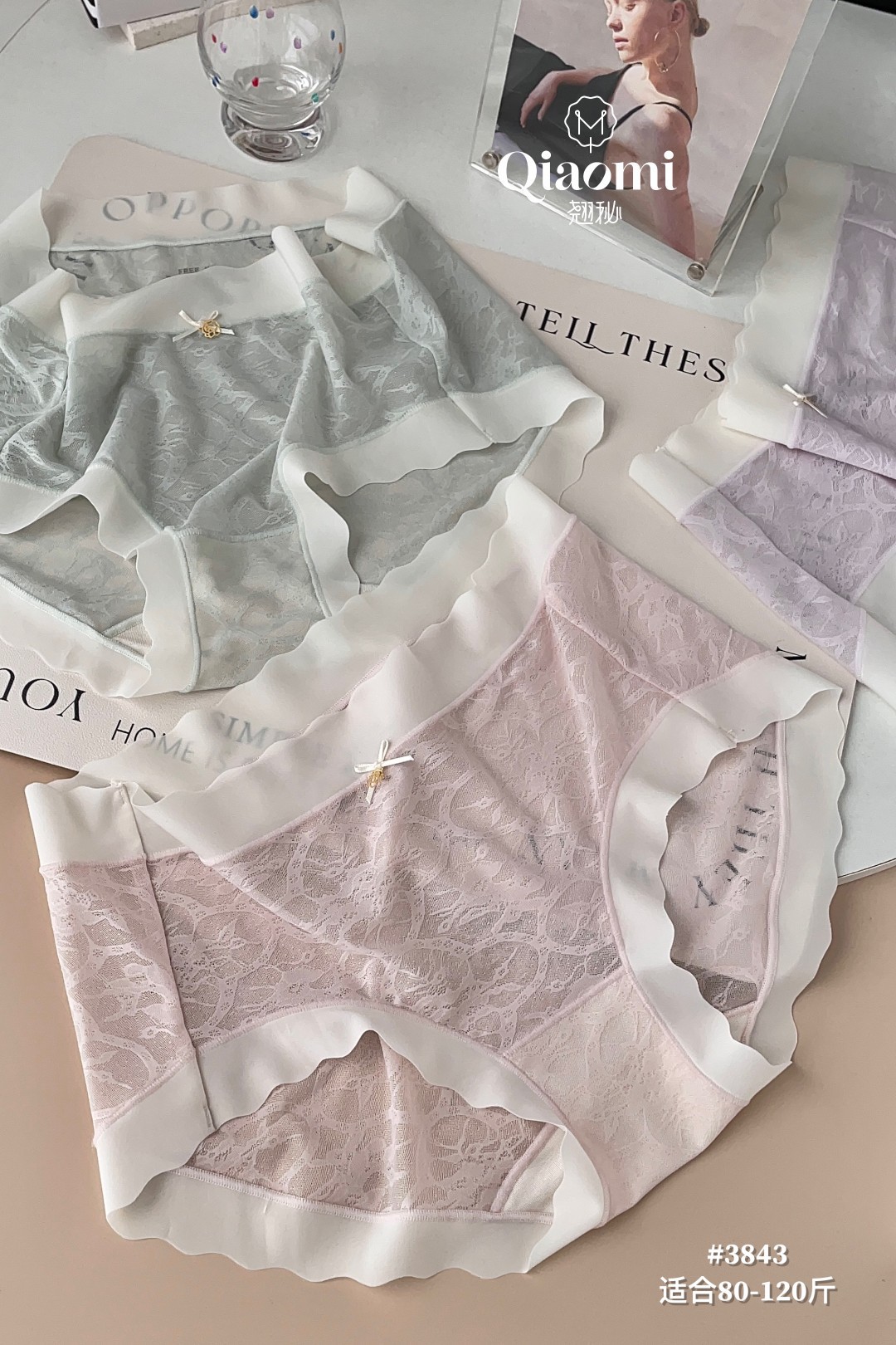 Qiao Mi 3843 속옷 여성용 아이스 실크 레이스 패턴 비 마킹 스몰 사이즈 브리프 여성용 바지 중간 허리 통기성 반바지