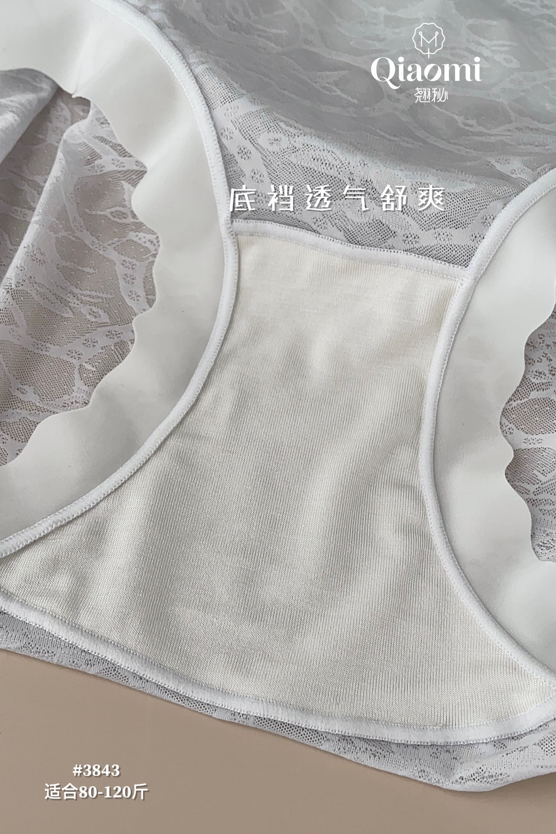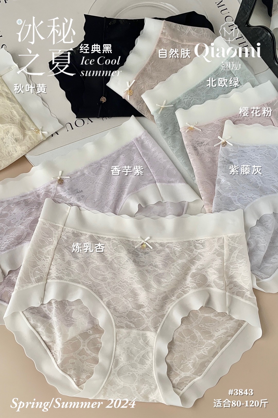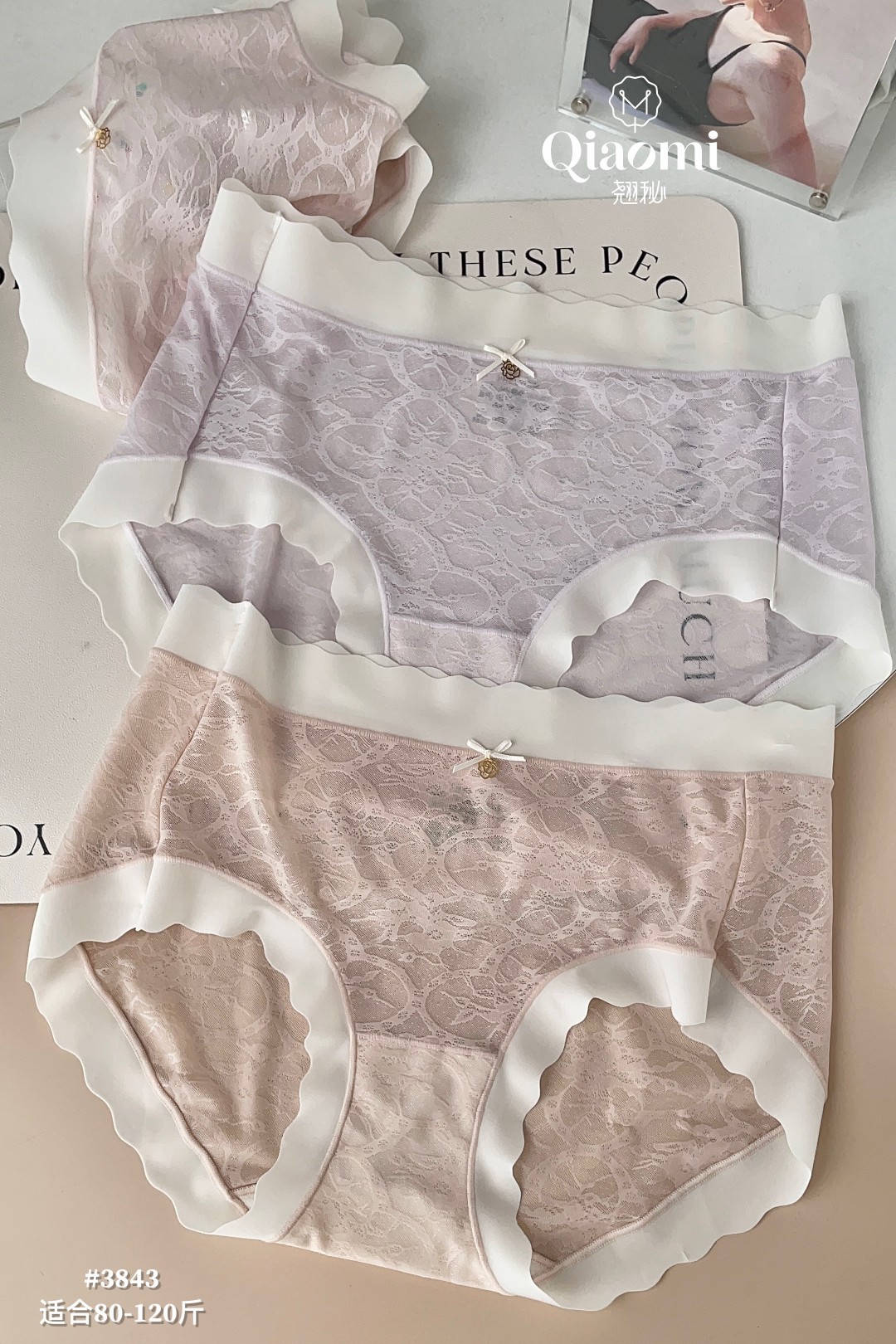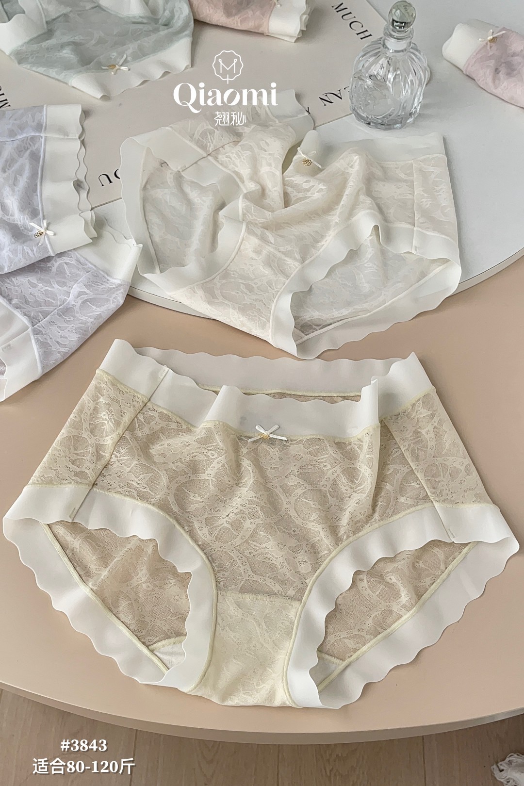 Qiao Mi 3843 속옷 여성용 아이스 실크 레이스 패턴 비 마킹 스몰 사이즈 브리프 여성용 바지 중간 허리 통기성 반바지