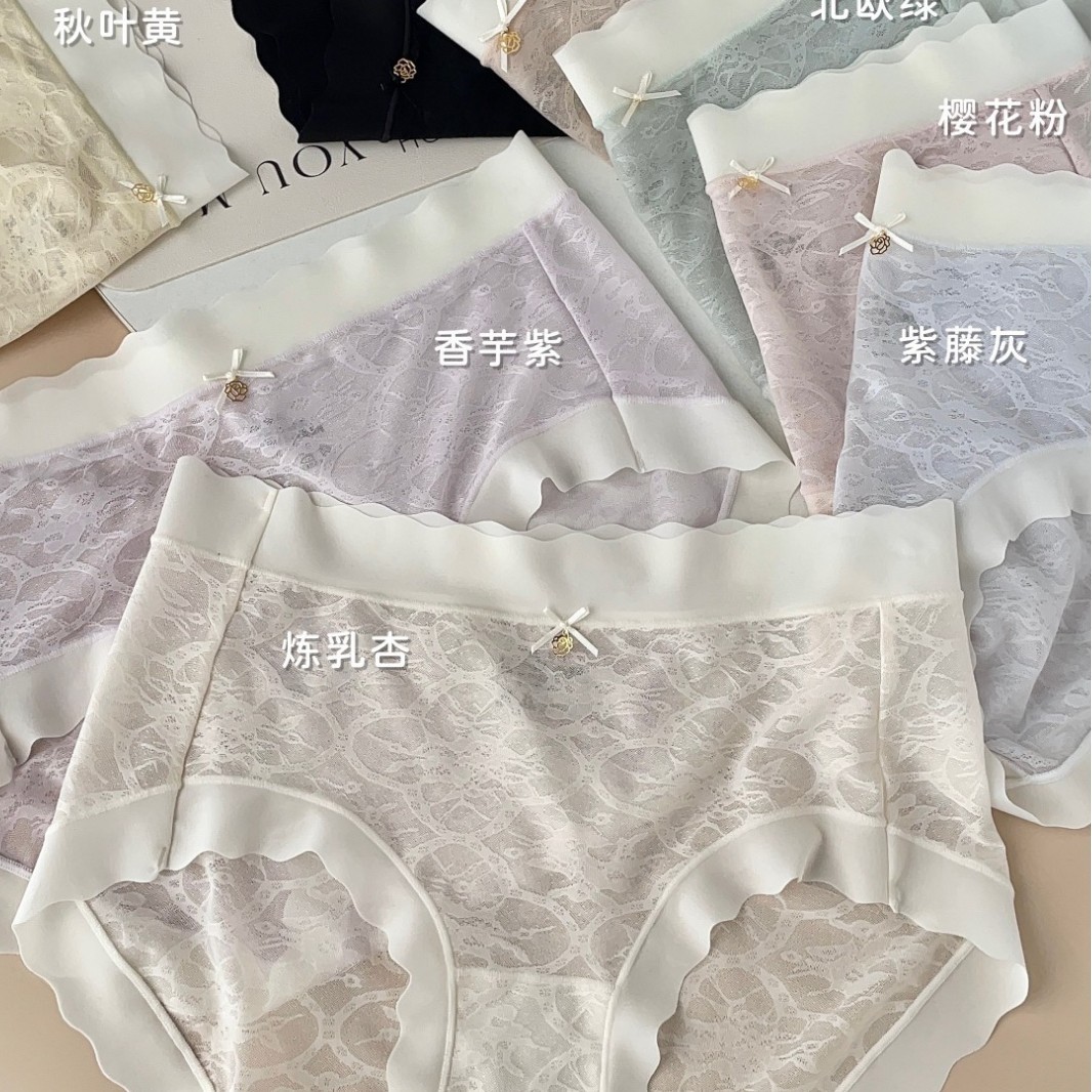 Qiao Mi 3843 속옷 여성용 아이스 실크 레이스 패턴 비 마킹 스몰 사이즈 브리프 여성용 바지 중간 허리 통기성 반바지스토어 가기
