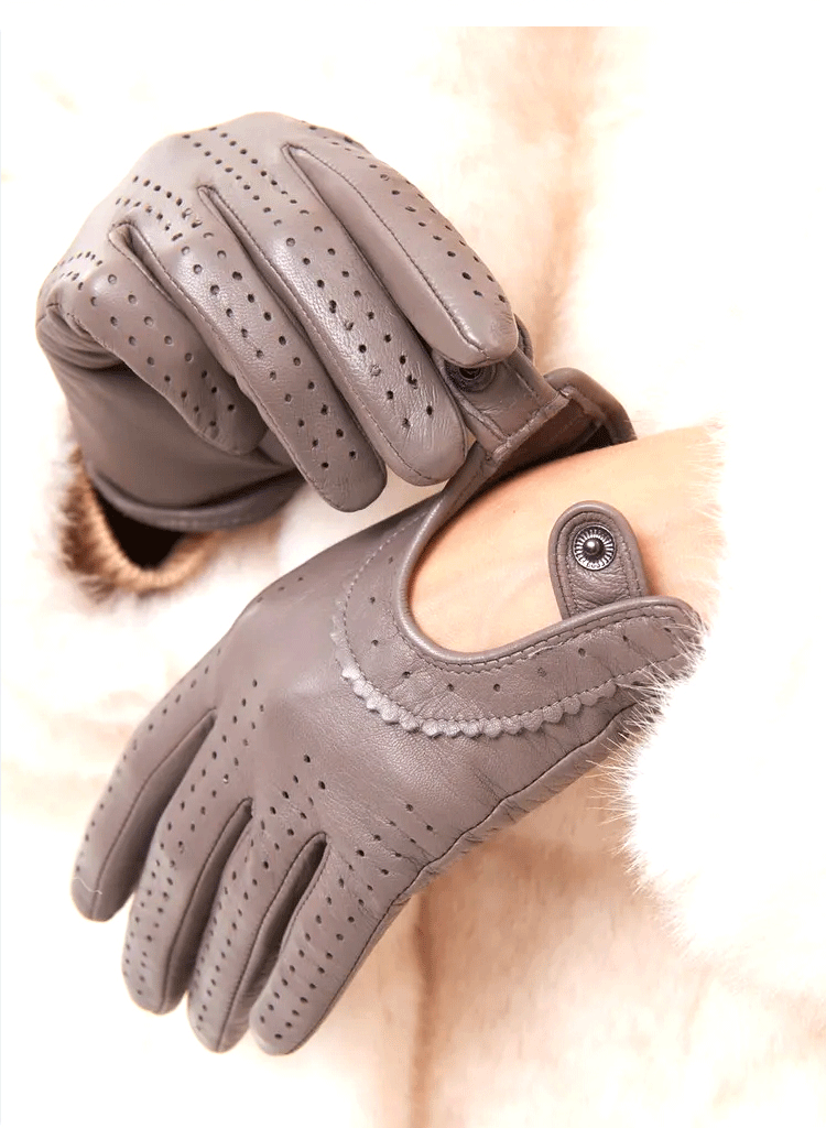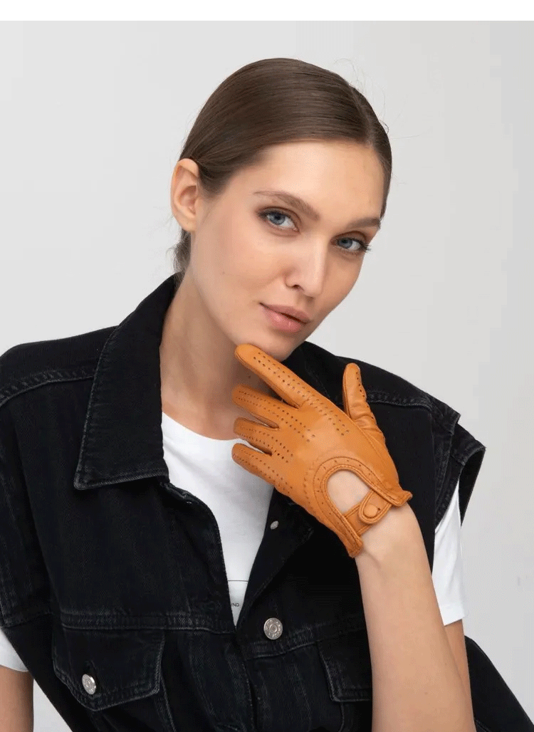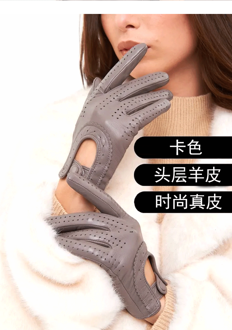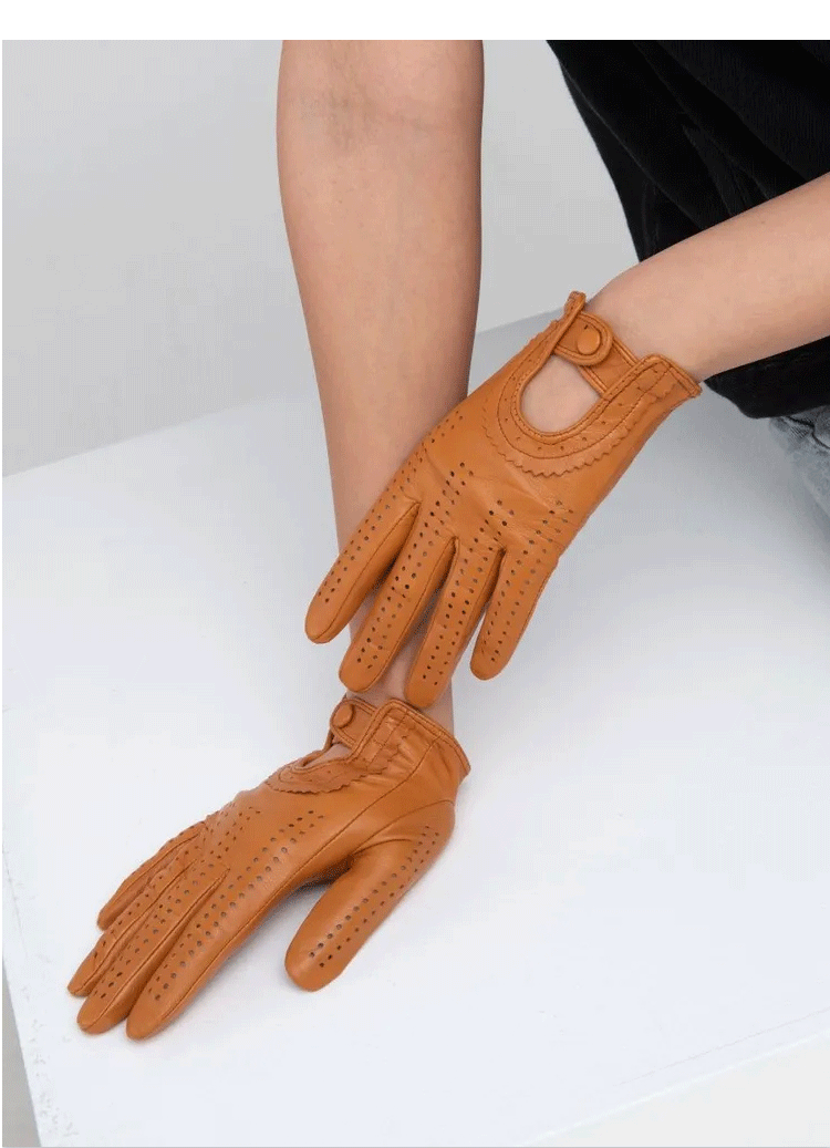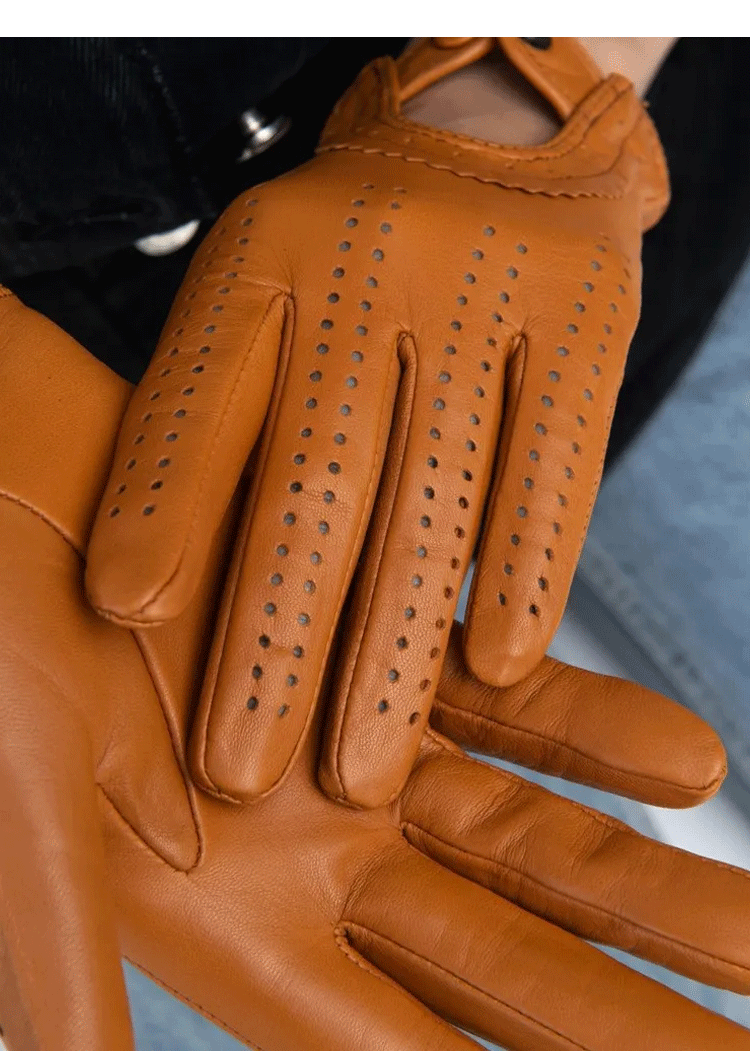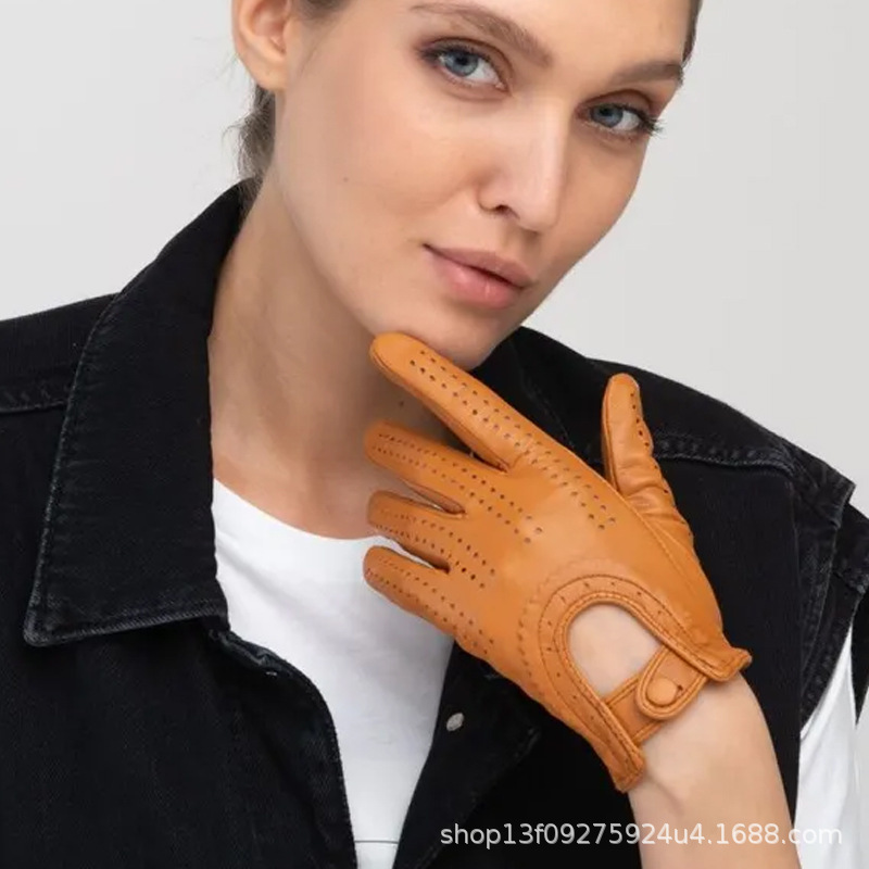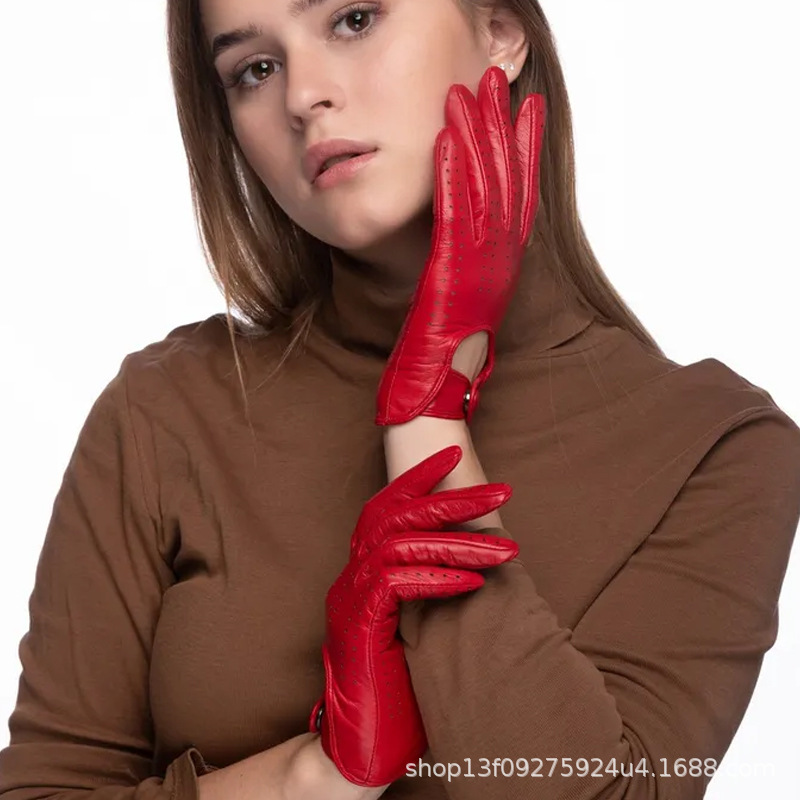 정품 가죽 장갑 여성의 봄, 여름 및 가을 얇은 자동차 승마 빈티지 오토바이 통기성 천공 헤드 레이어 양가죽
