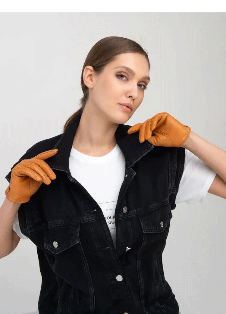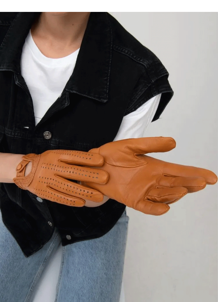 정품 가죽 장갑 여성의 봄, 여름 및 가을 얇은 자동차 승마 빈티지 오토바이 통기성 천공 헤드 레이어 양가죽스토어 가기
