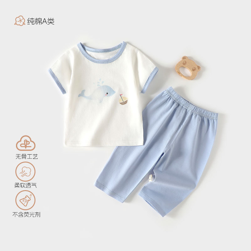 여름 얇은 유아 분할 옷 A 형 순면 아기 옷 신생아 에어컨 옷 잠옷면 정장