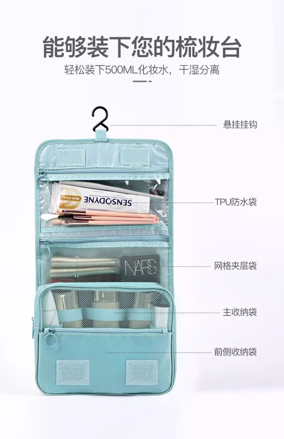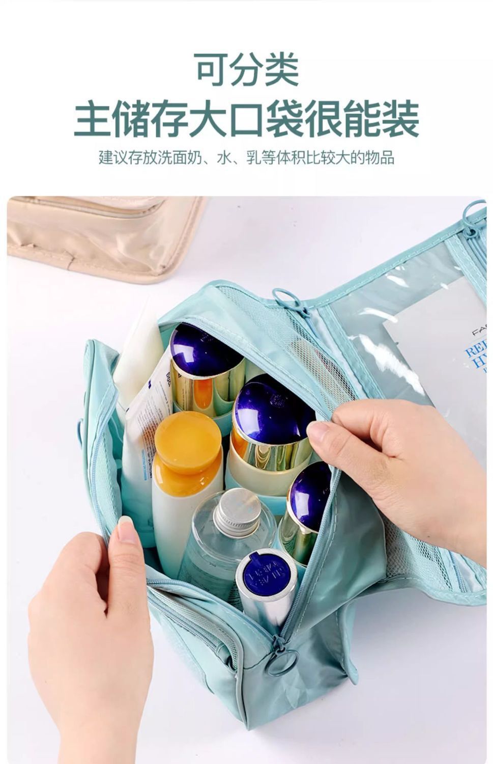 워시 백 대용량 화장품 가방 여행 패션 휴대용 방수 습식 및 건식 분리 후크 보관 가방 도매스토어 가기