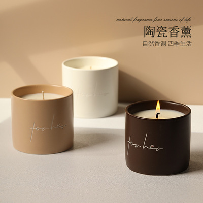 新款陶瓷杯北欧简约高级植物精油香氛大豆蜡伴手礼布置香薰蜡烛