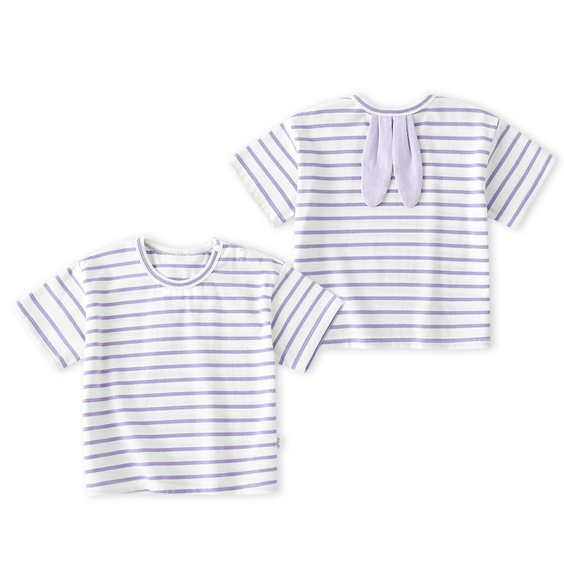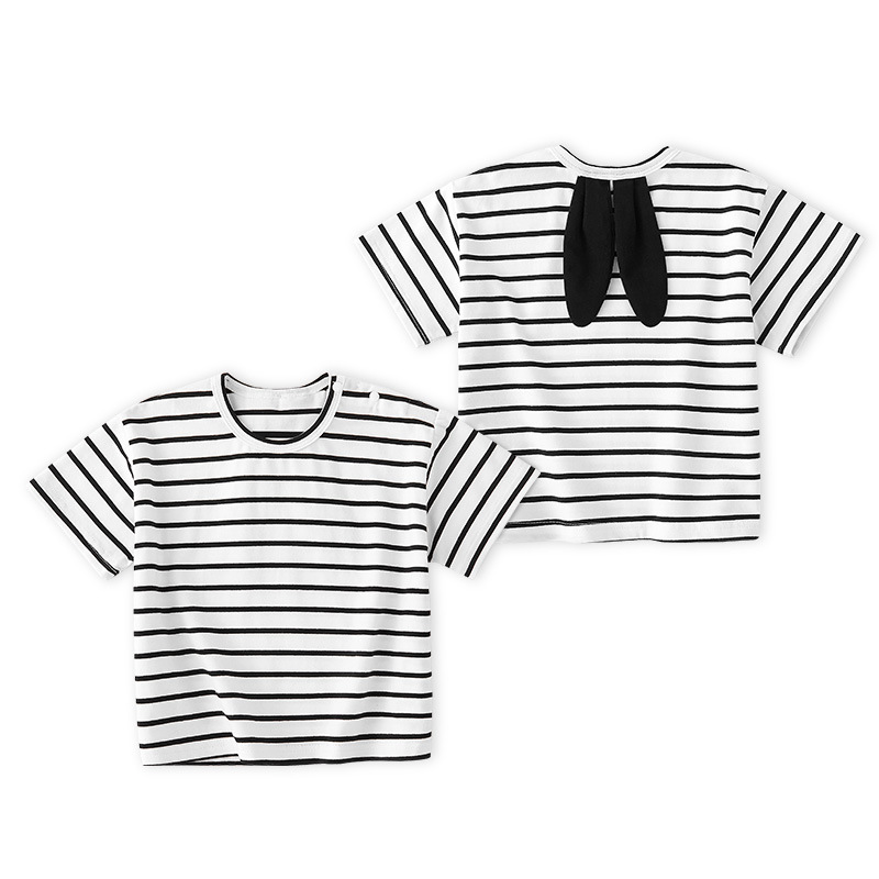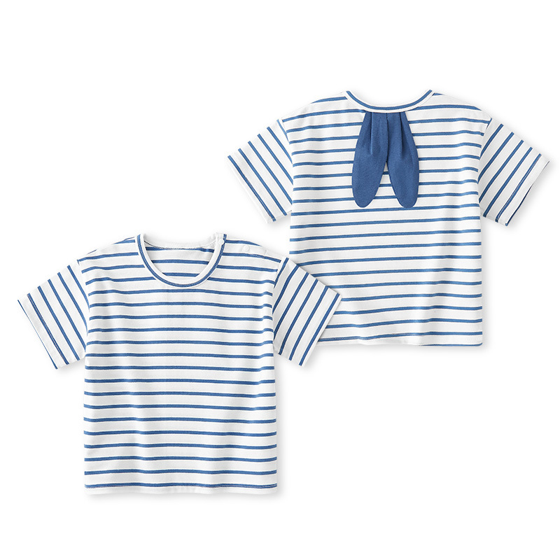남학생 반소매 티셔츠 여름 얇은 어린이 여름 옷 아기의 반소매 탑 어린이 줄무늬 캐주얼