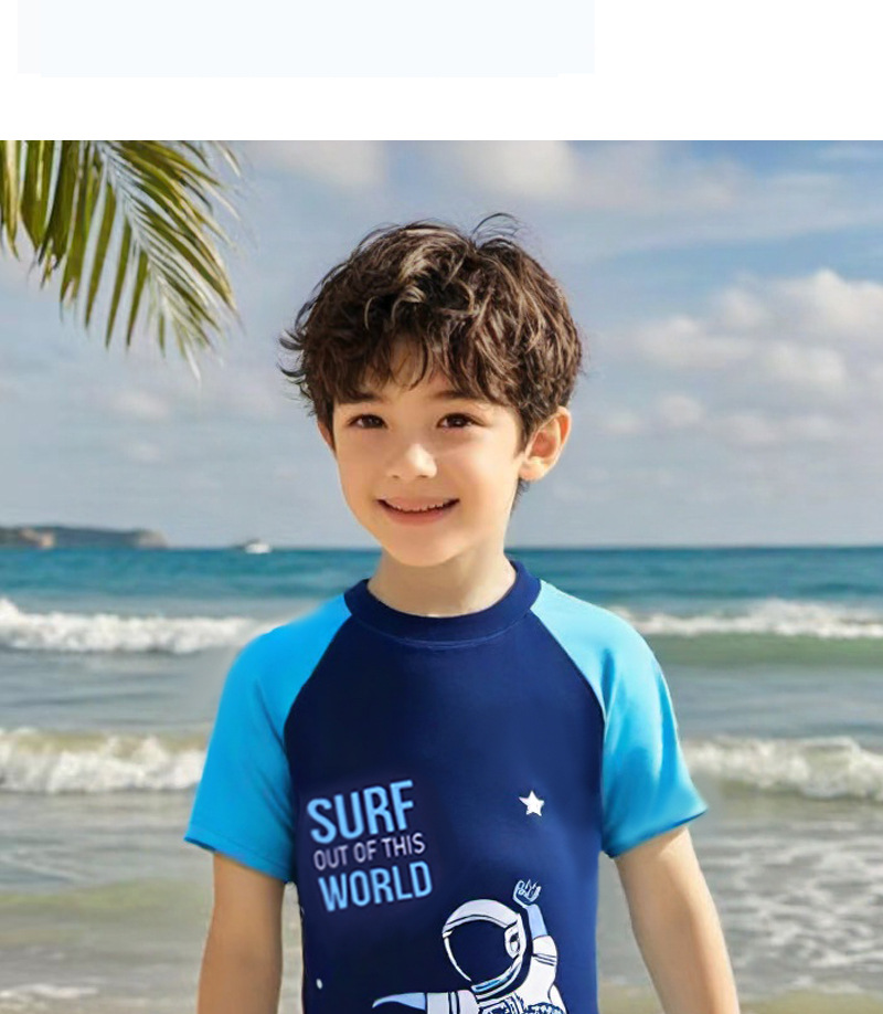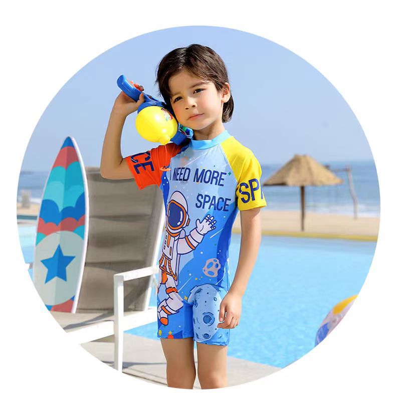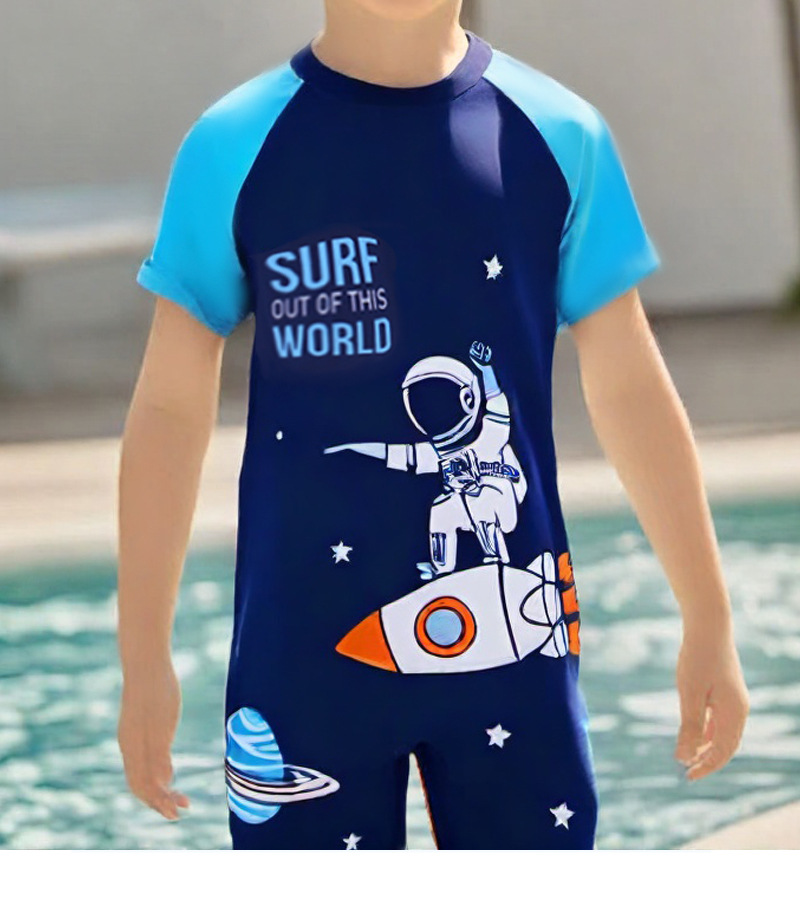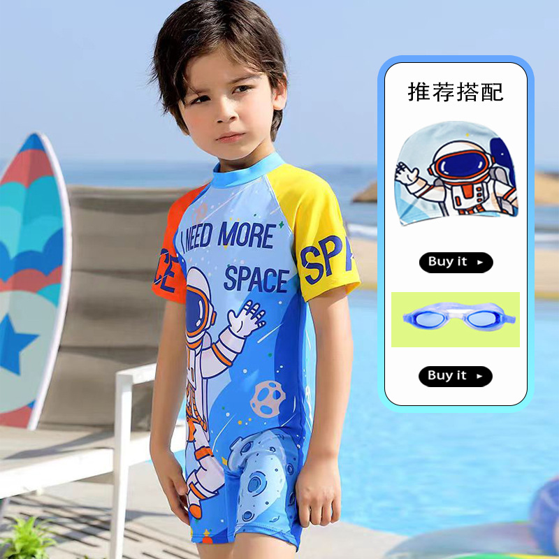 새로운 어린이 만화 수영복 소년 귀여운 반팔 만화 공룡 수영복 선 스크린 빠른 건조 수영복 패션 트렌드스토어 가기