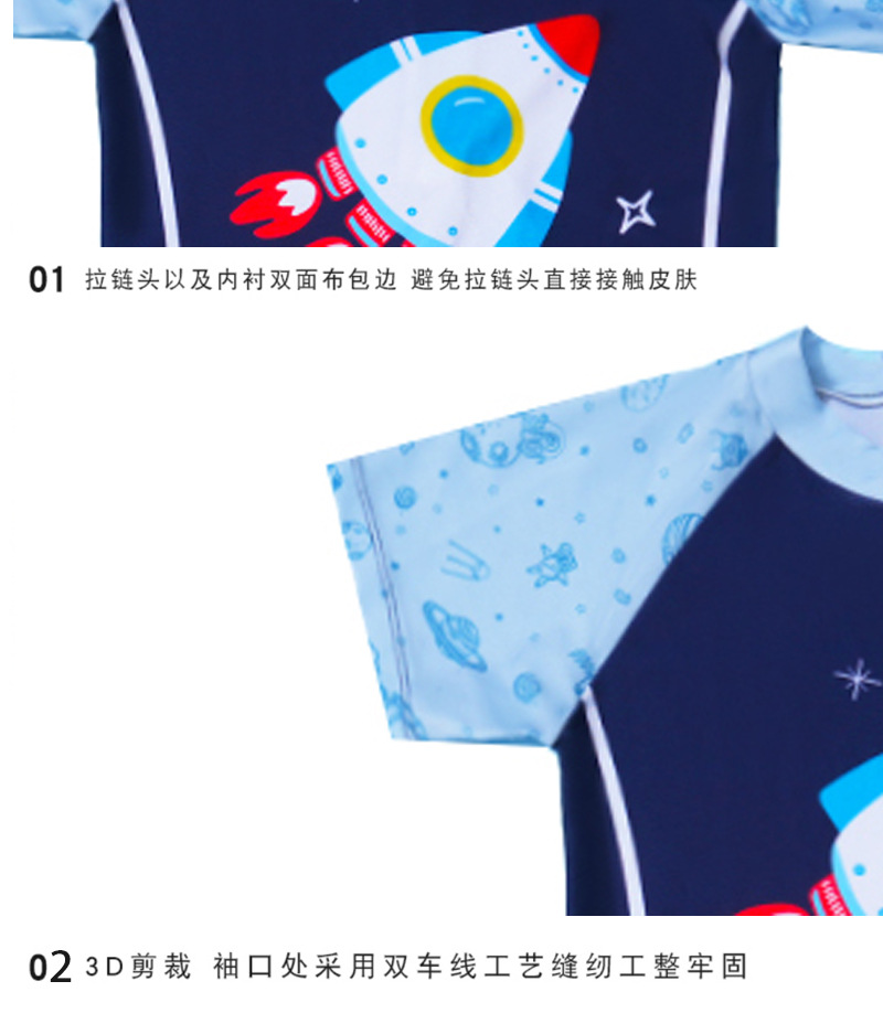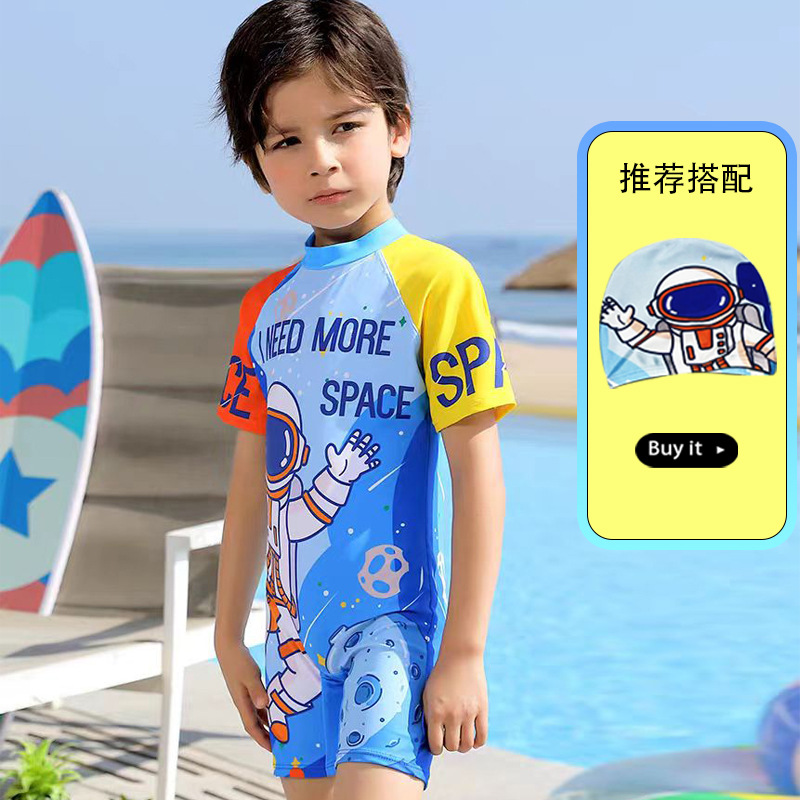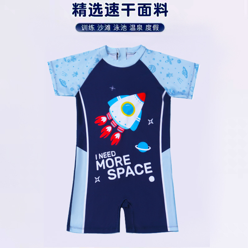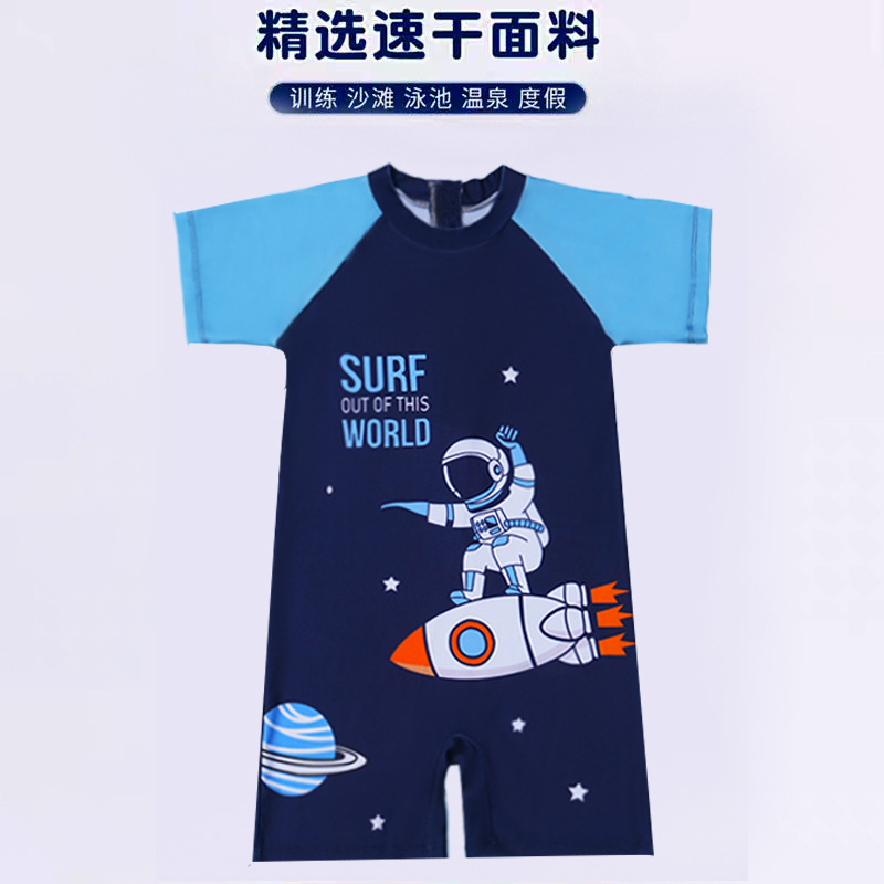 새로운 어린이 만화 수영복 소년 귀여운 반팔 만화 공룡 수영복 선 스크린 빠른 건조 수영복 패션 트렌드