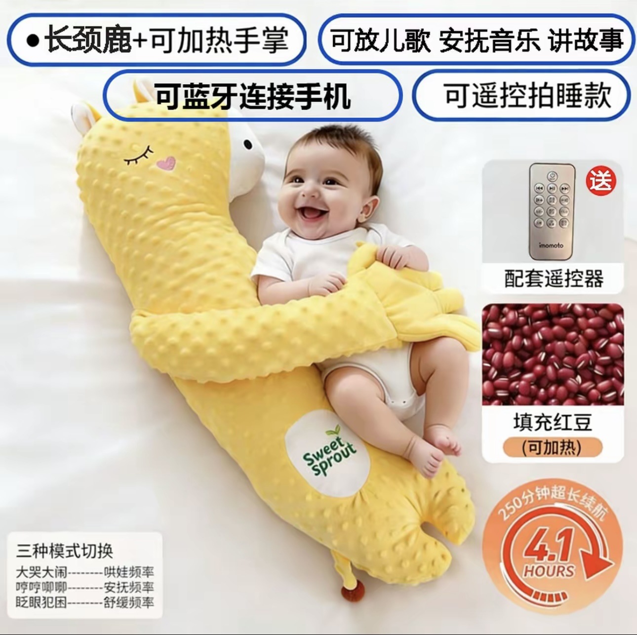 • {음악 모델 + 업그레이드된 팥 온찜질} 미색 곰 + 진정 및 두드림 + 충전 + 리모콘