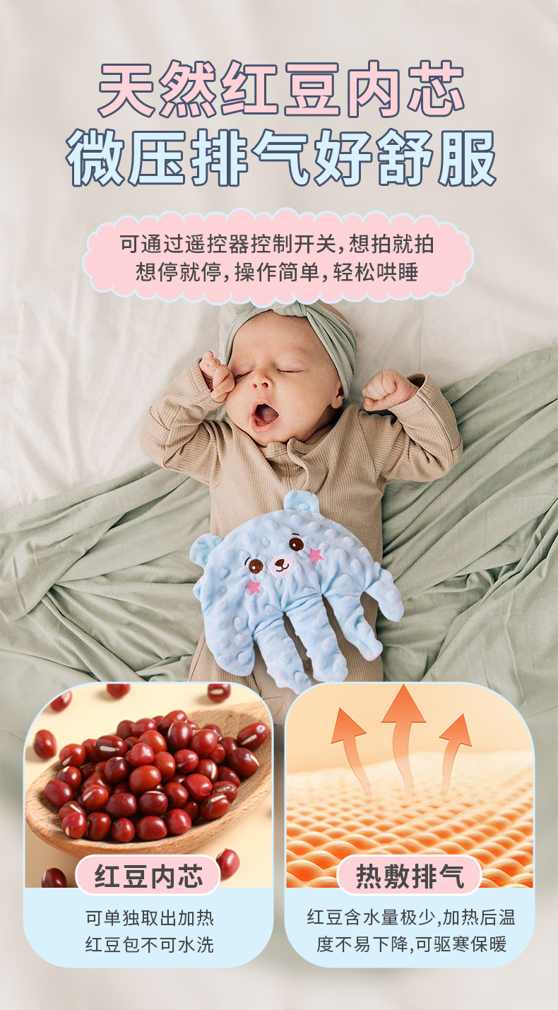 • {음악 모델 + 업그레이드된 팥 온찜질} 파란색 곰 + 진정 및 두드리기 + 충전 + 리모콘