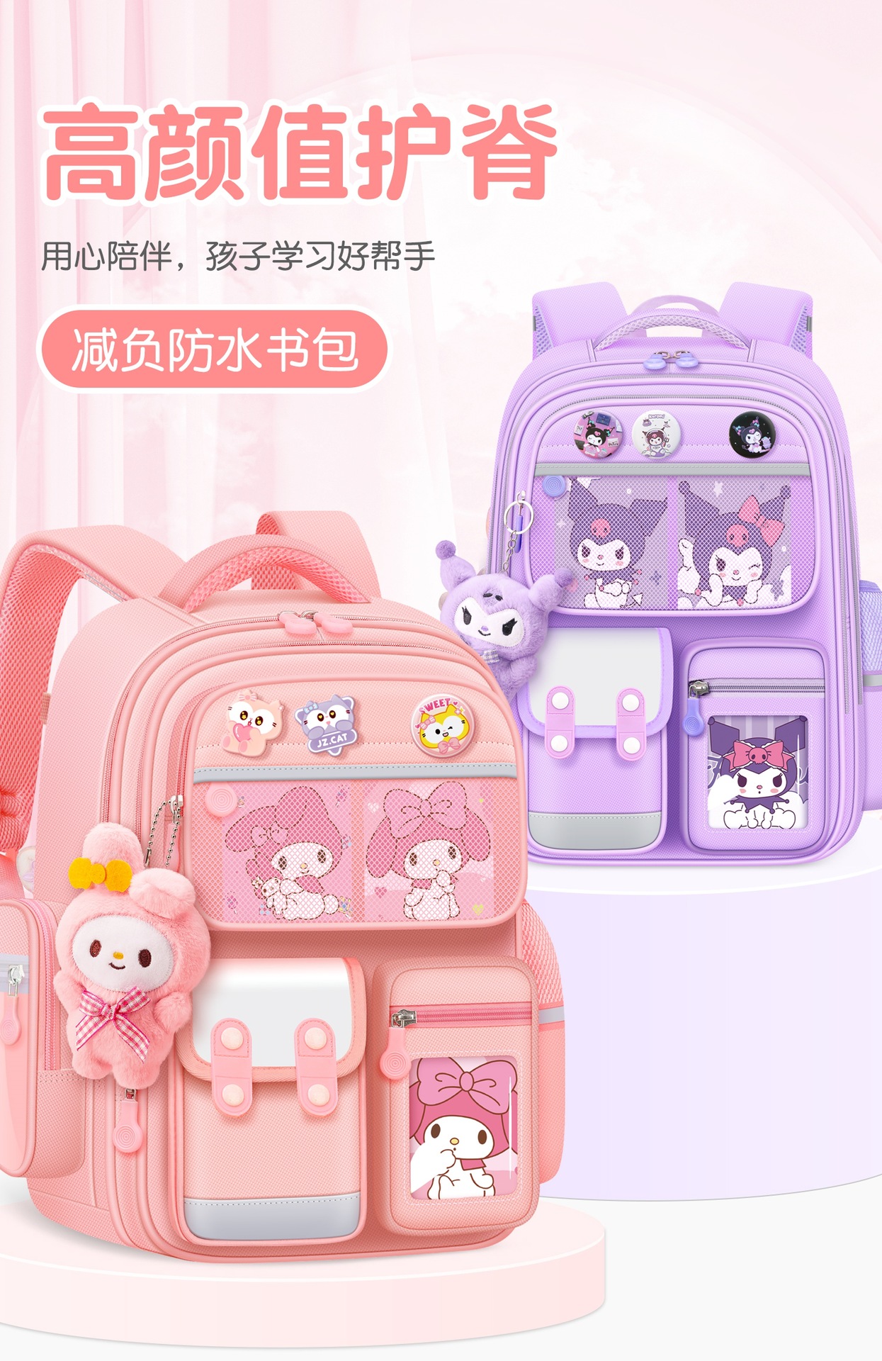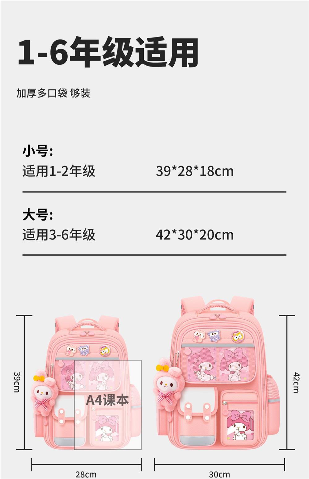 신형 애니메이션 만화 초등학생 책가방 쿠로미 대용량 경량 부담 경감 1~6학년 어린이 책가방