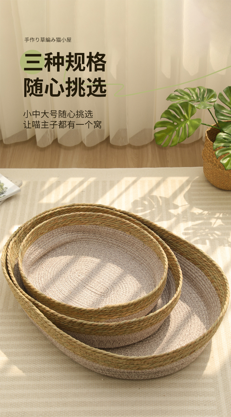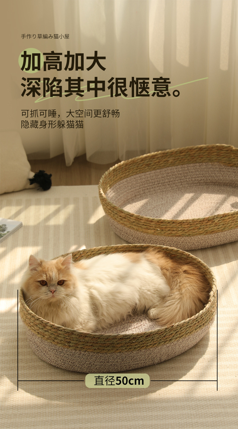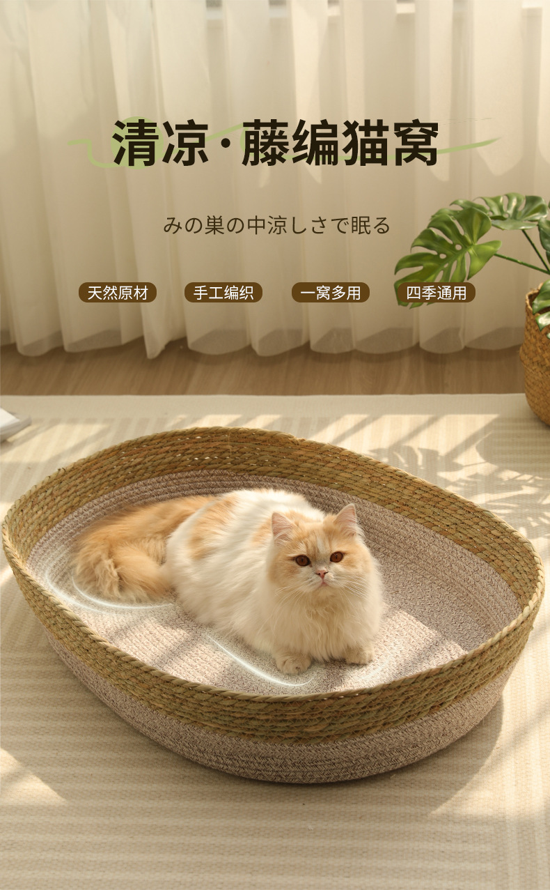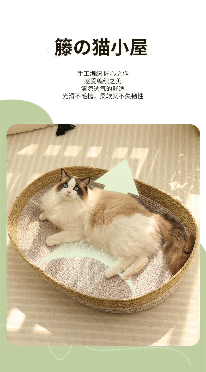 타원형 등나무 고양이 둥지 여름 시원한 고양이 둥지 긁힘 방지 짠 고양이 둥지 애완 동물 짠 침대 국경 공장 도매스토어 가기