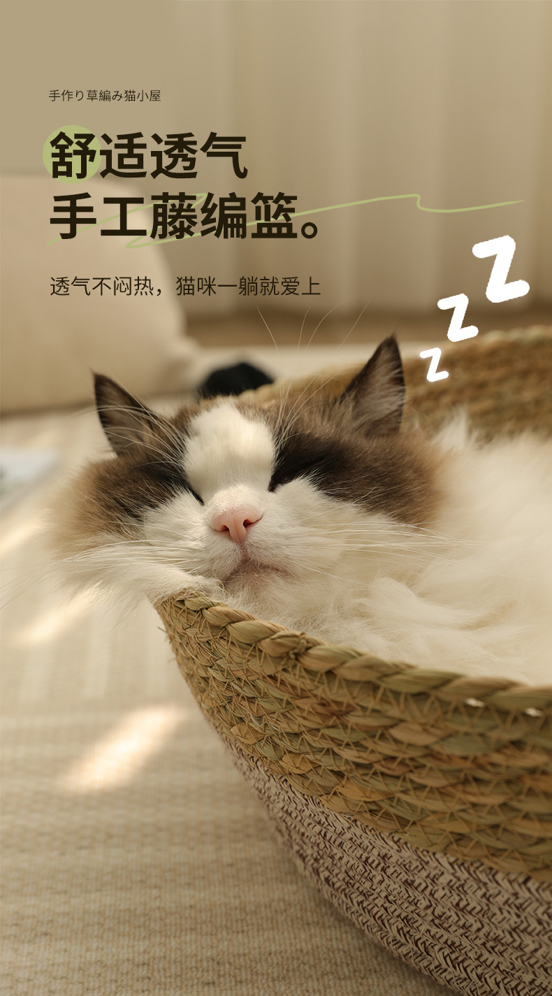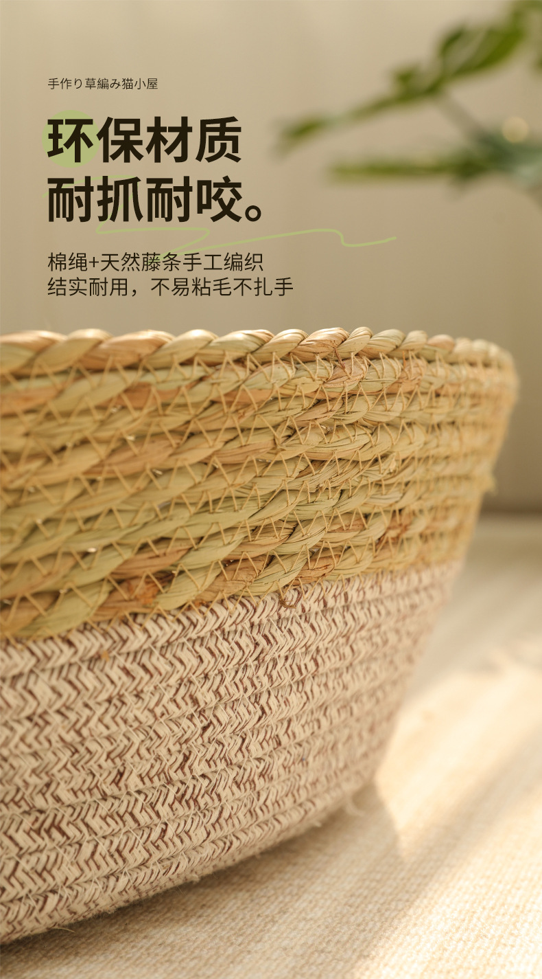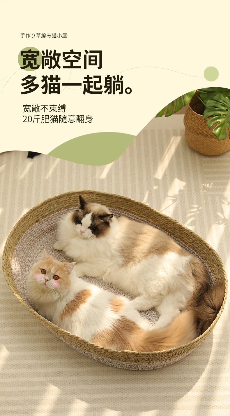 타원형 등나무 고양이 둥지 여름 시원한 고양이 둥지 긁힘 방지 짠 고양이 둥지 애완 동물 짠 침대 국경 공장 도매스토어 가기