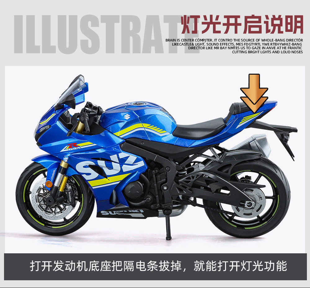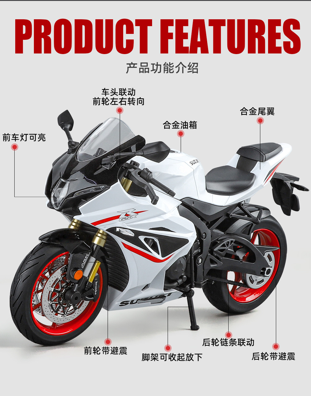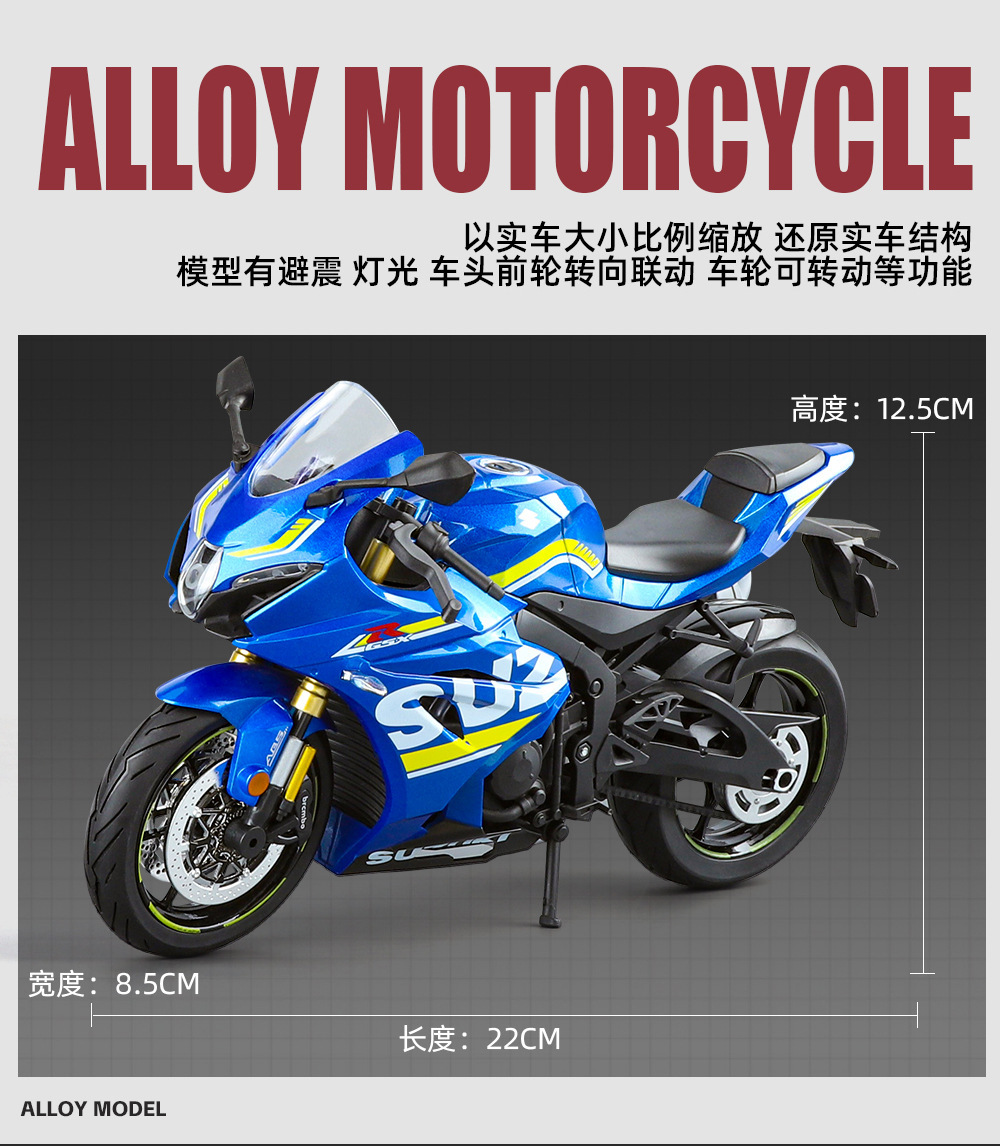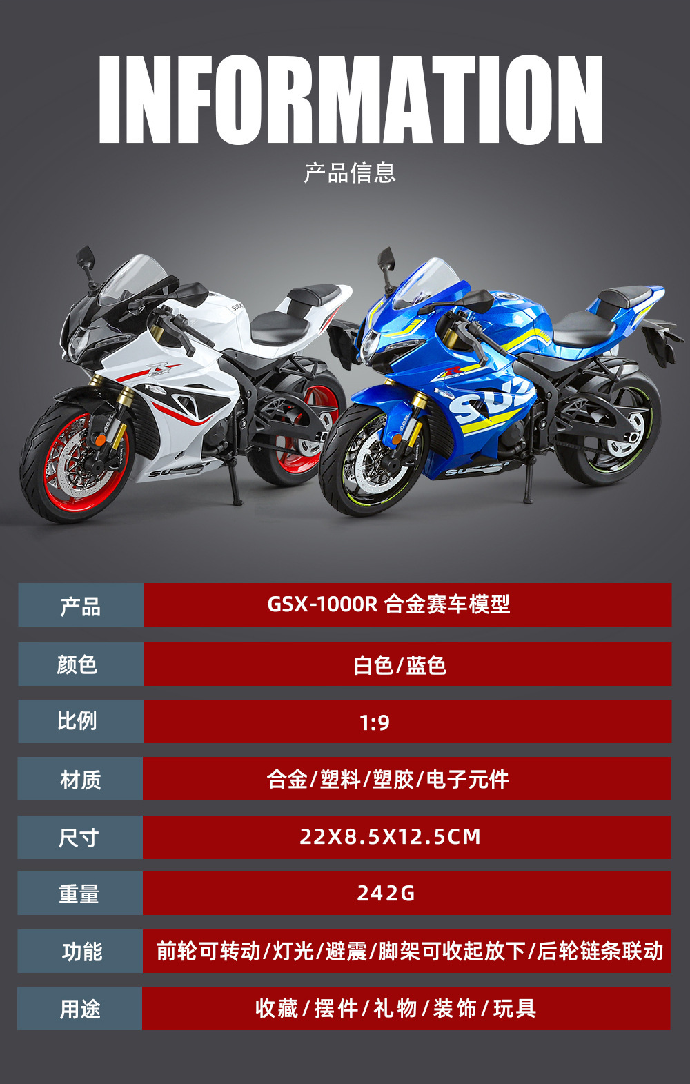정품 1:9 중국 스즈키 GSX-1000R 합금 오토바이 합금 장난감 자동차 모델 장식품 도매 세대스토어 가기