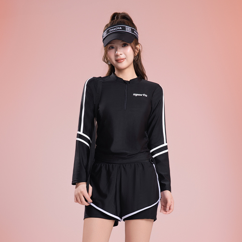 여성용 스플릿 수영복, 보수적인 새로운 스타일, 속건성, 슬리밍, 배 커버, 긴팔, 스포츠 수영장, 여성용 특수 살 커버 수영복
