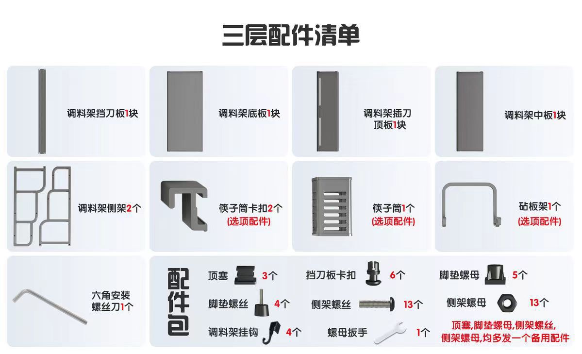 • 50CM 총재 3단 젓가락통 + 도마걸이 + 칼걸이 + 고리 4개