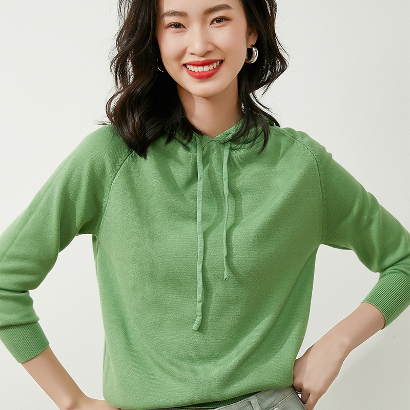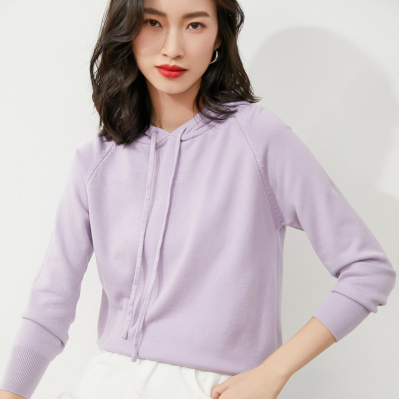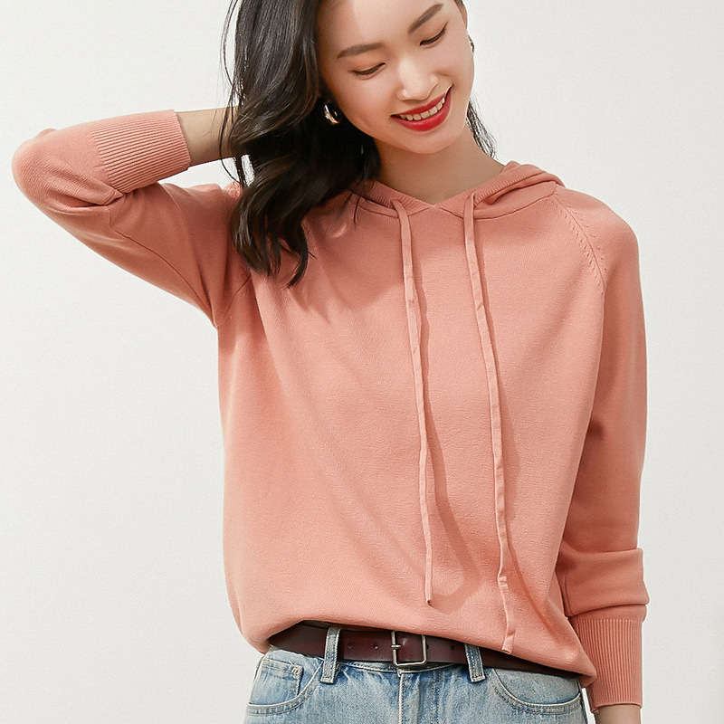 2024 새로운 긴팔 후드 스웨터 여성 풀오버 스웨터 루즈 캐주얼 짧은 탑 후드 기본 스웨터