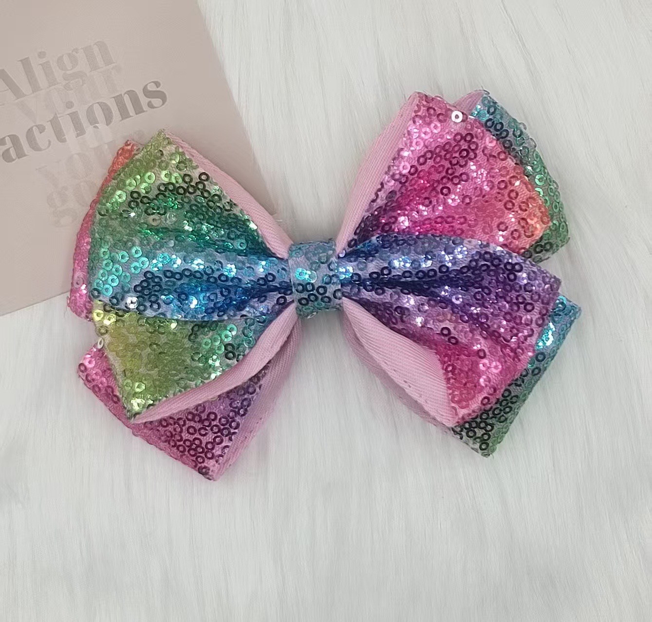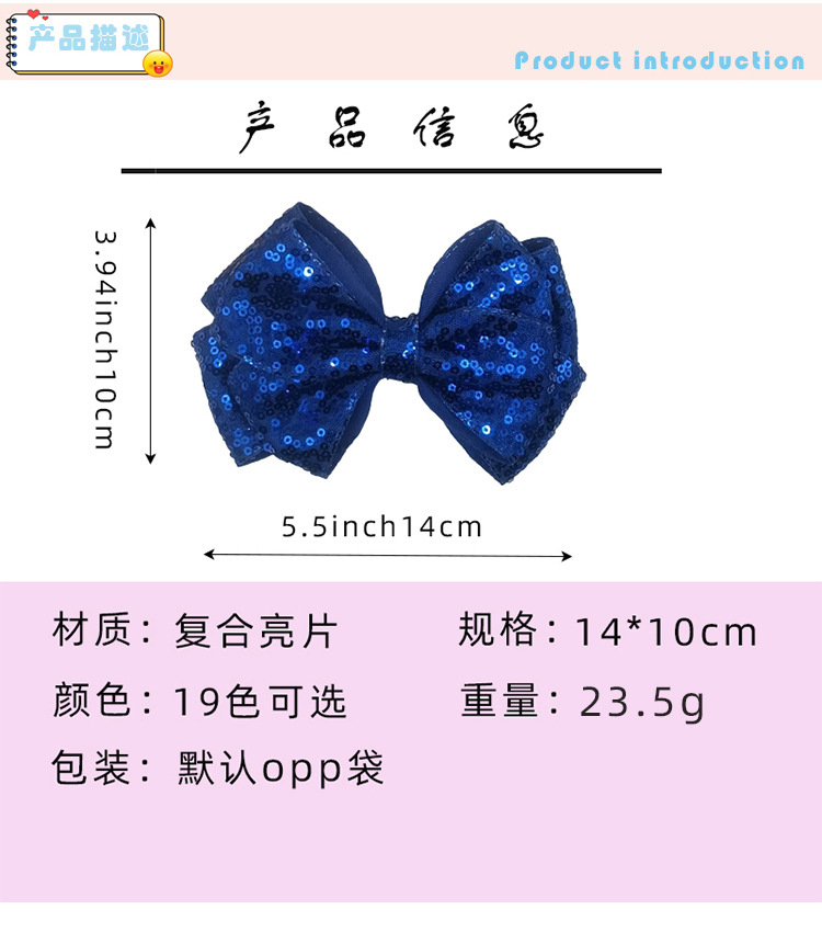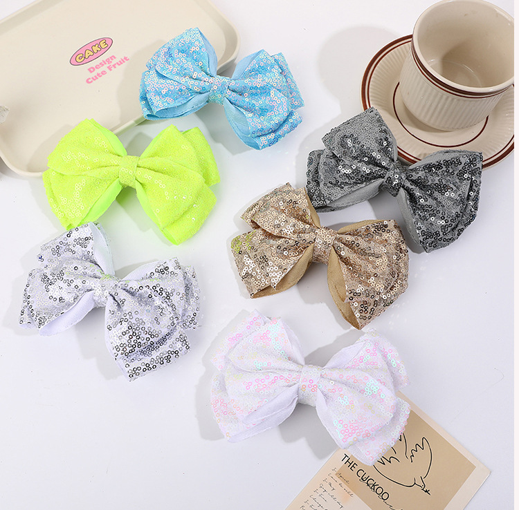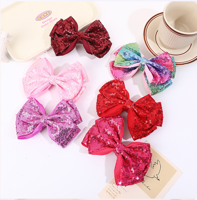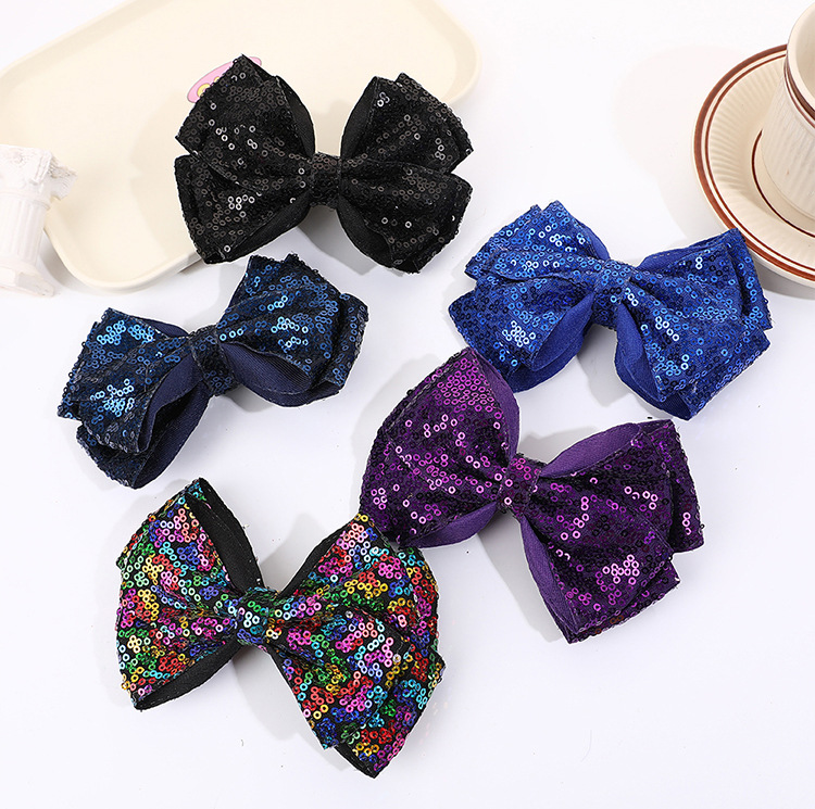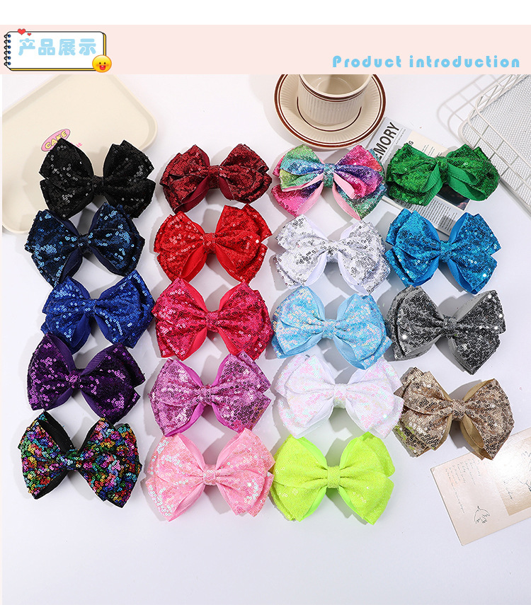 유럽과 미국의 더블 레이어 스팽글 머리핀, 리본 머리 장식, 치어리딩 반짝반짝 귀여운 아기 어린이 머리핀 머리 장식