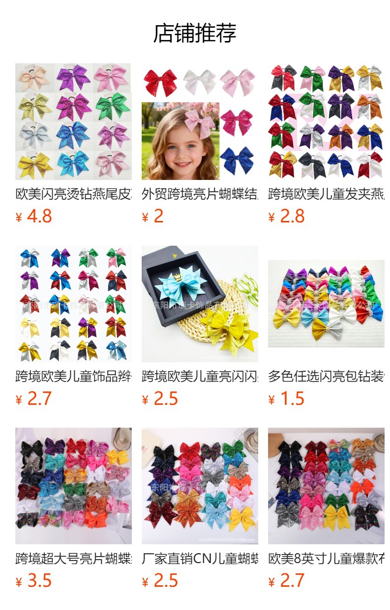 유럽과 미국의 더블 레이어 스팽글 머리핀, 리본 머리 장식, 치어리딩 반짝반짝 귀여운 아기 어린이 머리핀 머리 장식스토어 가기