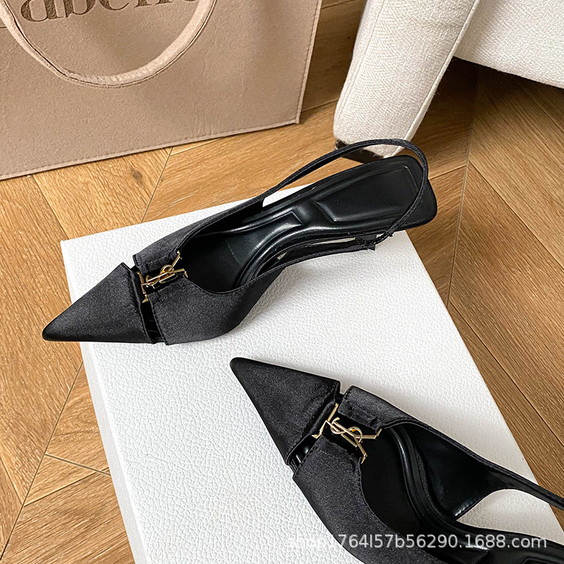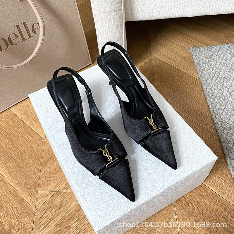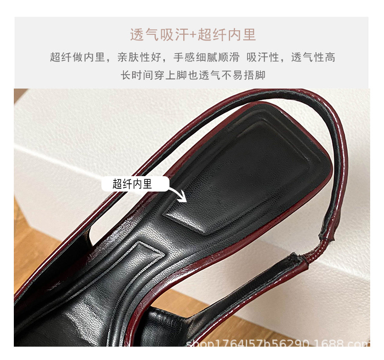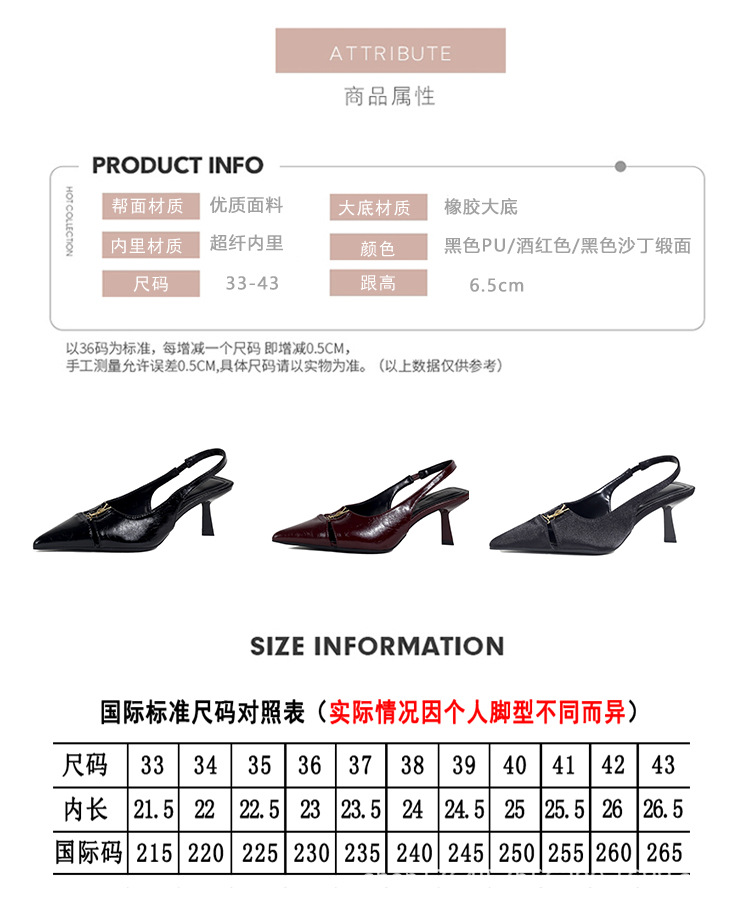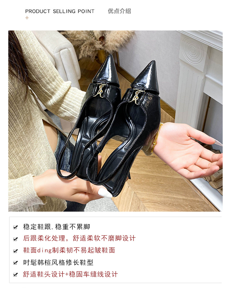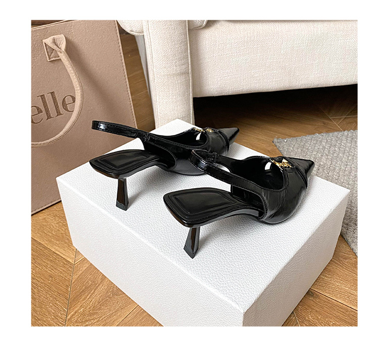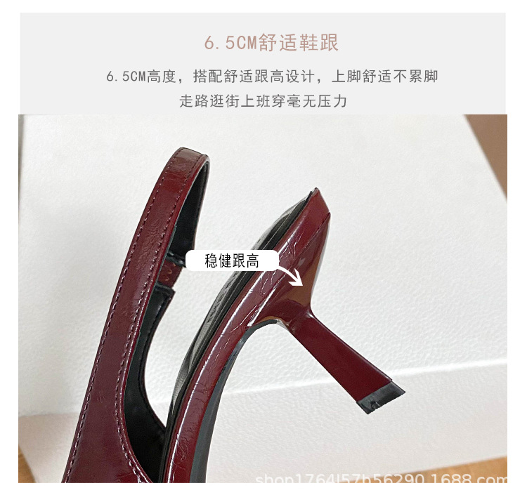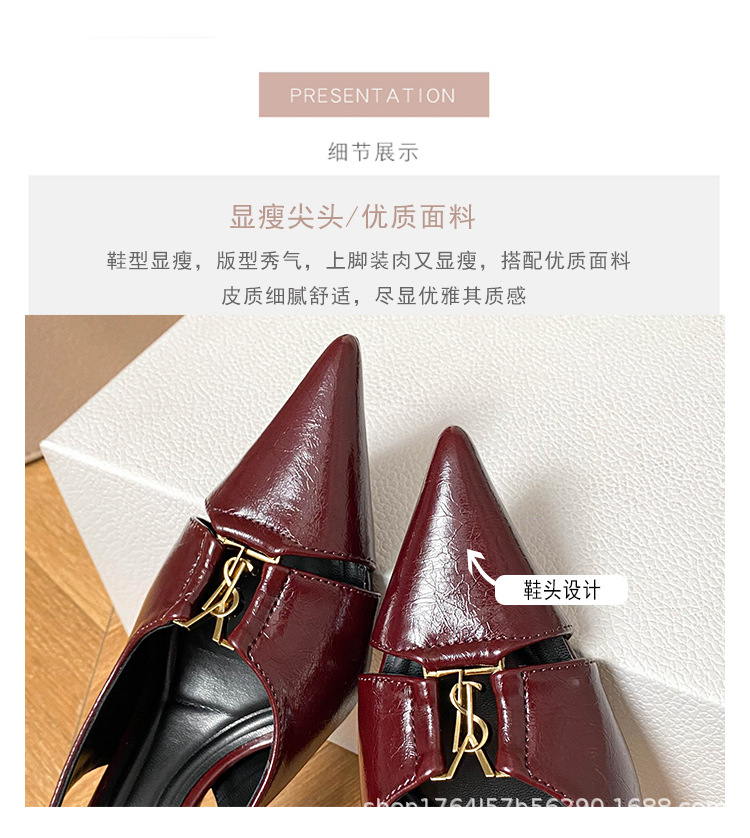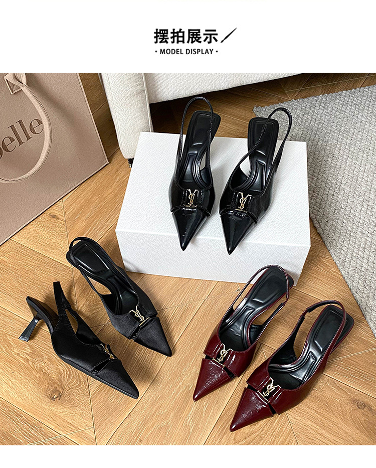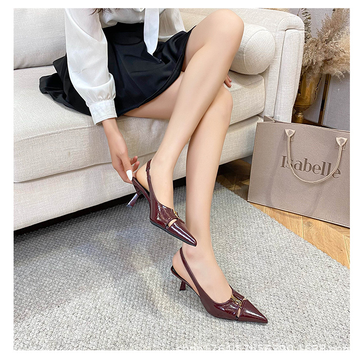 프랑스 금속 버클 포인팅 힐 여성 신발 2025 봄/여름 특허 가죽 버건디 블랙 얕은 Hallback 패션 샌들스토어 가기