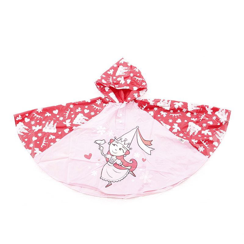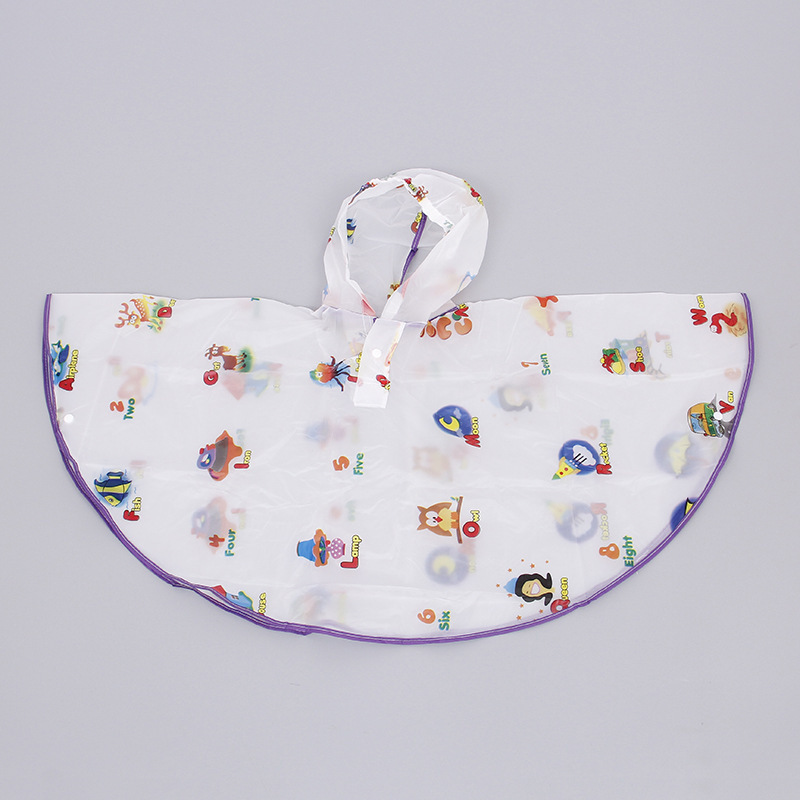 만화 캐릭터 어린이 비옷 전면 프린팅 어린이용 PVC/PEVA 하프 라운드 망토형 비옷