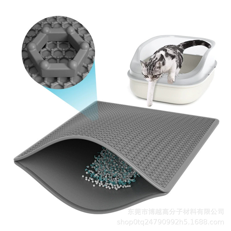 包装方式:我厂出货为裸装出货、如需包装请和客服沟通说明, 产品功能:适用95%以上种类的猫砂,上层通孔材料,猫砂可轻易通过,下层防水材质,猫砂、小便等脏物可聚集于此。猫砂垫为上下双层设计:上层采用六角形的洞孔凹凸设计,除了让猫砂落入后不再溅出外,圆球型的柔滑触感也可以避免猫咪抓坏,下层垫密封专门存放猫砂,底部设计成规则性的圆孔,有效防滑避免横冲直撞的猫咪滑到受伤。