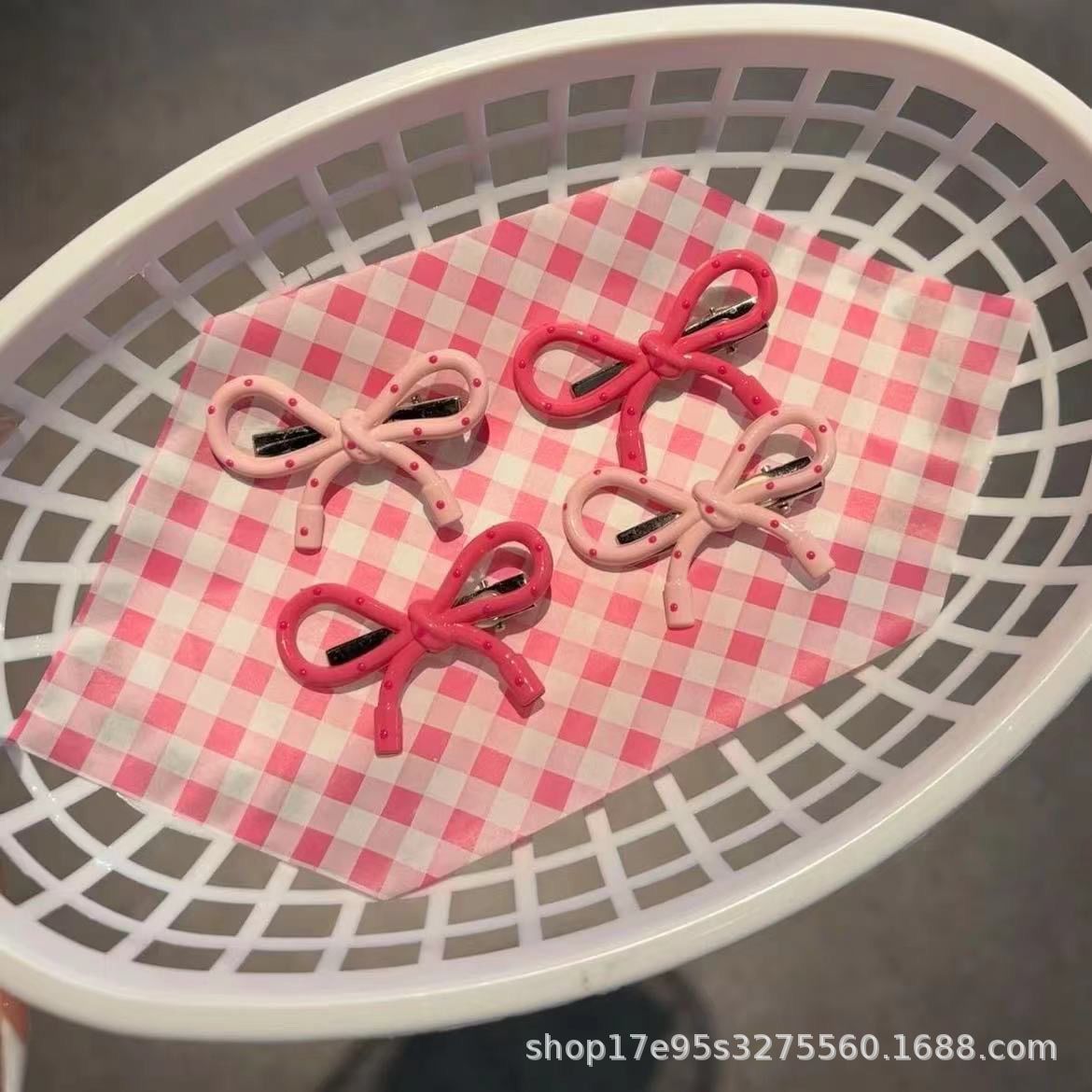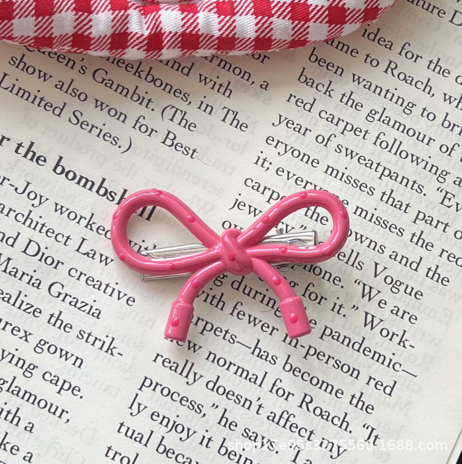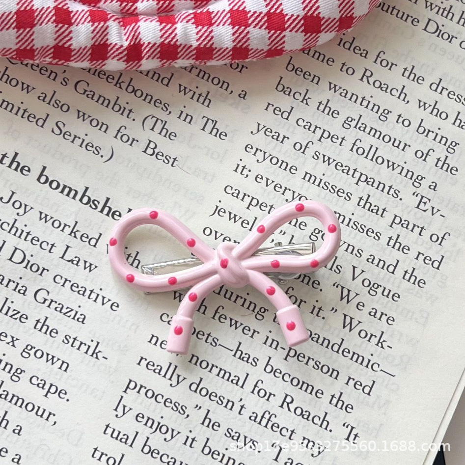 한국식 간단한 폴로도트 핑크 활 덕빌 클립 인스타그램 스타일 가을과 겨울 간단한 올매치 뱅 엣지 클립 니치 헤드웨어