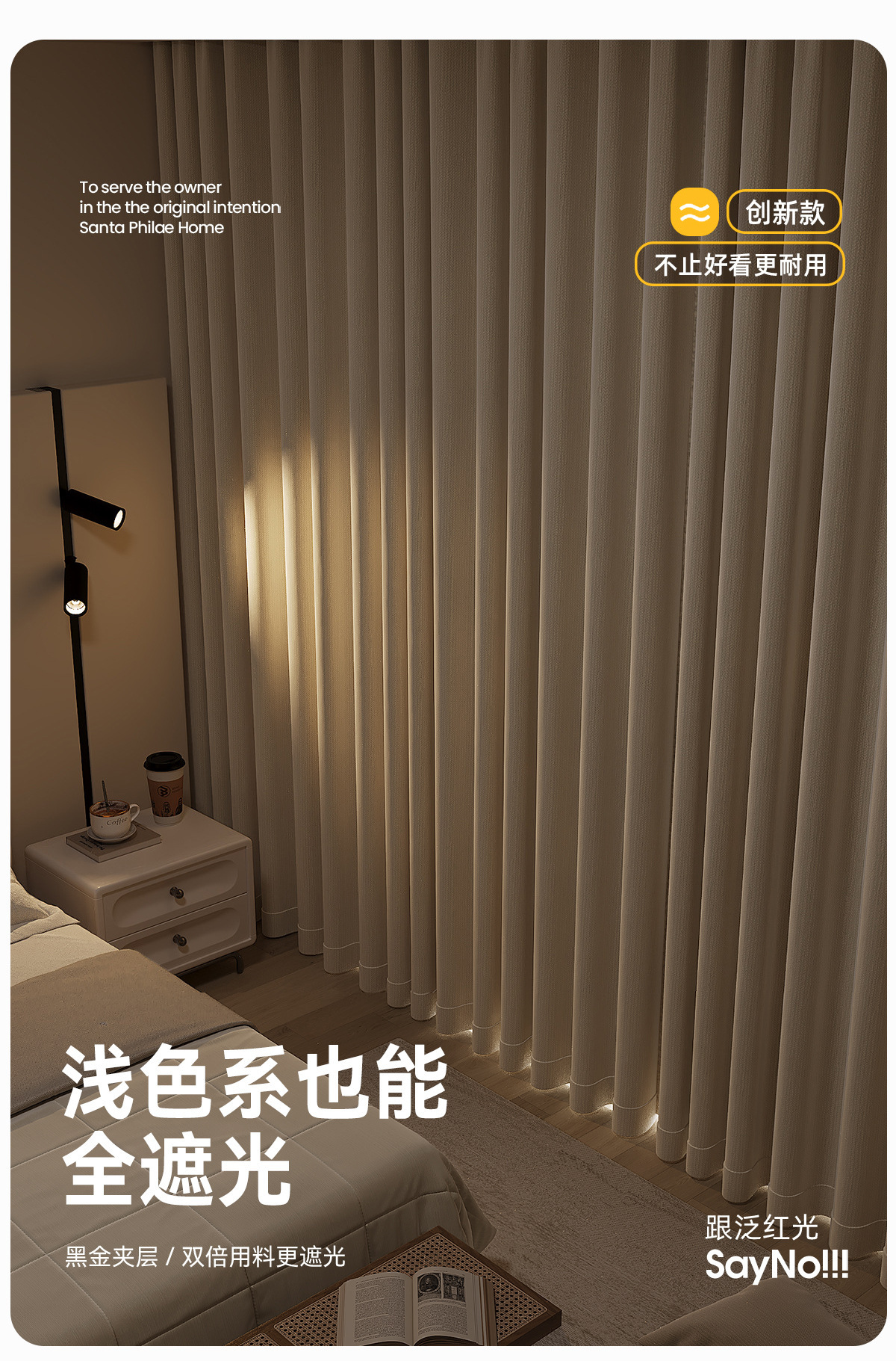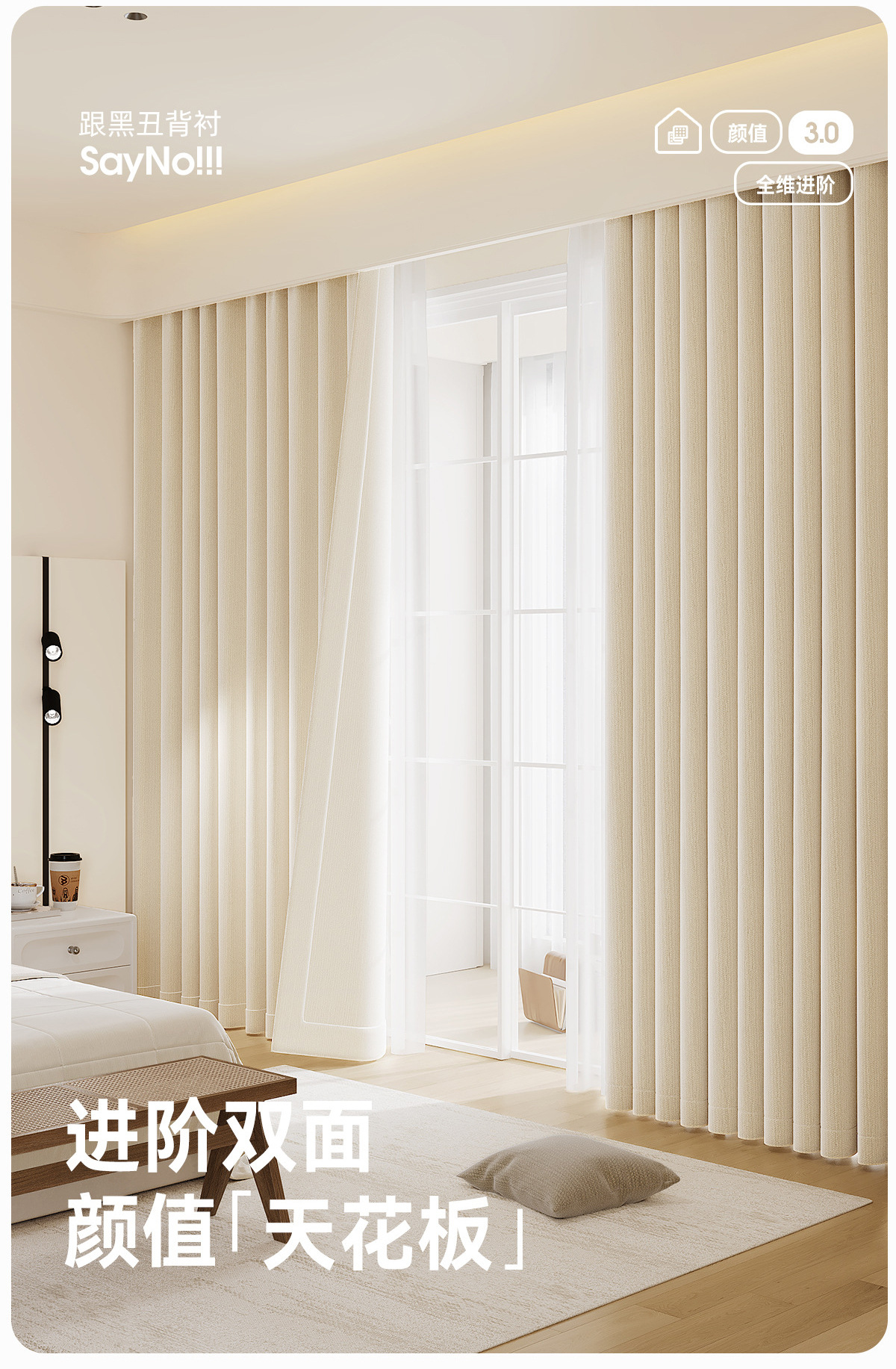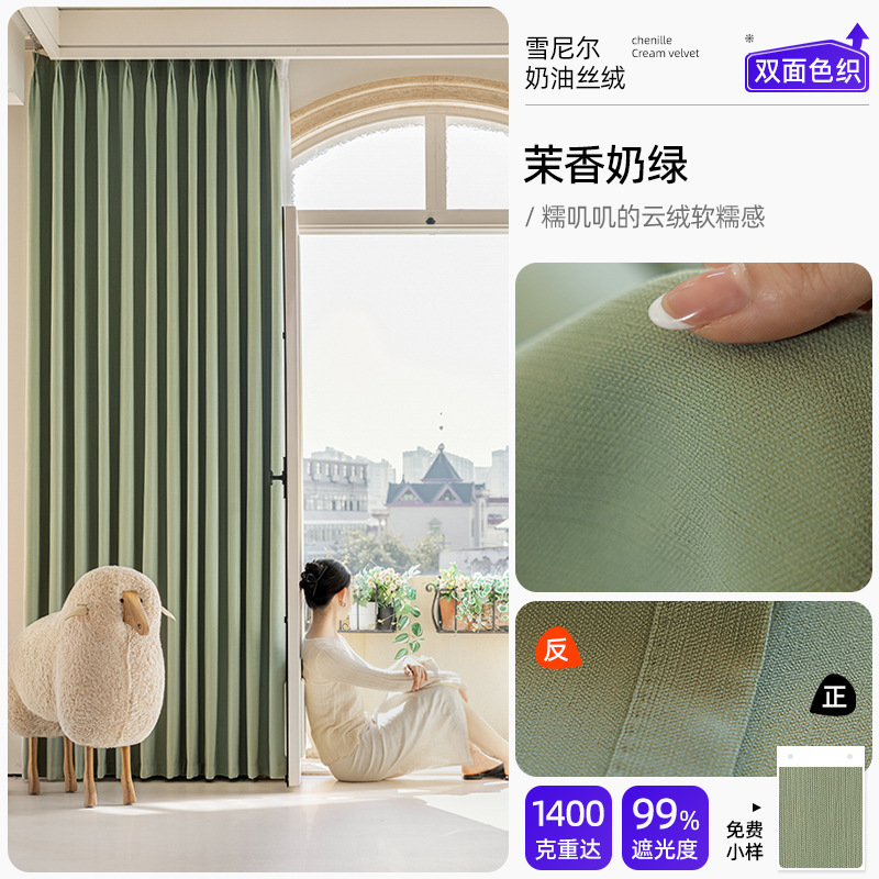 양면 셔닐 실 완전 암막 커튼 새로운 침실 커튼 하이 엔드 두꺼운 크림 스타일 Shaoxing Keqiao 커튼스토어 가기