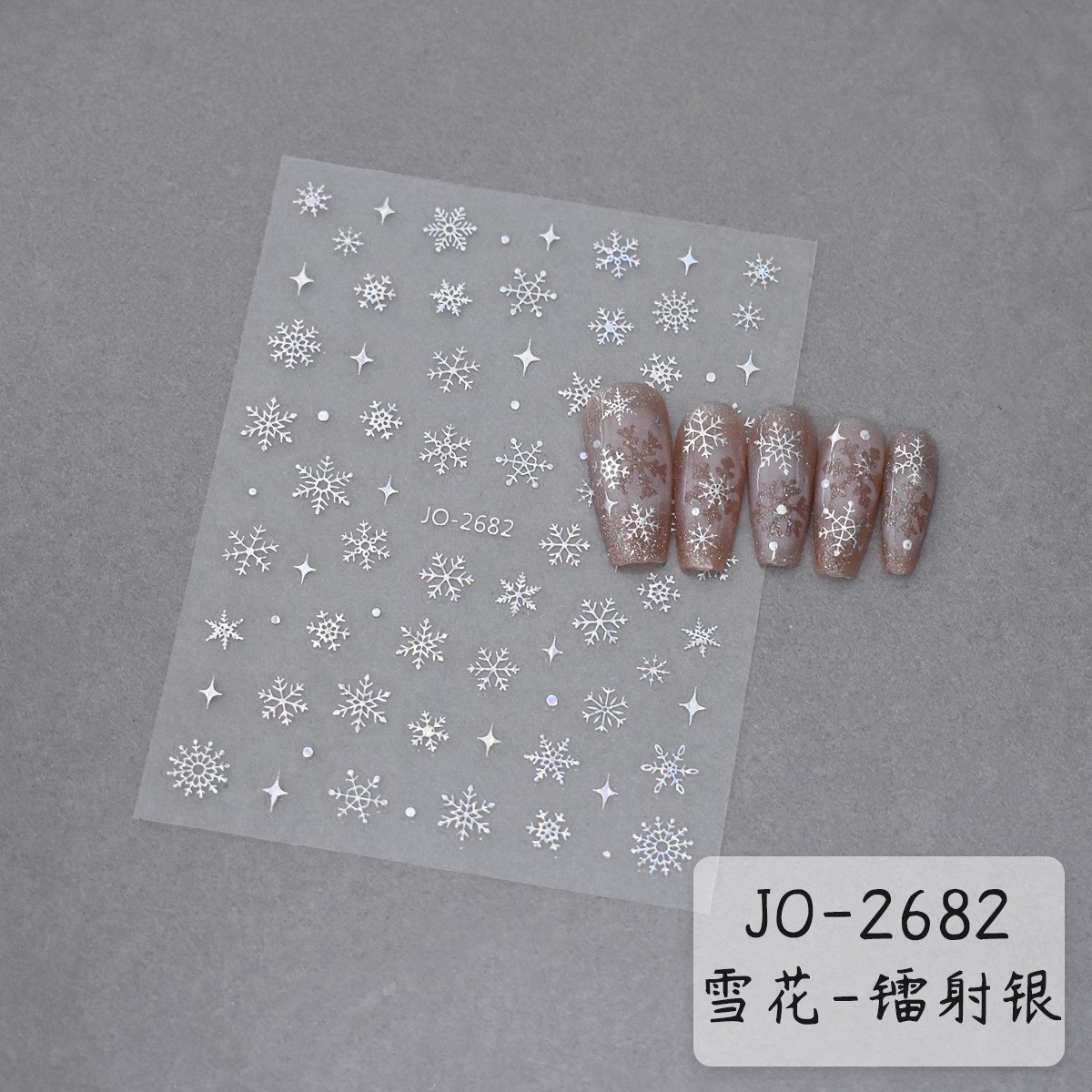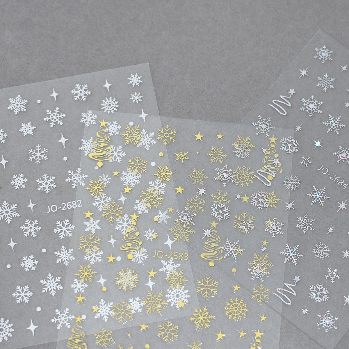 샤오홍슈 인기 눈꽃 네일 스티커 은색 화이트 골드 눈꽃 크리스마스 투명 바탕 네일 스티커 도매