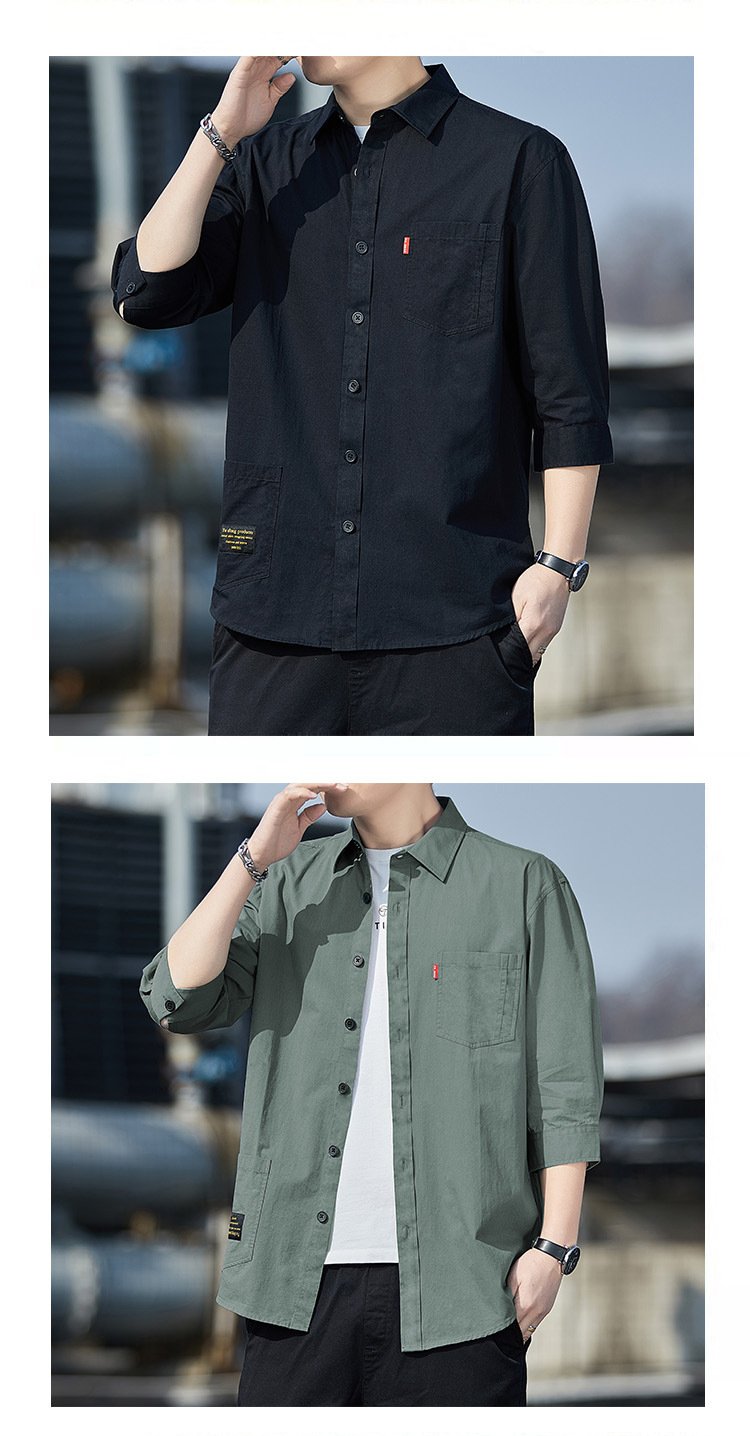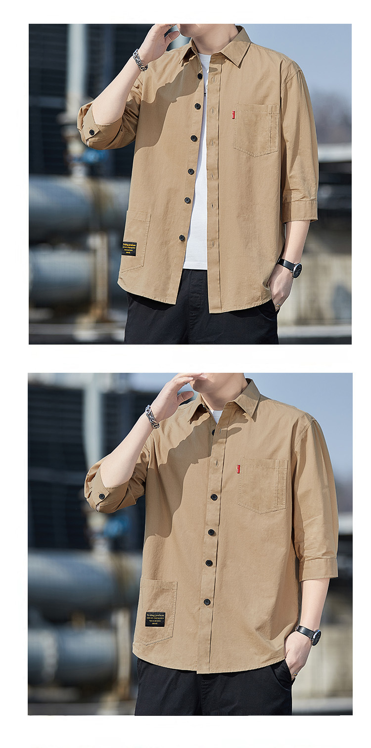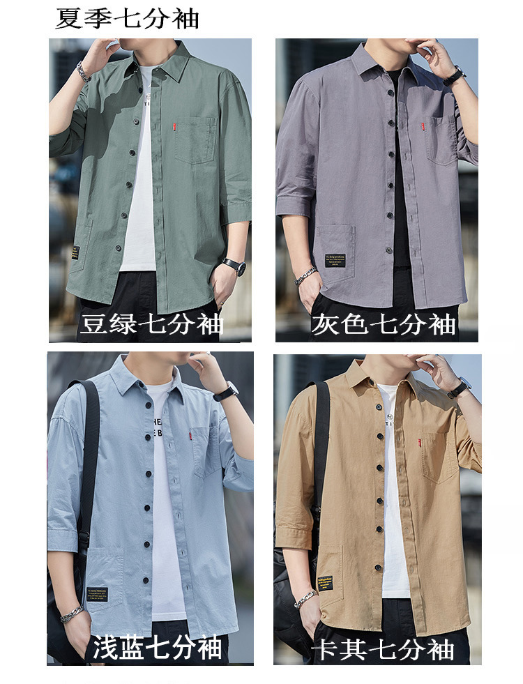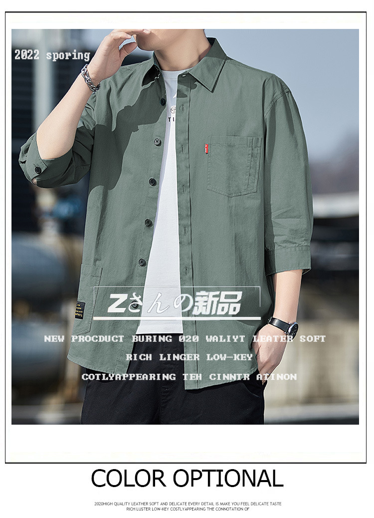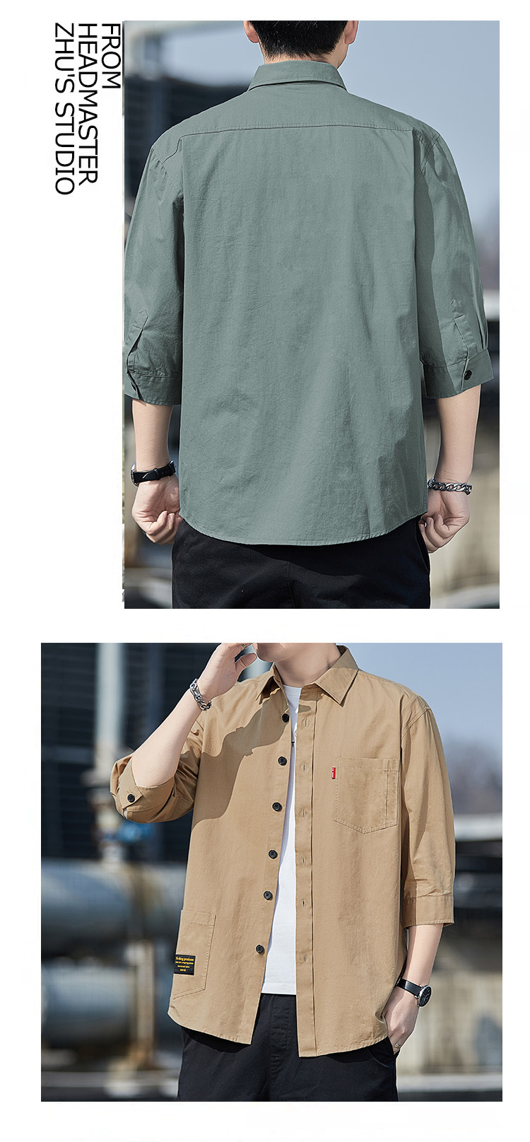 2025 트렌디 브랜드 반팔 재킷 남성 하이 7부 소매 셔츠 남성 캐주얼 루즈 버전 솔리드 컬러 반팔 셔츠 남성 의류