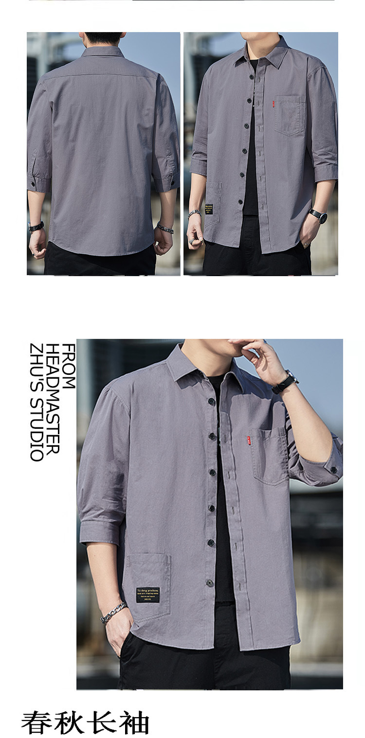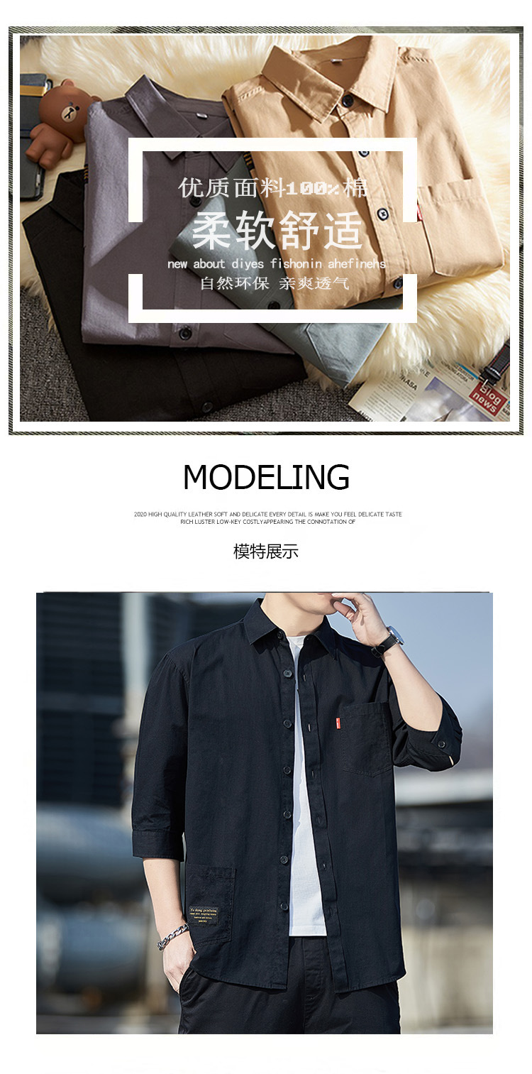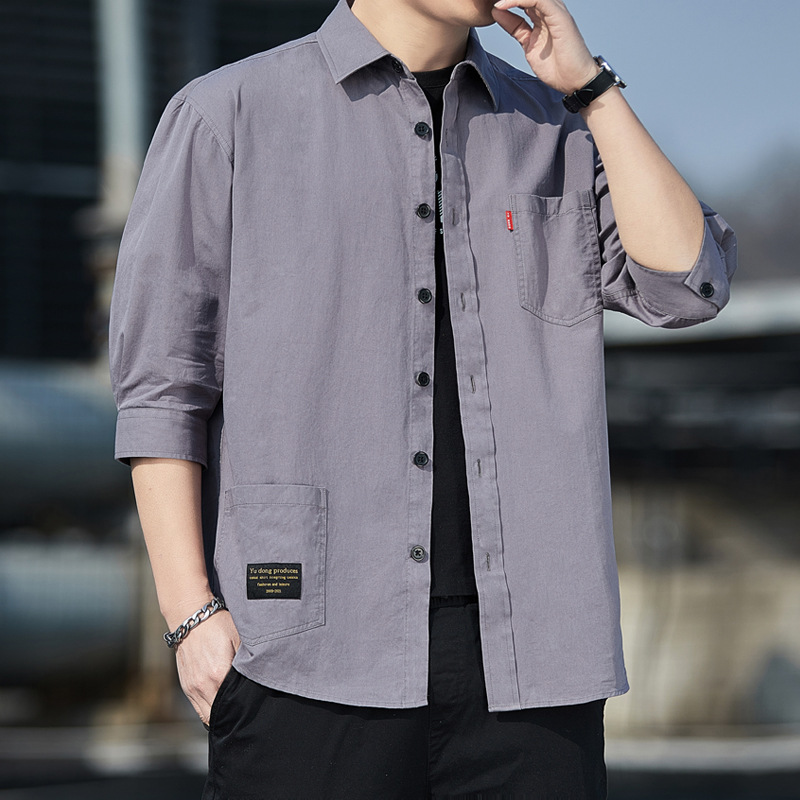 2025 트렌디 브랜드 반팔 재킷 남성 하이 7부 소매 셔츠 남성 캐주얼 루즈 버전 솔리드 컬러 반팔 셔츠 남성 의류스토어 가기