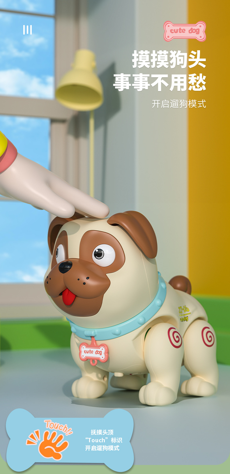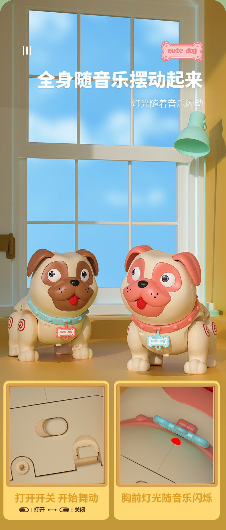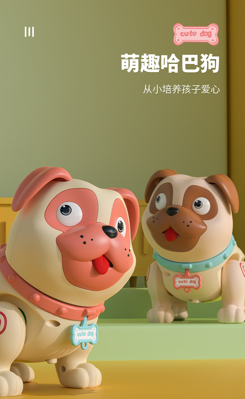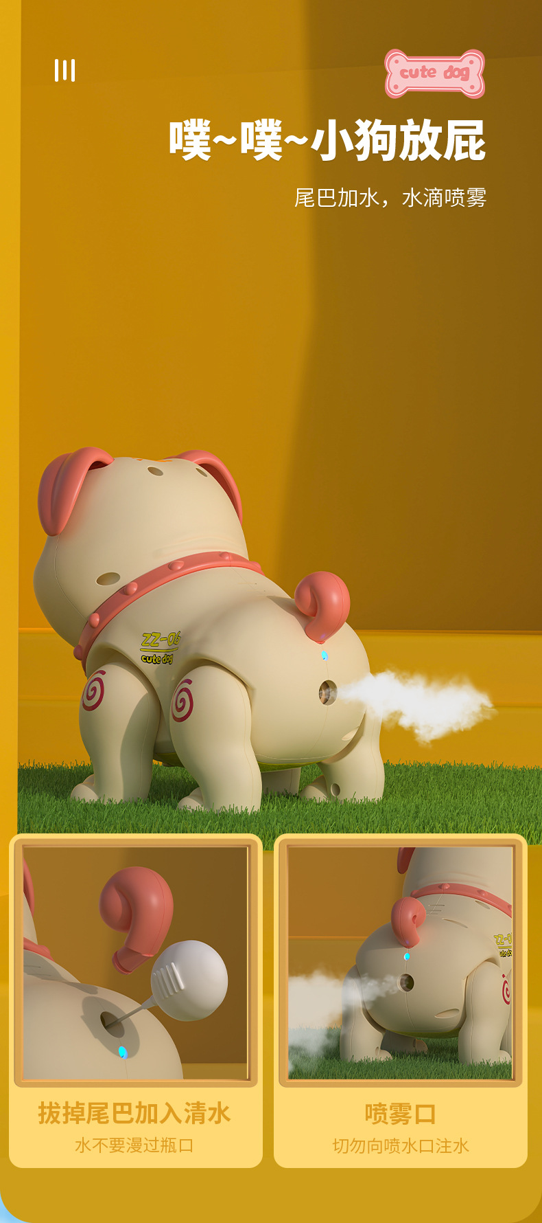 불을 지르고 음악을 재생하는 어린이용 전기 스프레이 퍼그, 아기를 달래는 아기 인공물, 귀여운 애완견 장난감스토어 가기