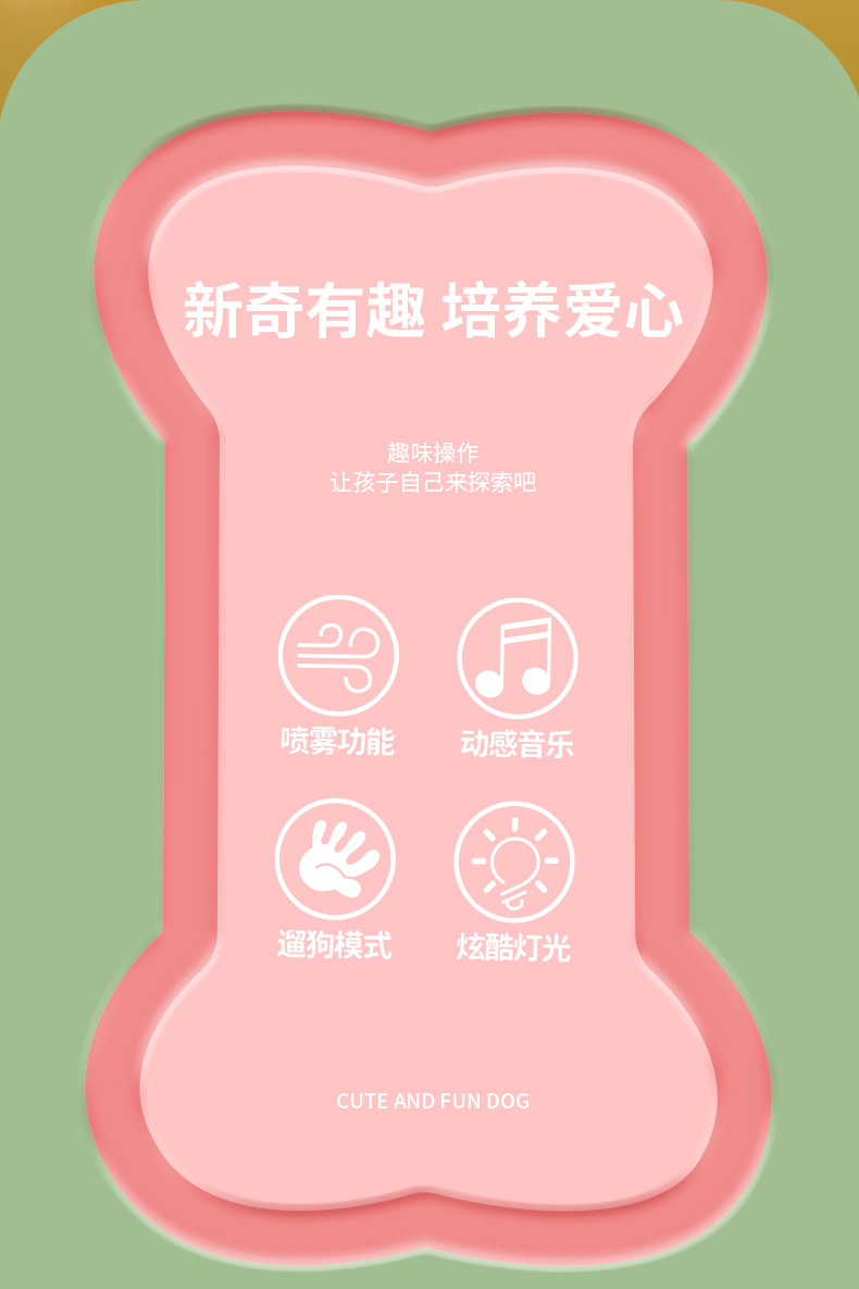 불을 지르고 음악을 재생하는 어린이용 전기 스프레이 퍼그, 아기를 달래는 아기 인공물, 귀여운 애완견 장난감