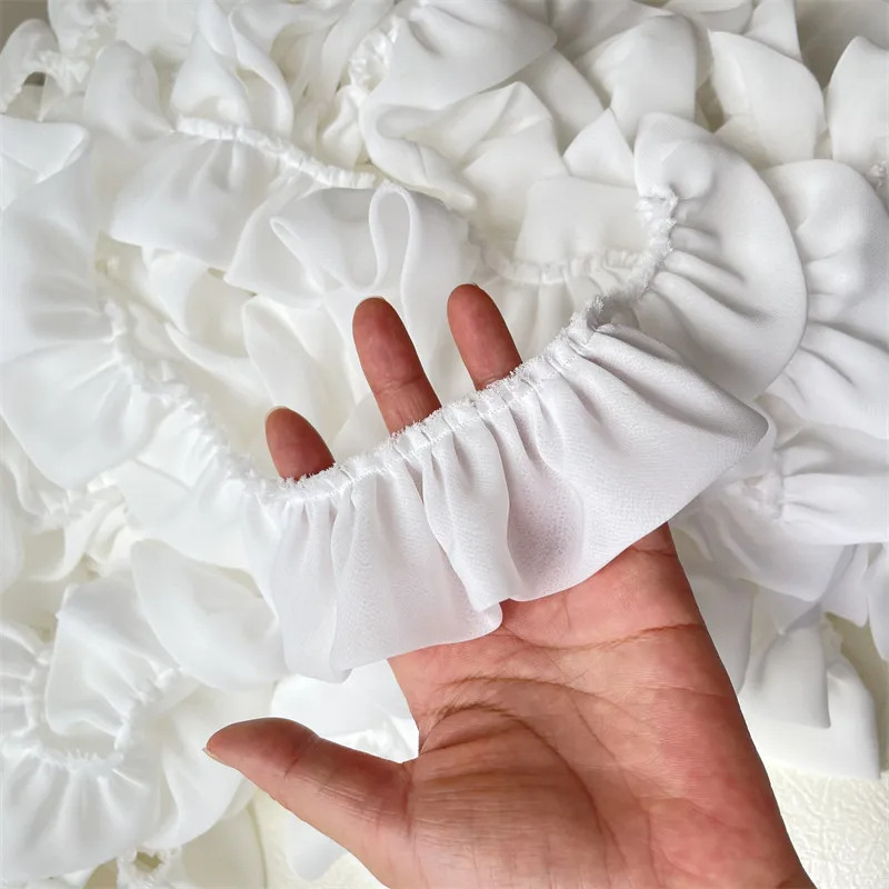 5cm 넓은 흰색 더블 레이어 쉬폰 레이스 주름 치마 인형 롤리타 diy 헴 장식 재료