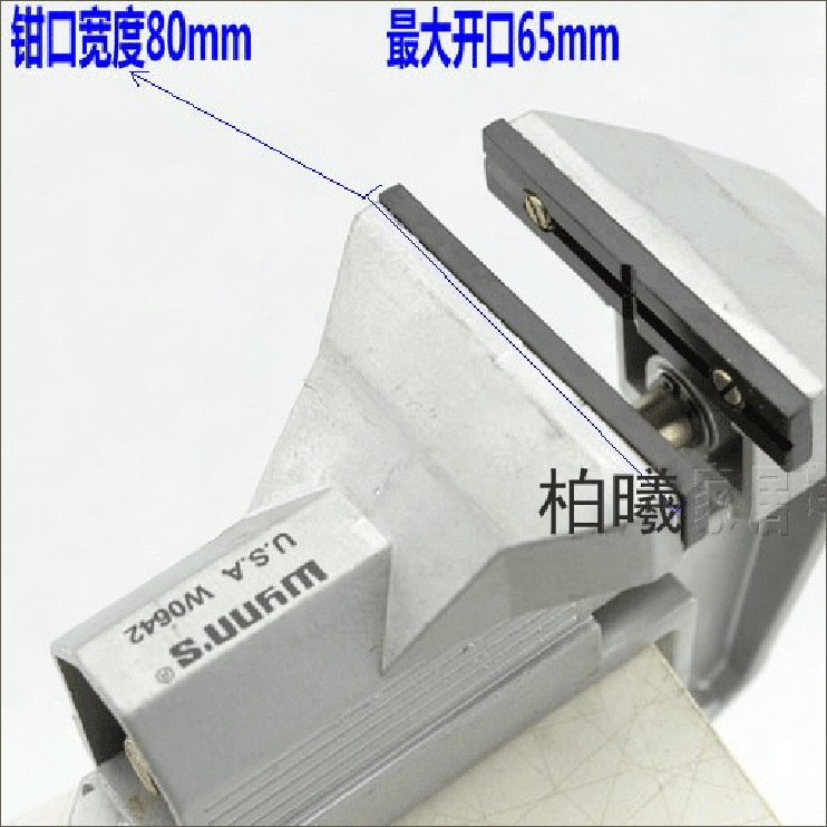 ◆ 技术参数:钳口宽度尺寸80mm,最大开口尺寸65mm,可旋转角度90°