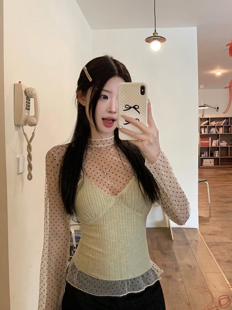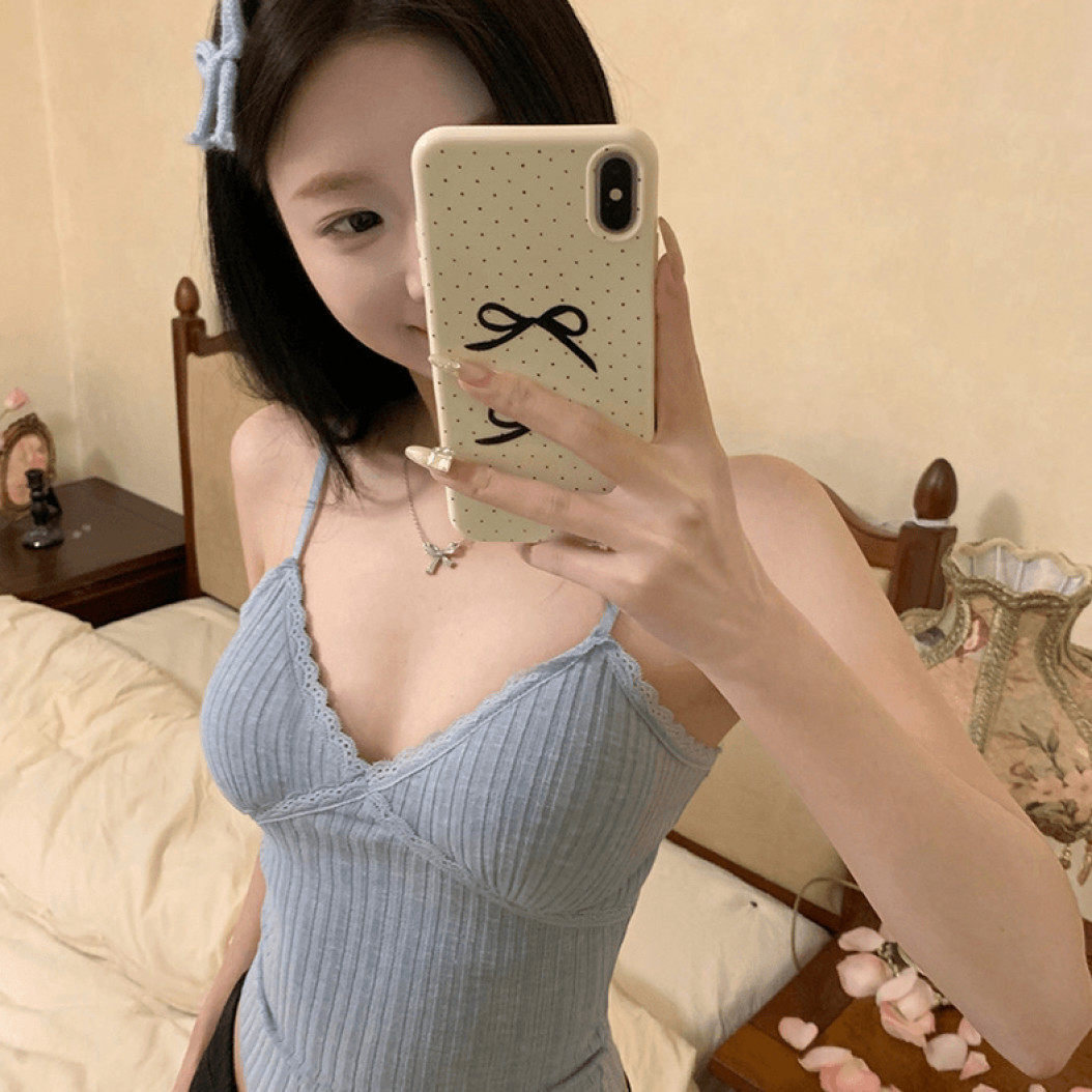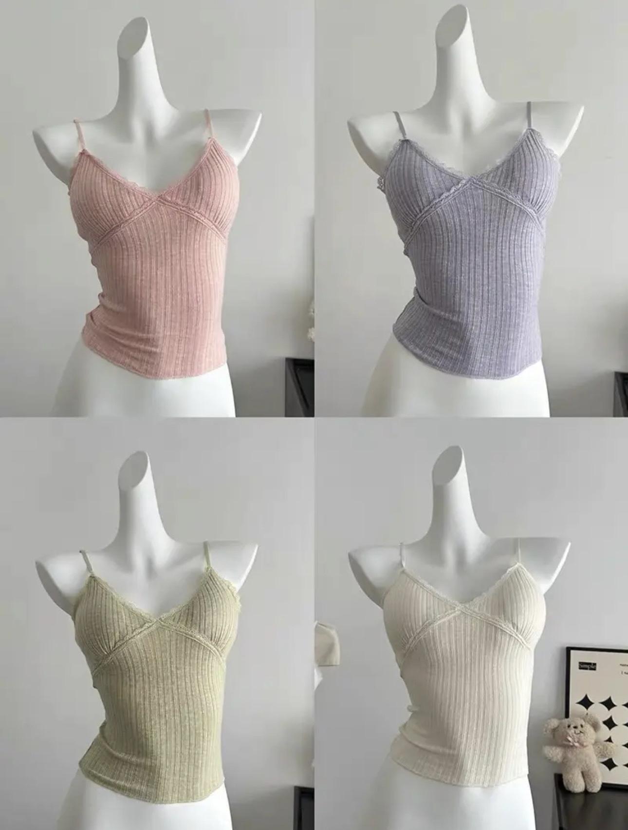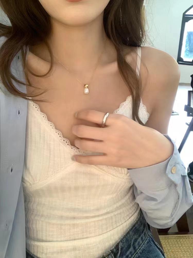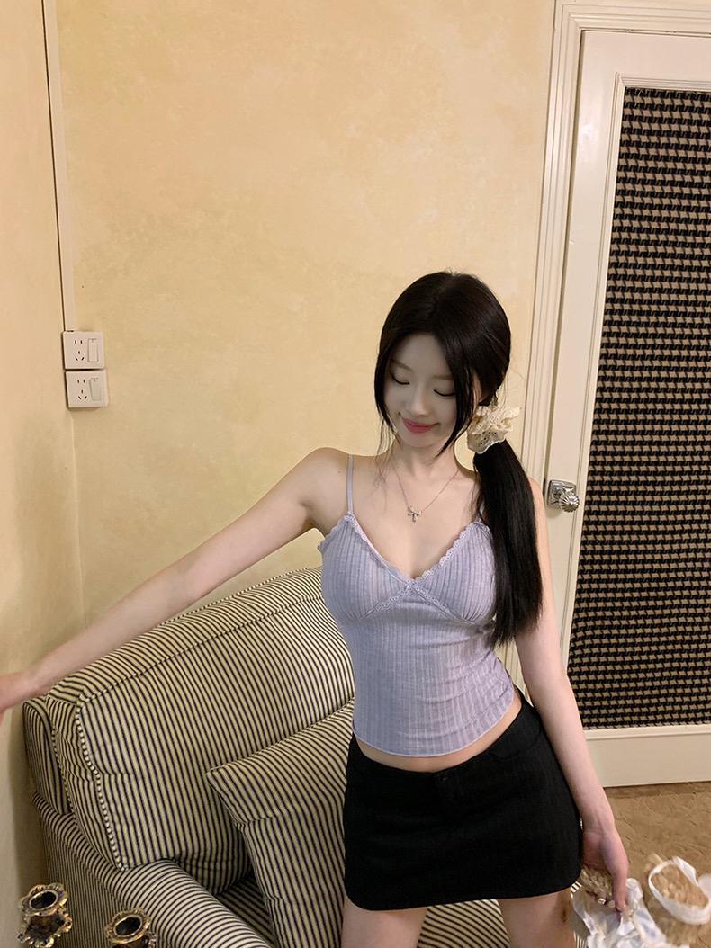 자오 루시 한국 레이스 스트랩 가슴 패드 슬리밍 여성 조끼 베이스 슬림 핏 아우터 착용 프랑스 아름다운 등스토어 가기