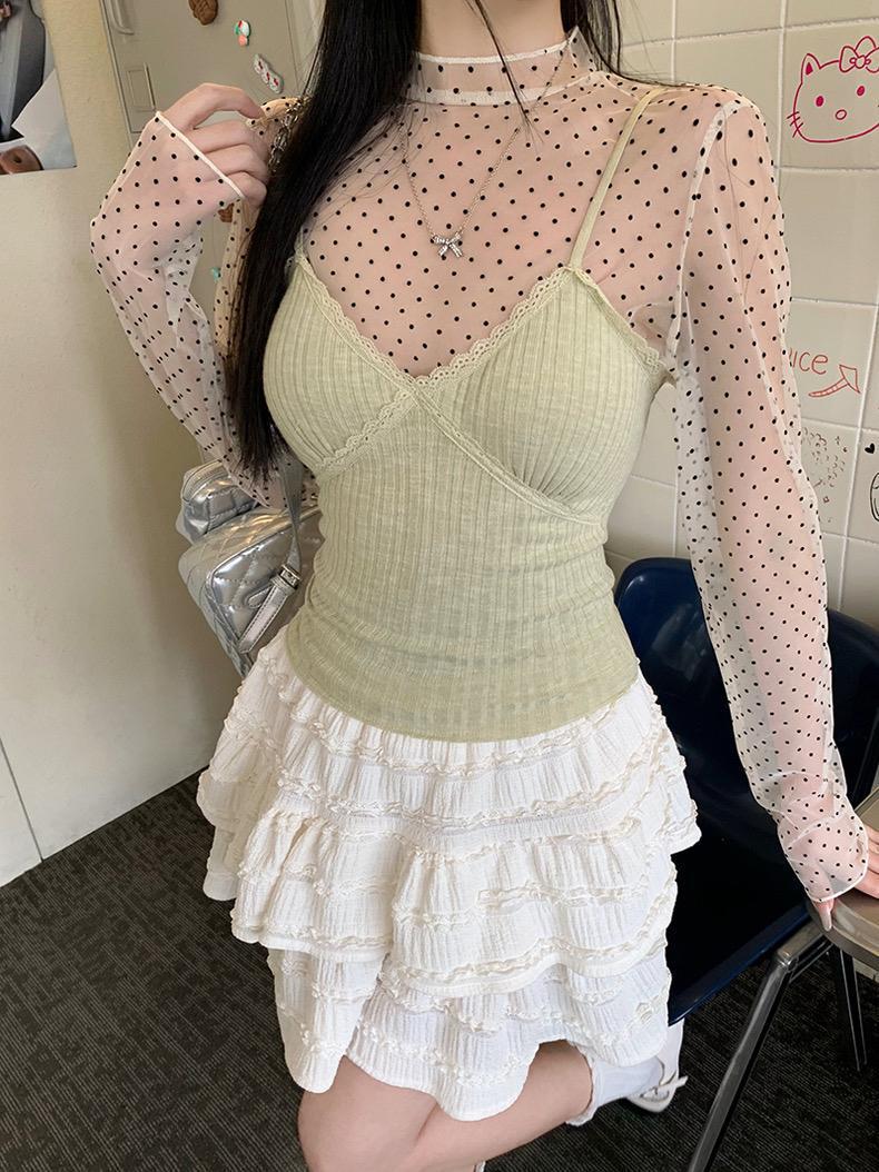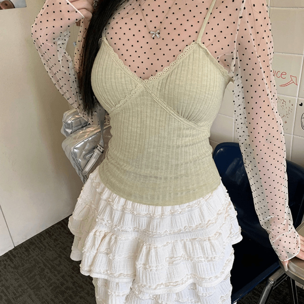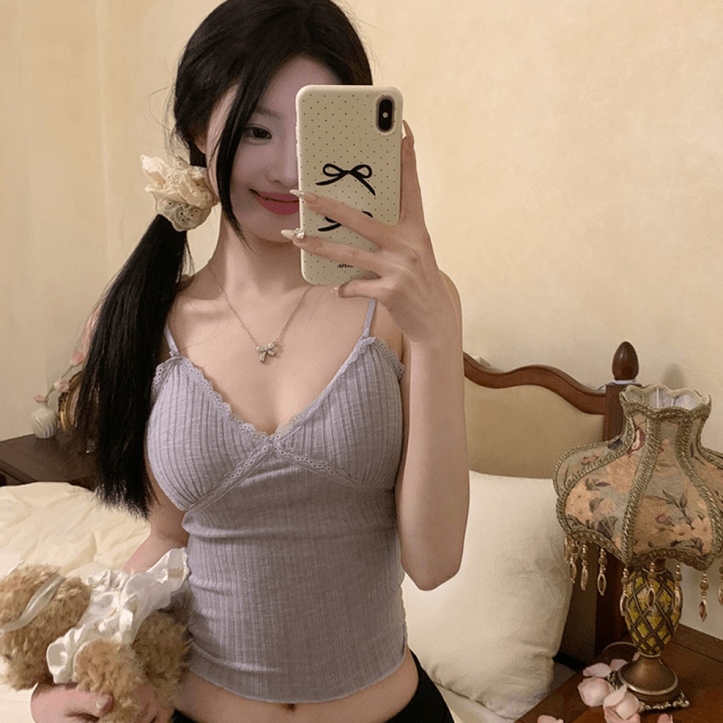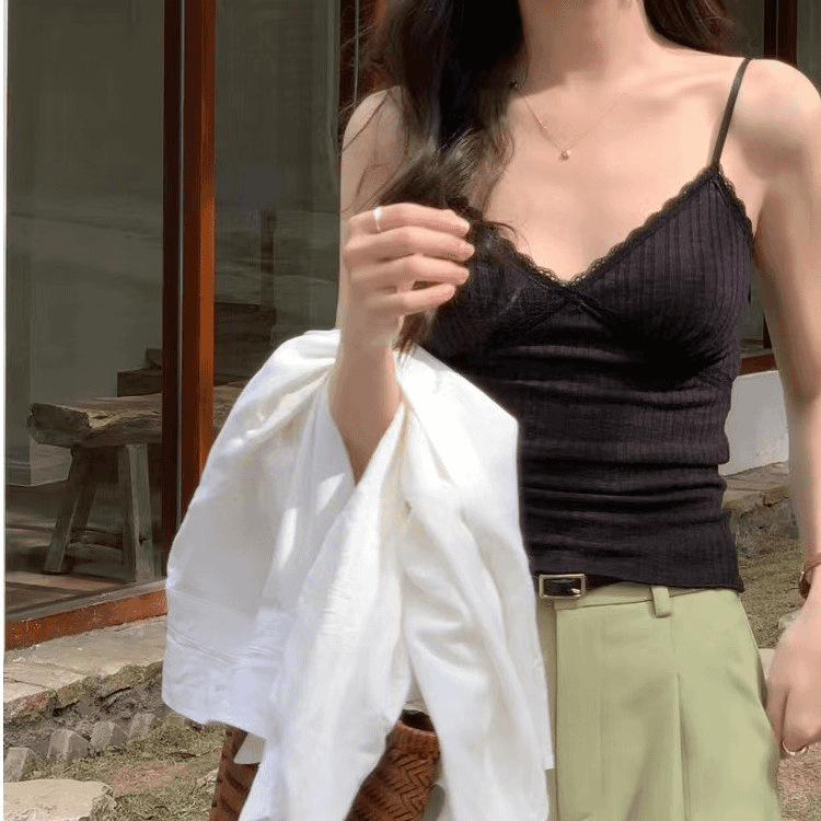 자오 루시 한국 레이스 스트랩 가슴 패드 슬리밍 여성 조끼 베이스 슬림 핏 아우터 착용 프랑스 아름다운 등