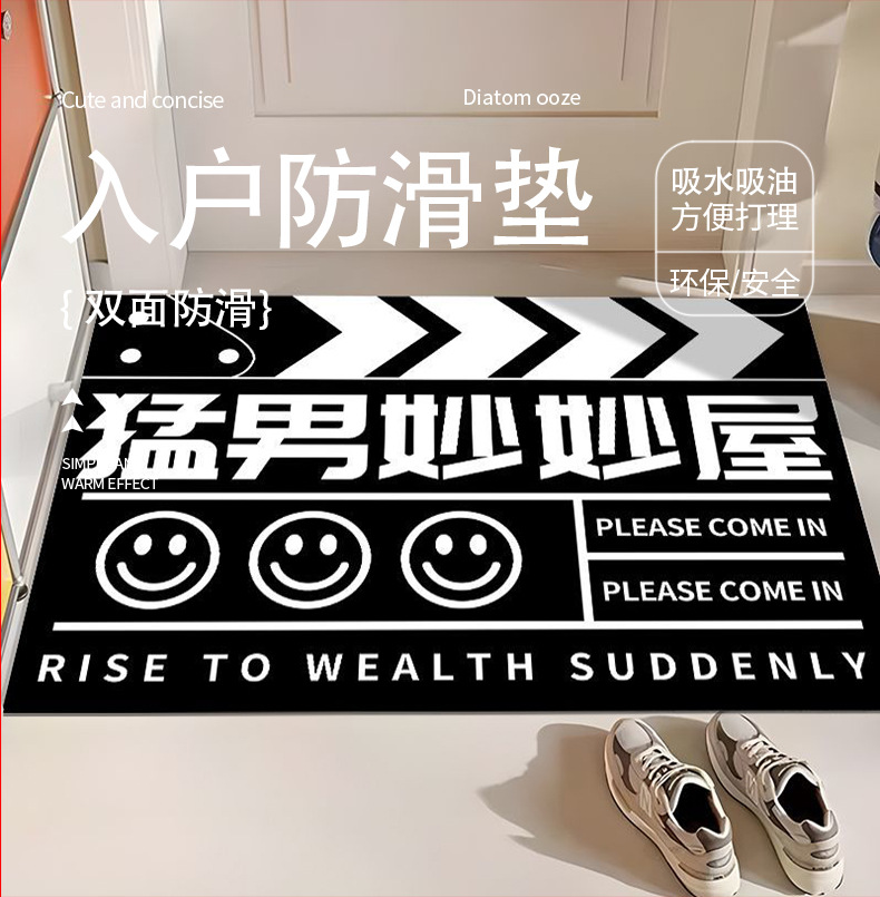 창의적인 텍스트 입구 문 바닥 매트, 현관 문 흡수성 미끄럼 방지 바닥 매트, 가정용 관리가 쉬운 규조토 진흙 바닥 매트