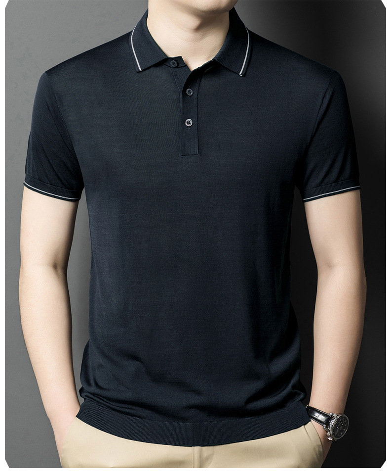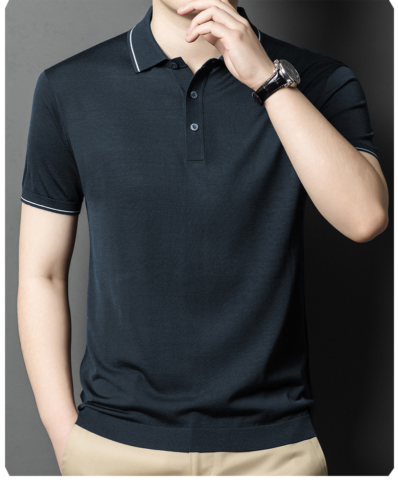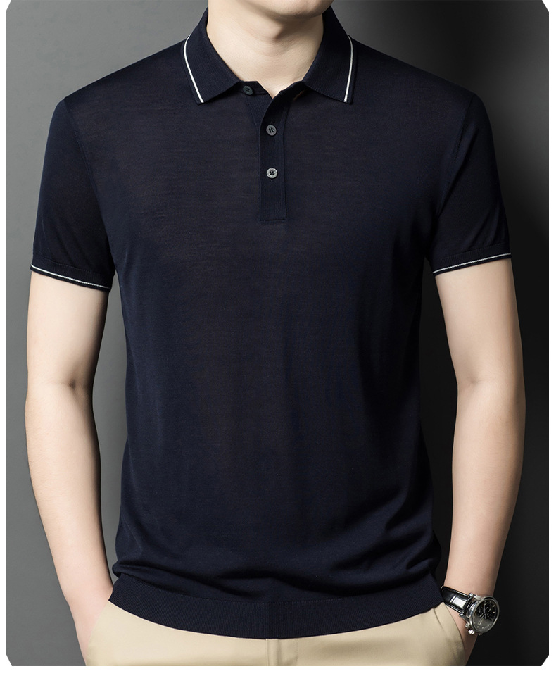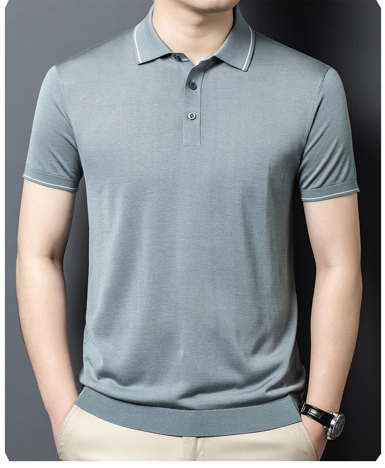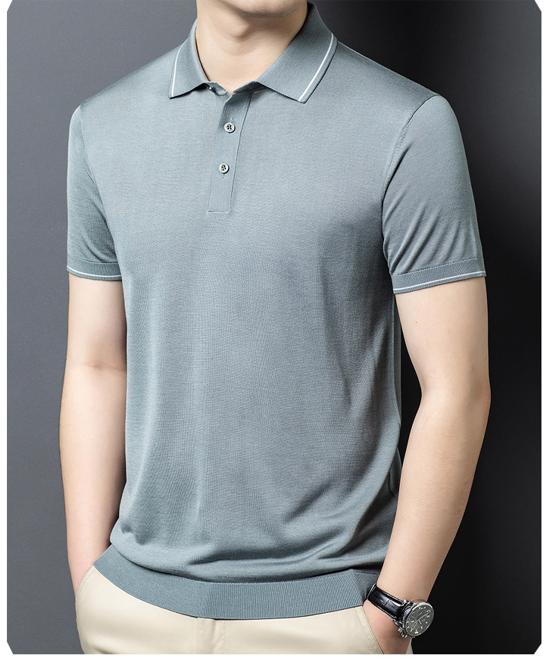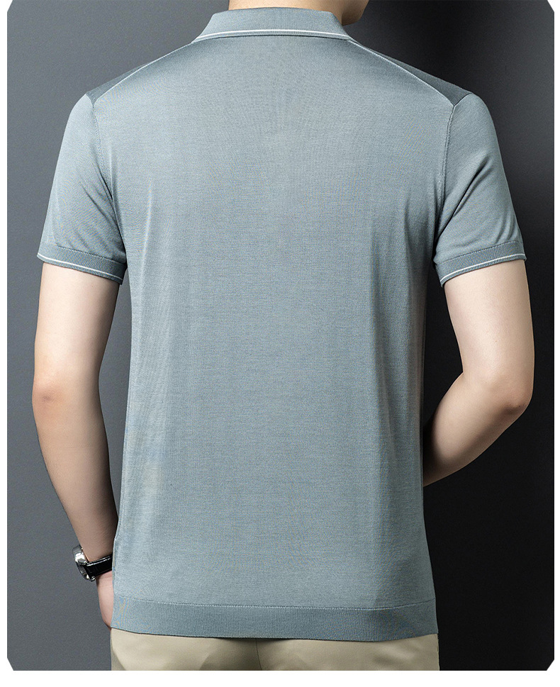 뽕나무 실크 남자의 긴팔 니트 티셔츠 중년 봄과 여름 새로운 유행 캐주얼 릴 얇은 아이스 실크 스웨터스토어 가기