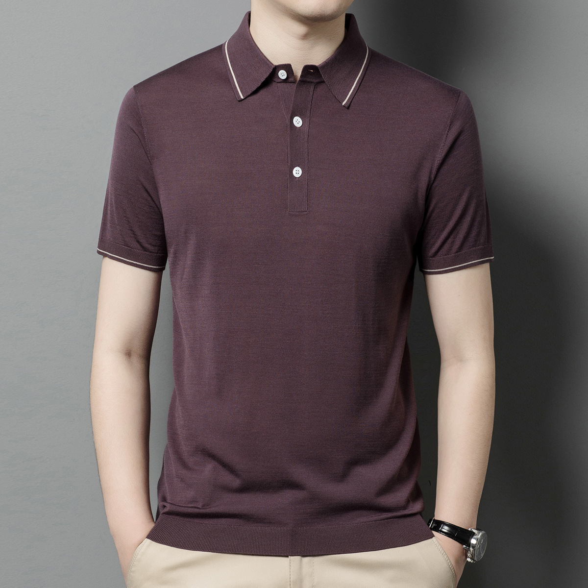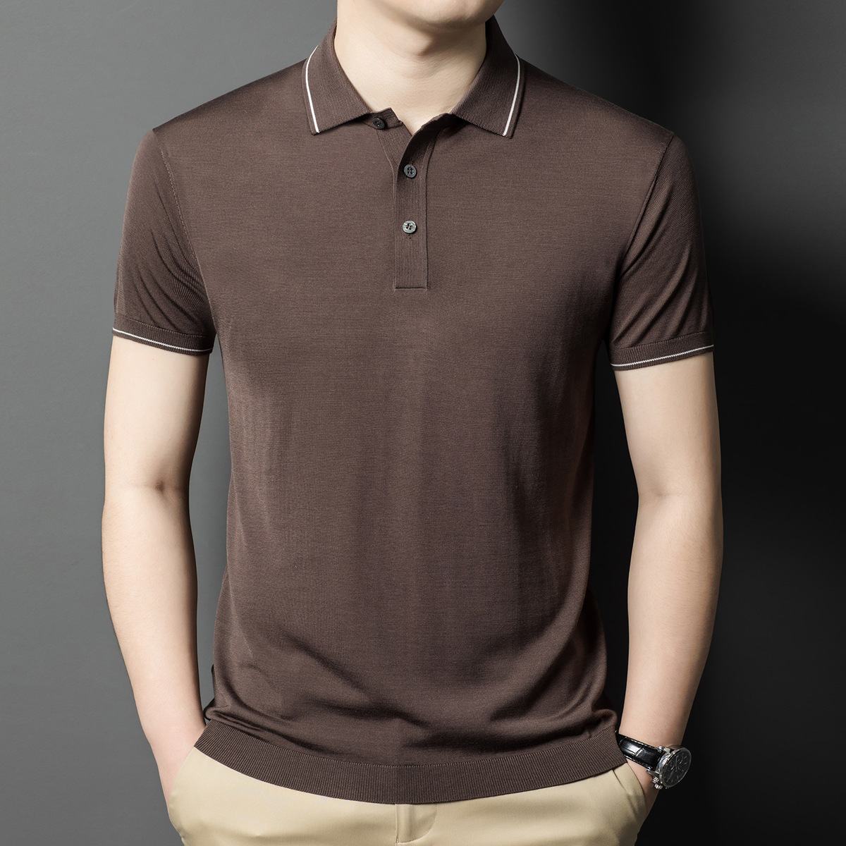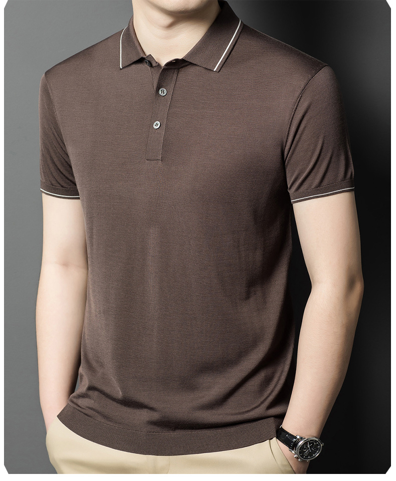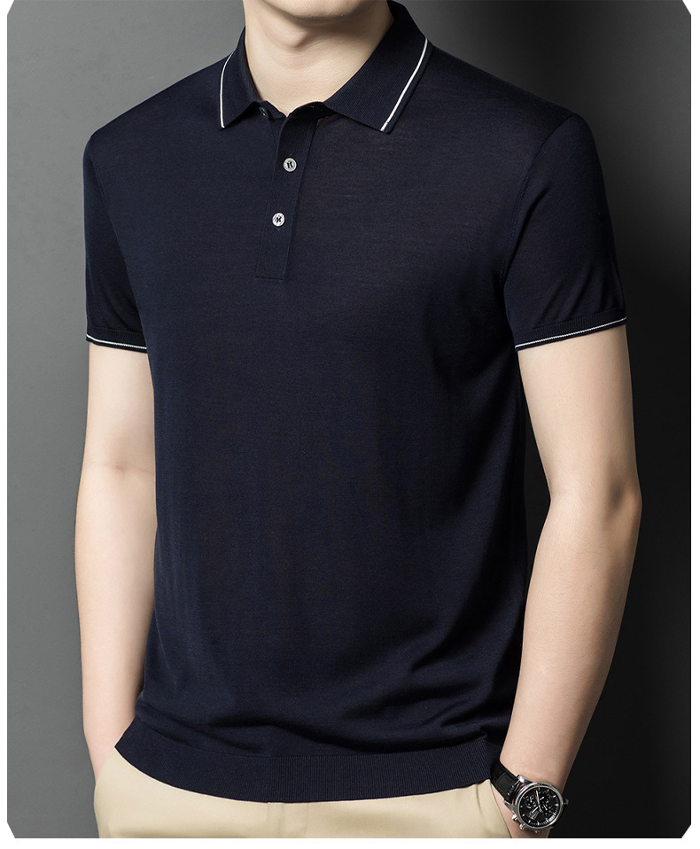 뽕나무 실크 남자의 긴팔 니트 티셔츠 중년 봄과 여름 새로운 유행 캐주얼 릴 얇은 아이스 실크 스웨터스토어 가기