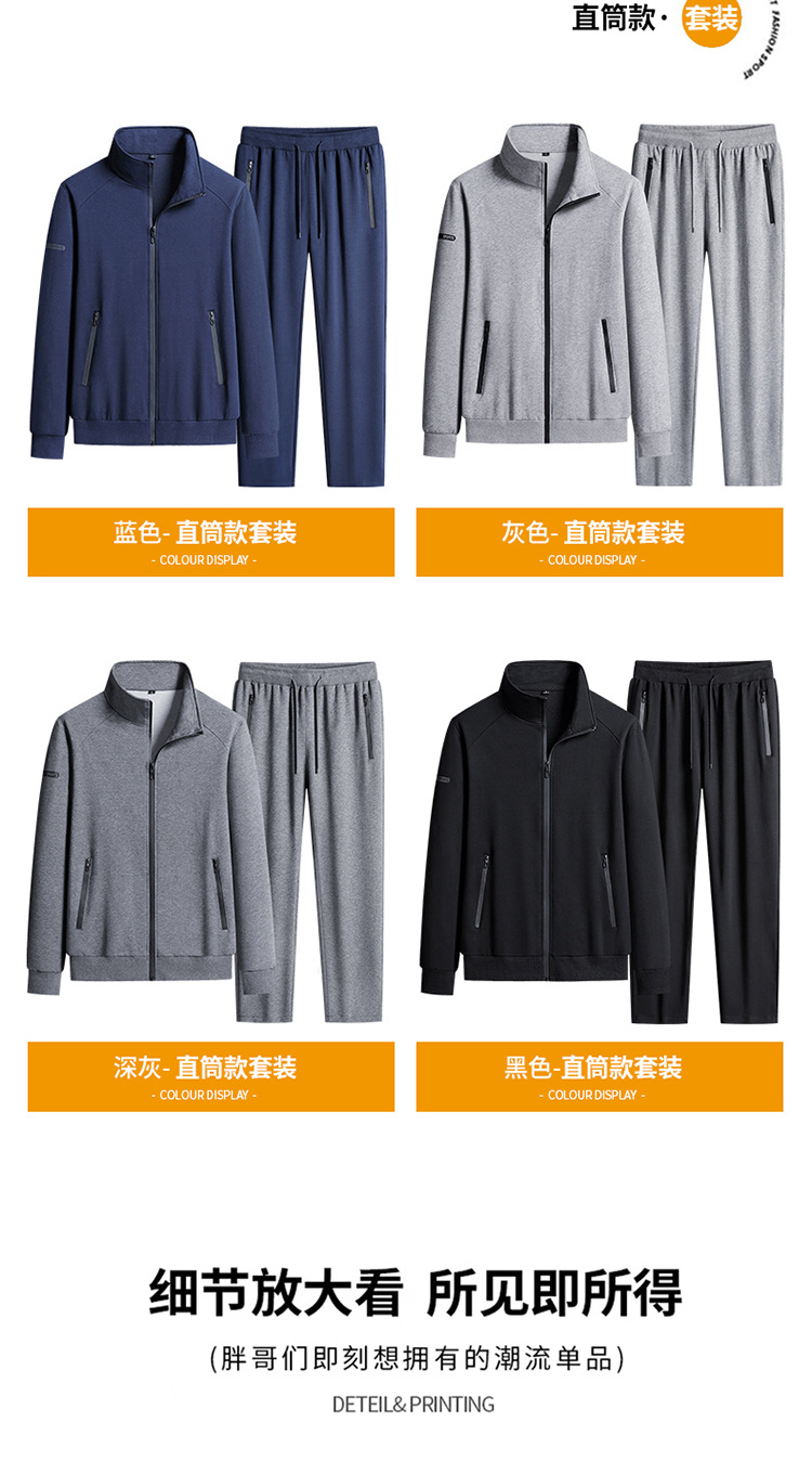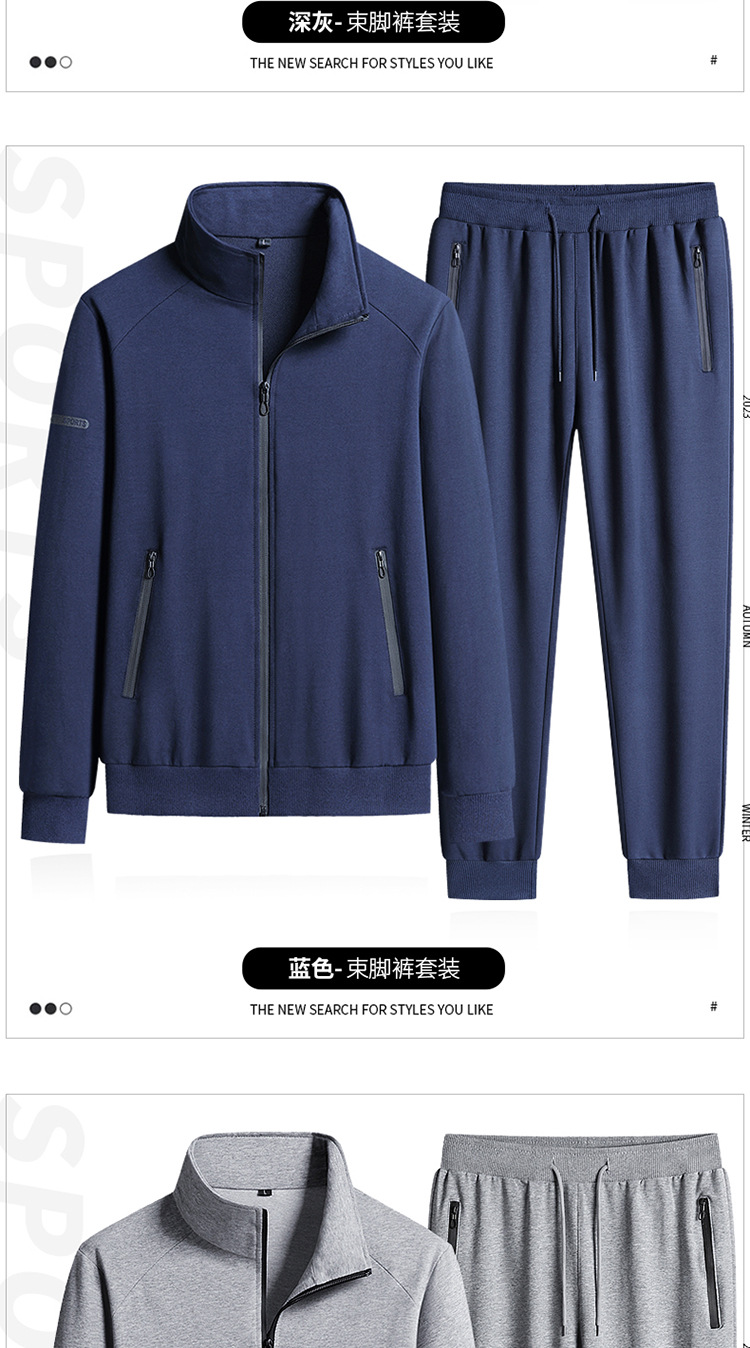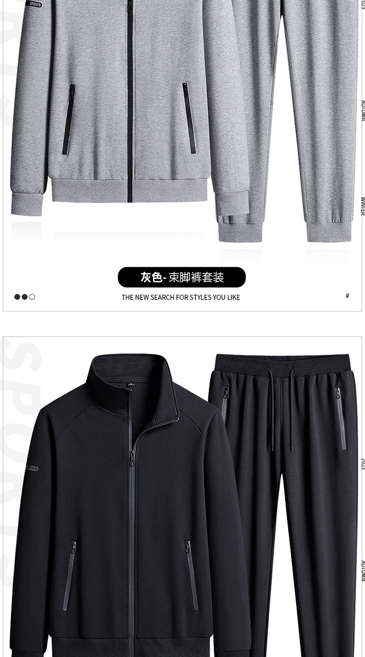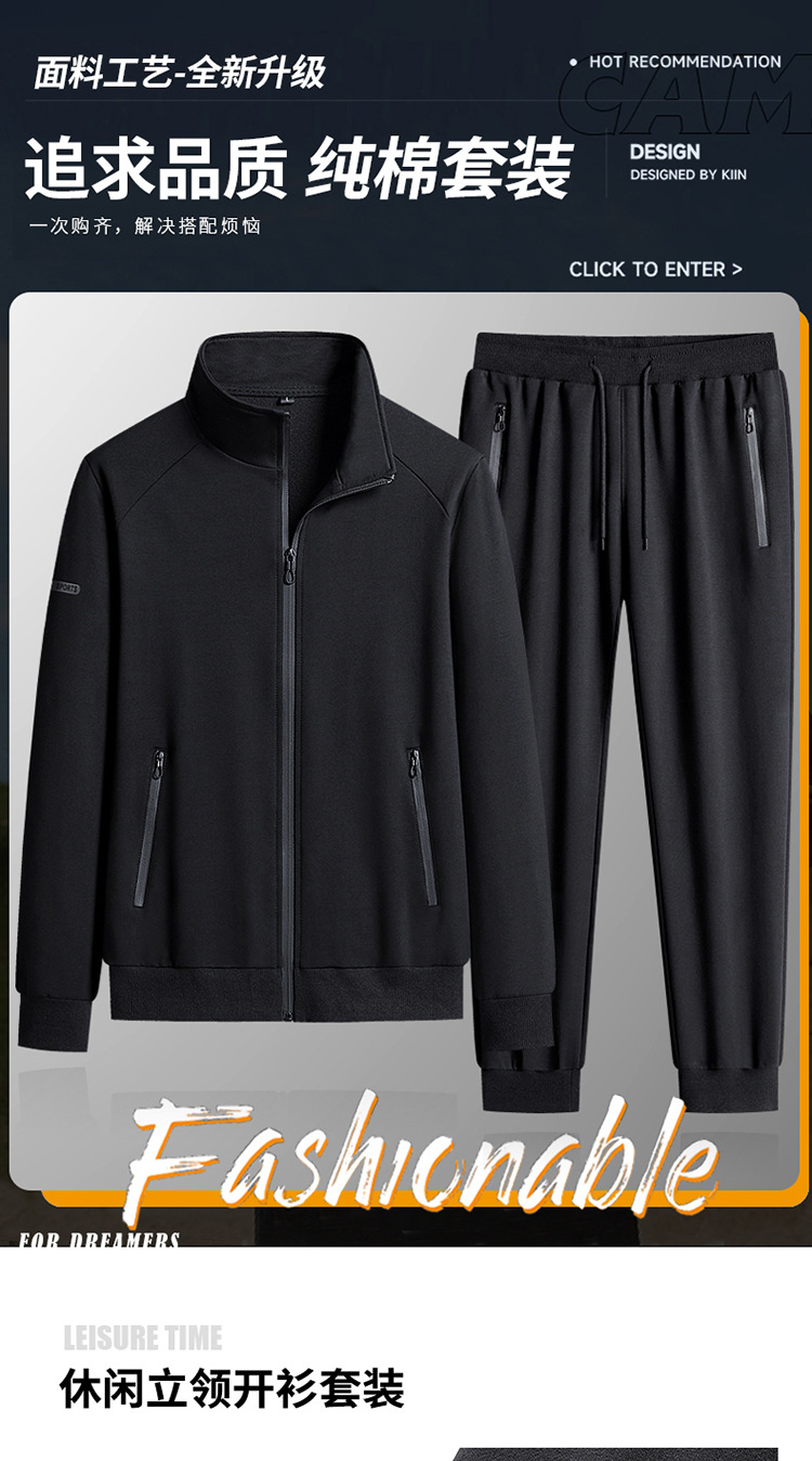 크로스보더 순면 스포츠 슈트 남성용 대형 루즈 캐주얼 슈트 스탠드 칼라 카디건 스웨트 셔츠 대외 무역 스포츠 스트레이트 팬츠스토어 가기